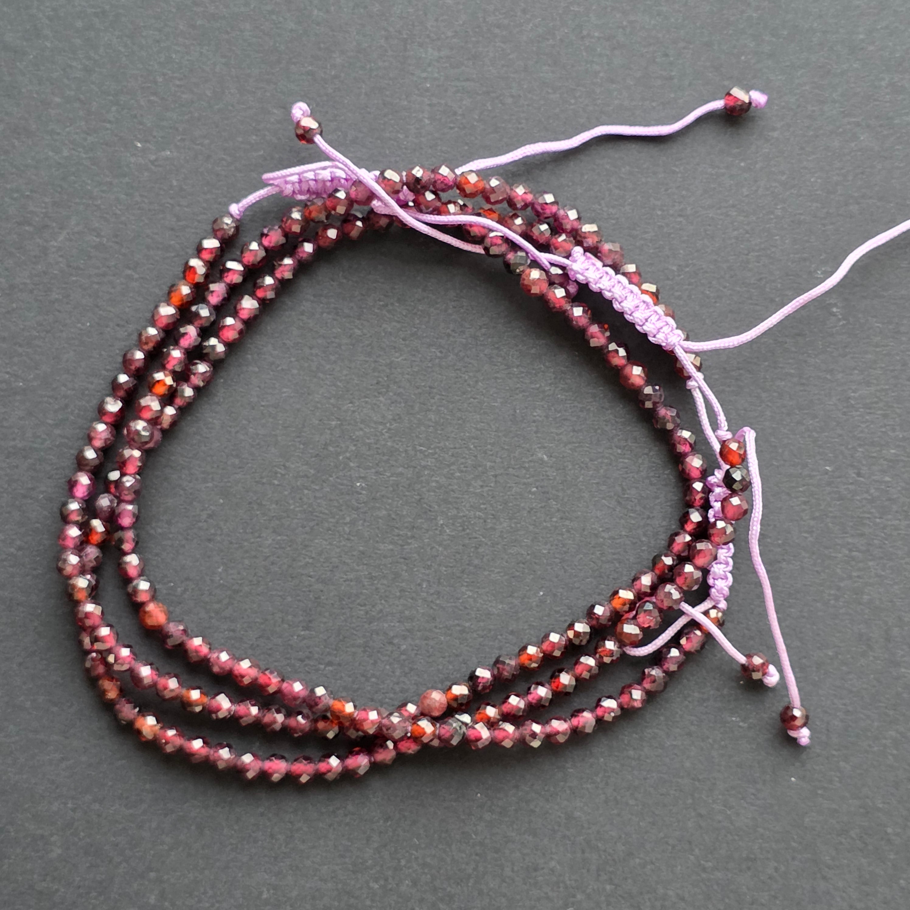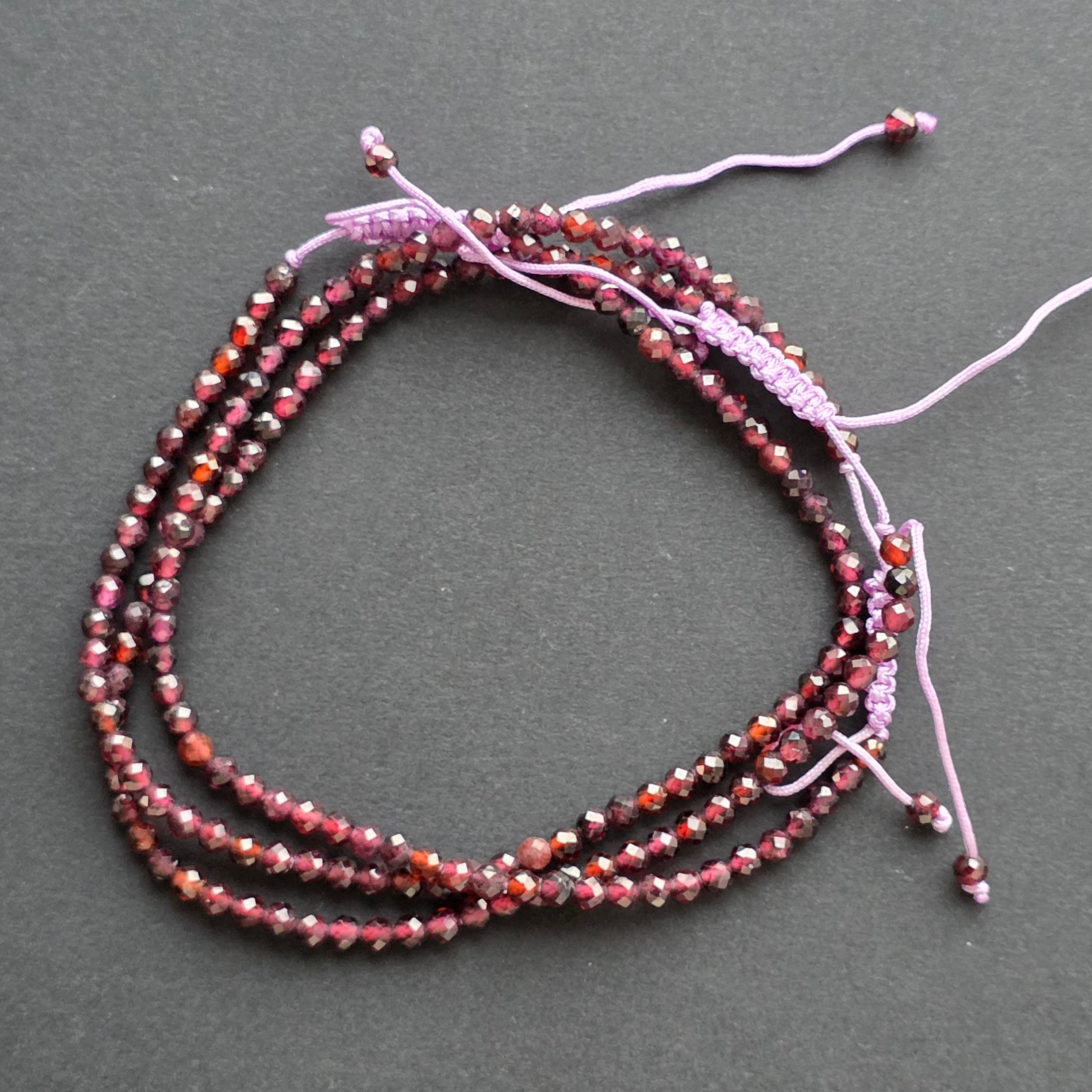 Bracelet facetté grenat 3 mm avec cordon réglable
