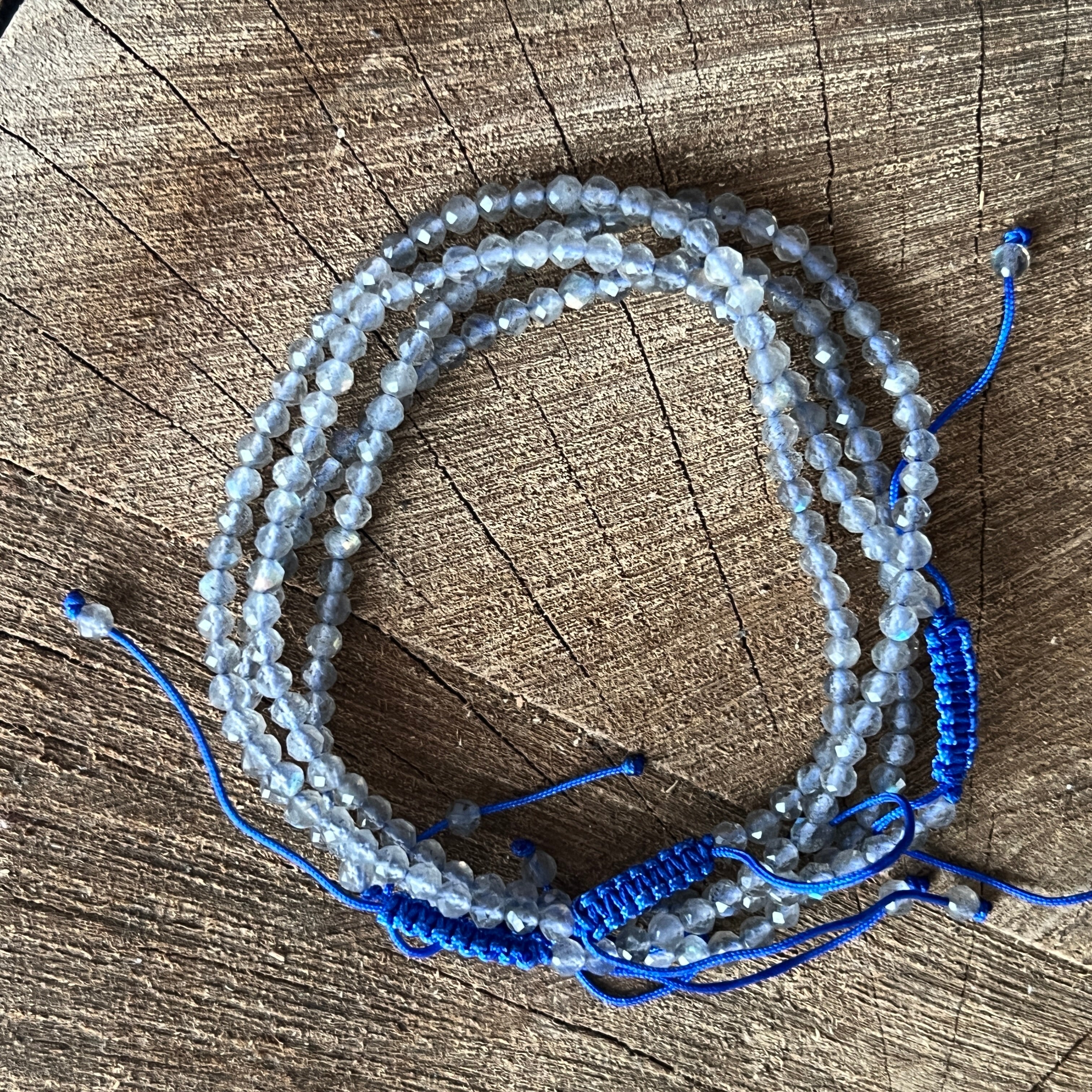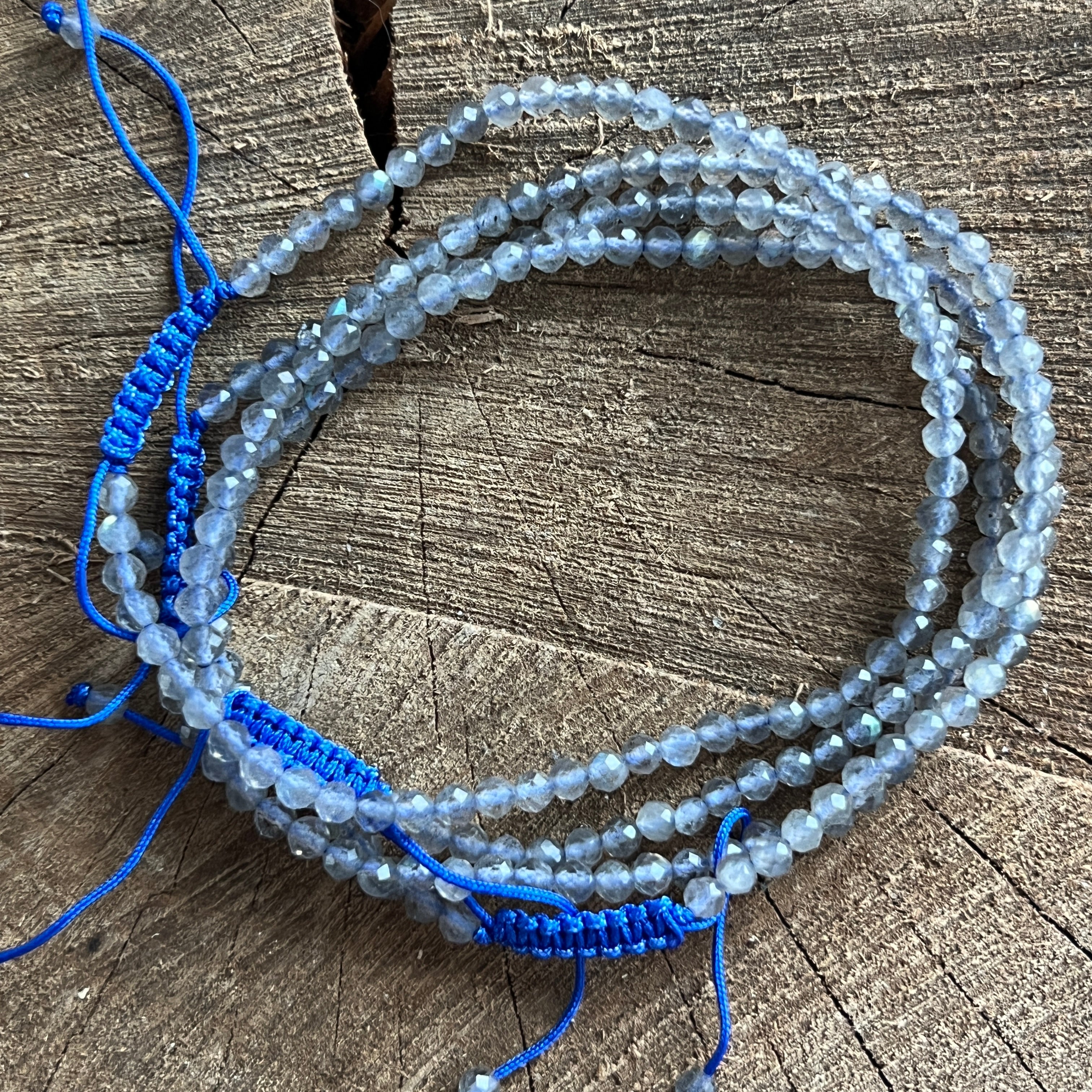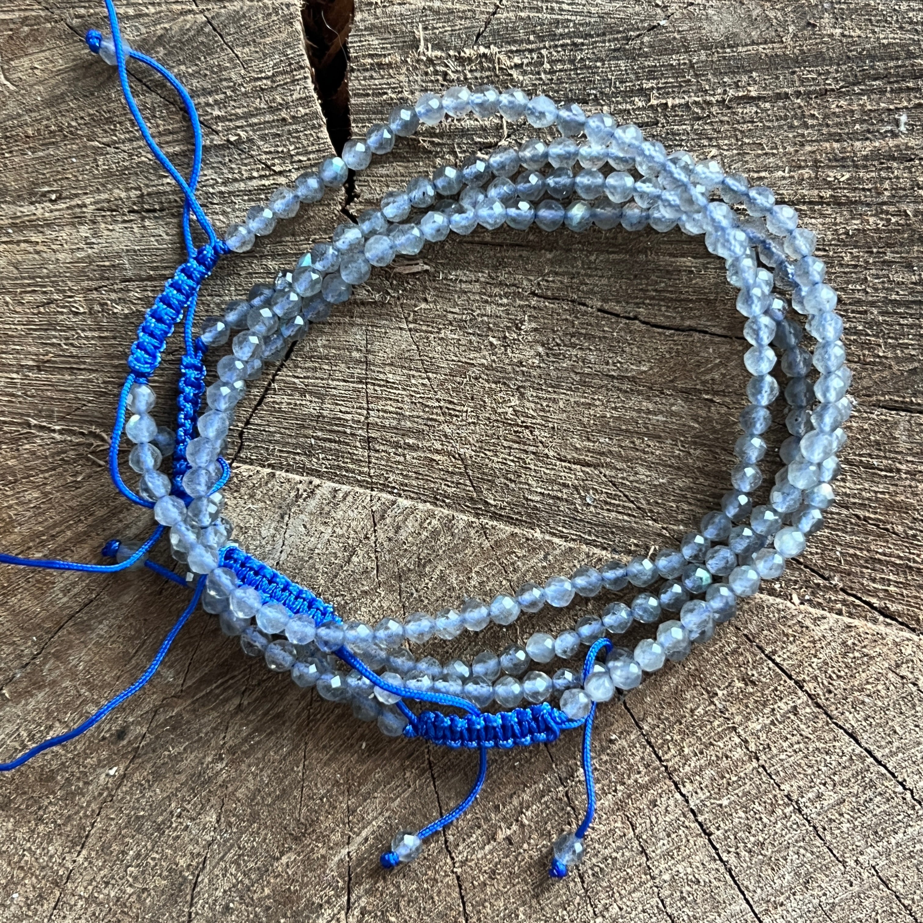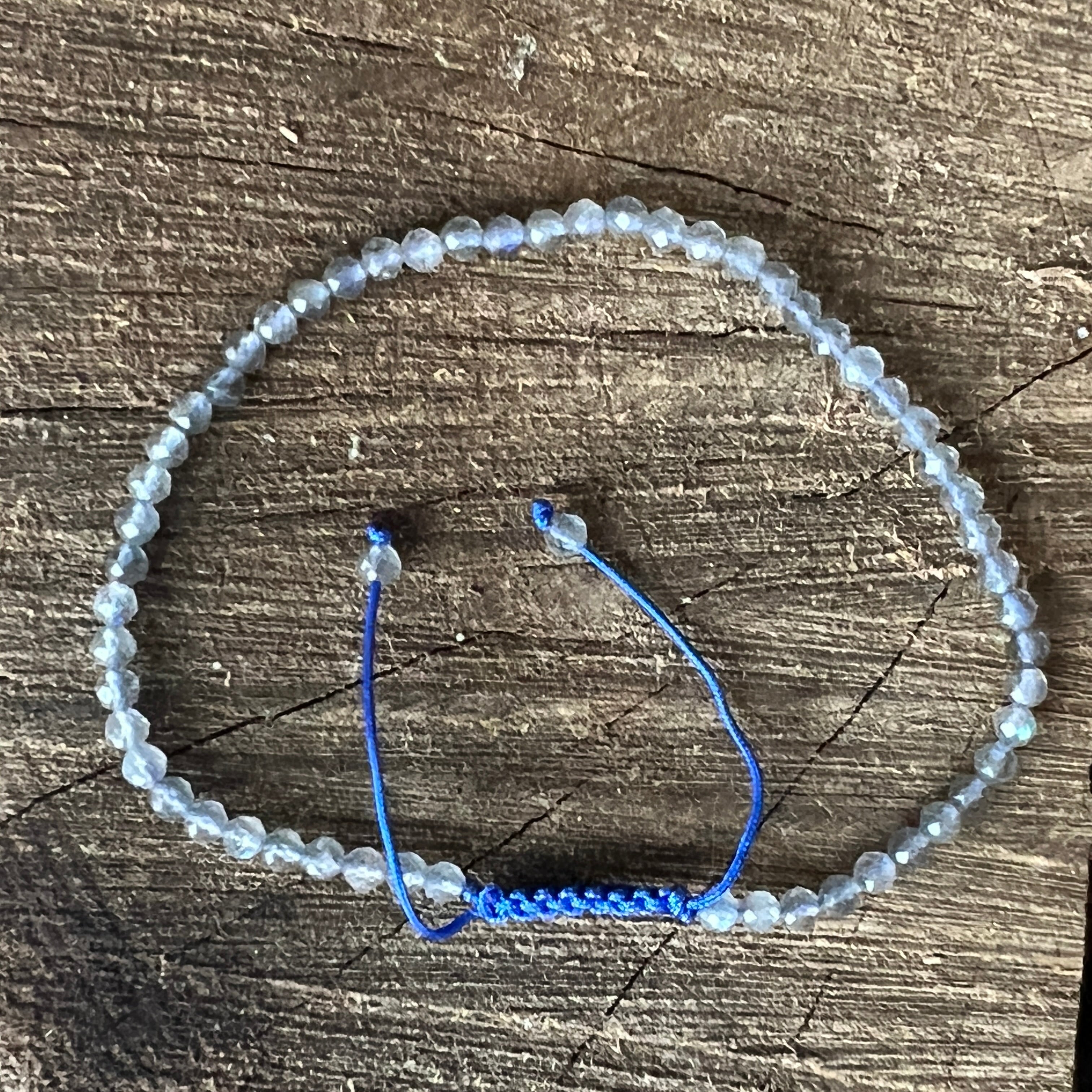 Description - Bracelet labradorite facettée cordon réglable 3 mm