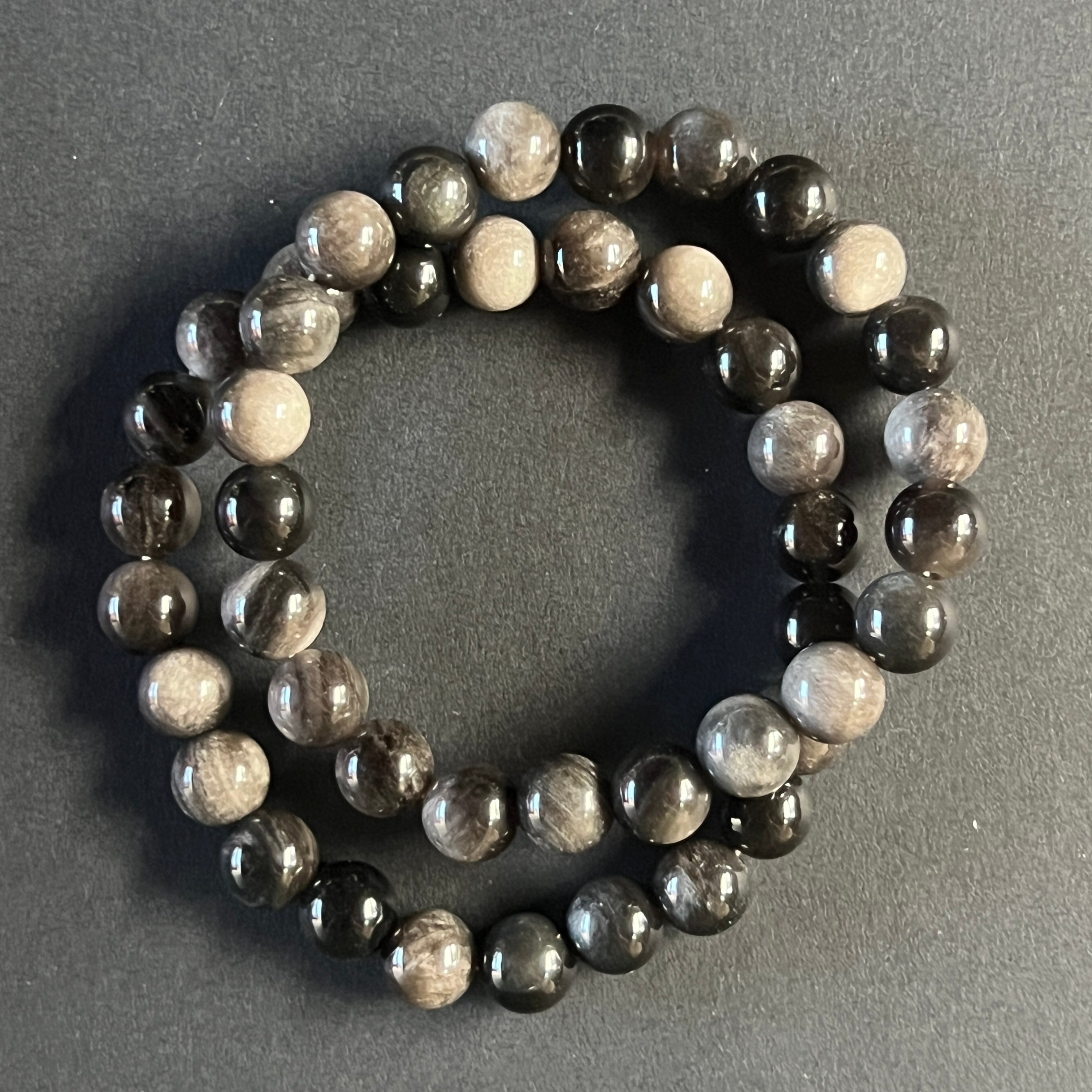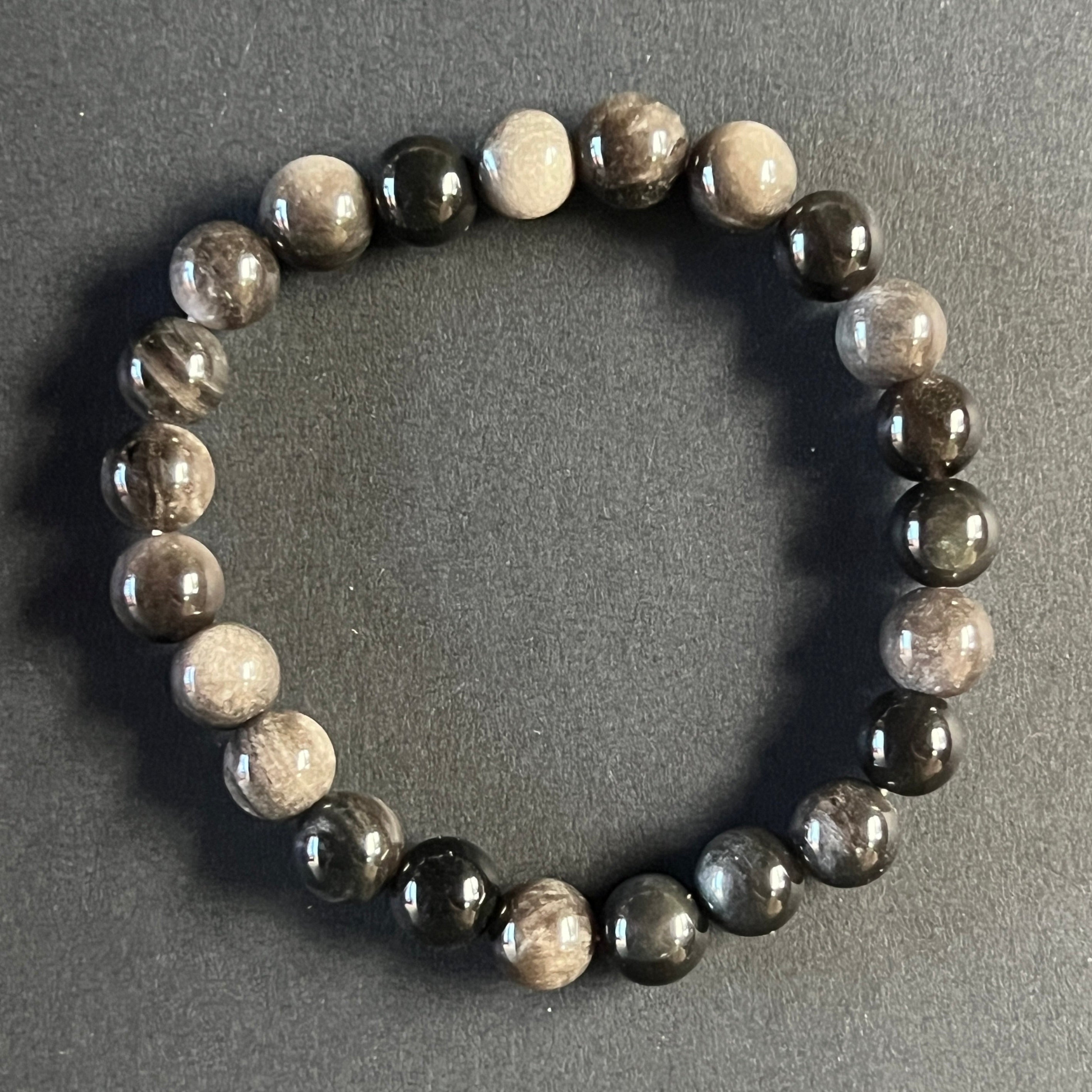 Bracelet obsidienne argent arc-en-ciel 8 mm