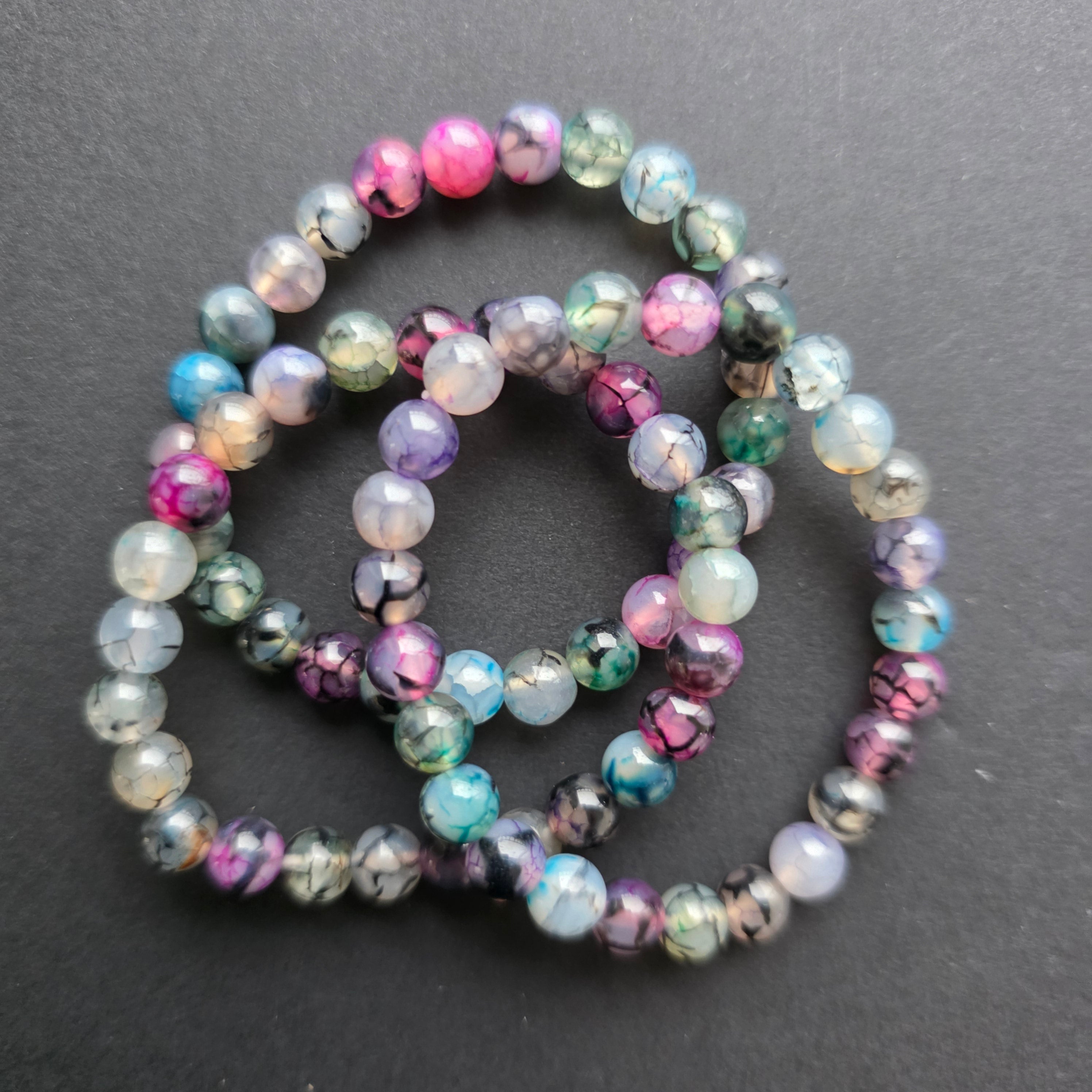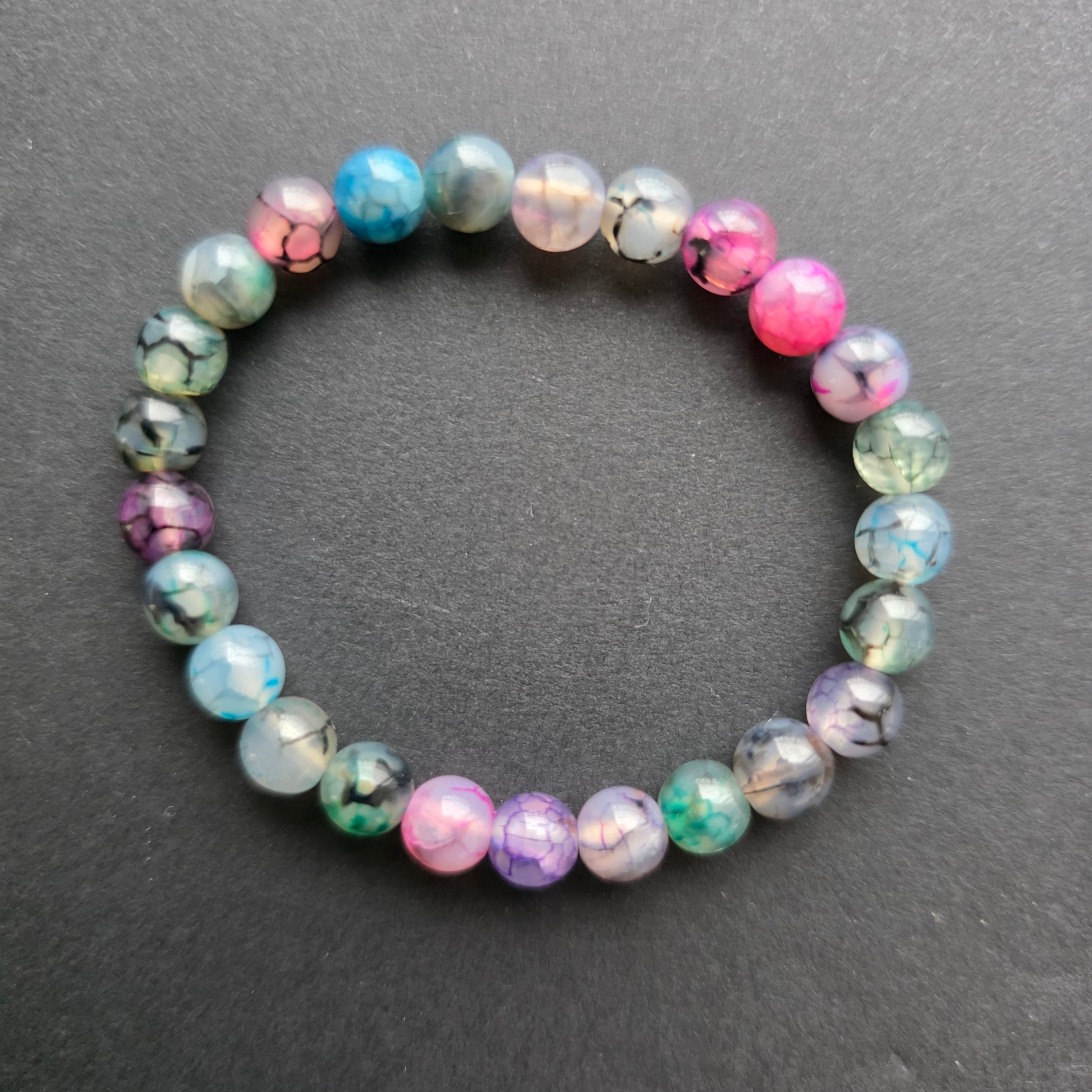 • Pierre : agate mixte (colorée) – perles sphériques de 6 mm