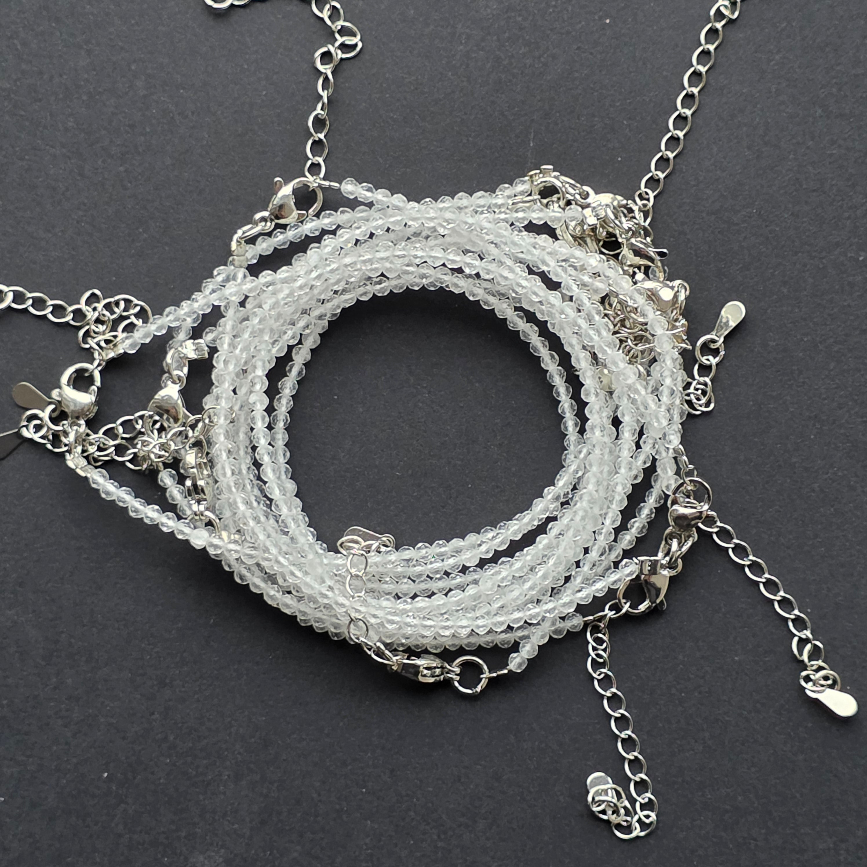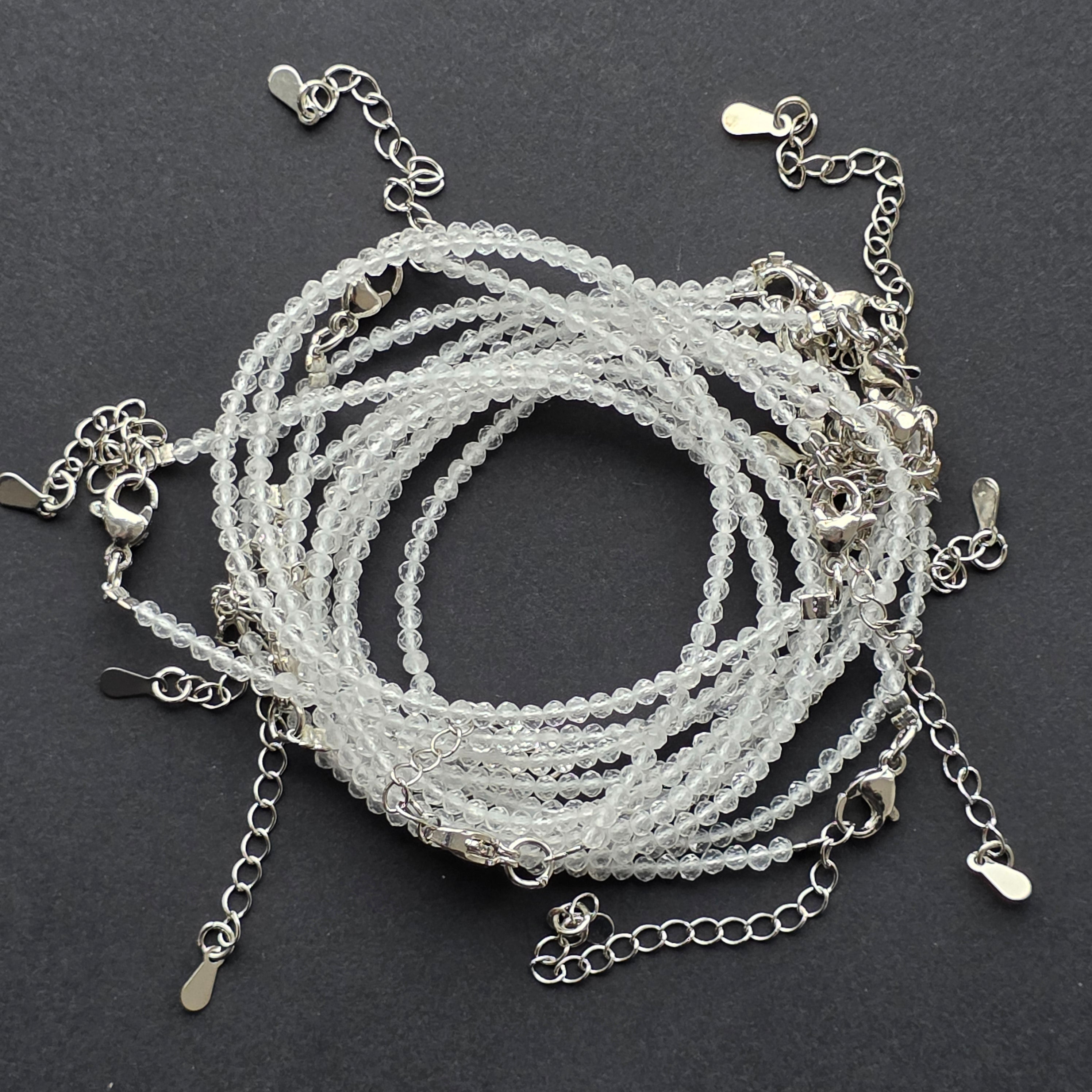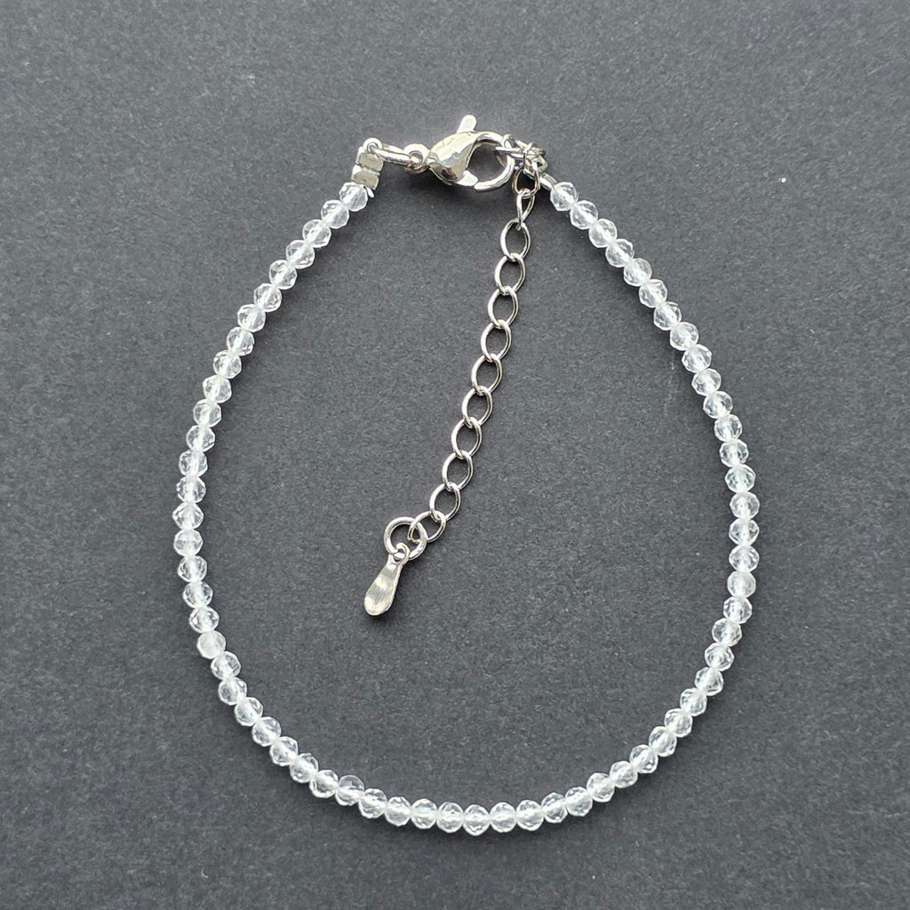 Bracelet réglable 2 mm quartz de roche/cristal incolore