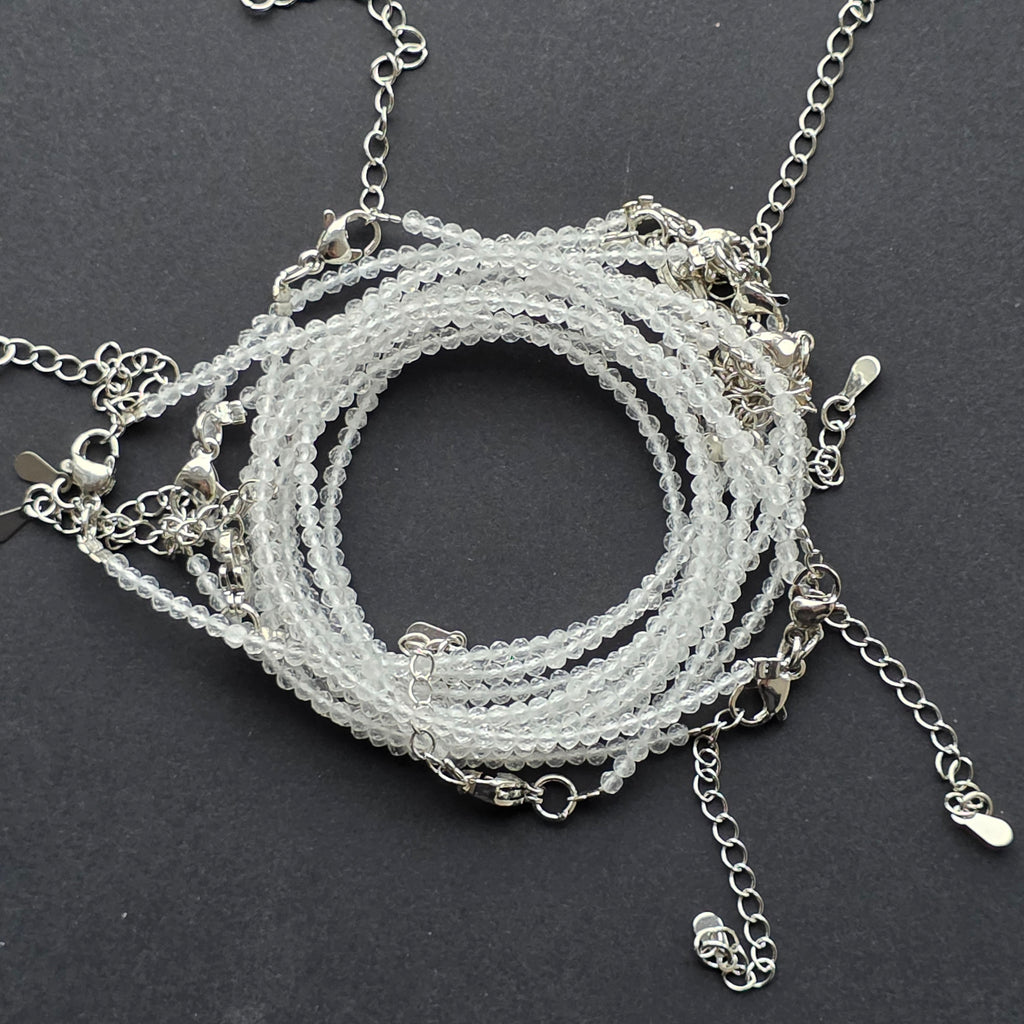 Description - Bracelet réglable 2 mm quartz de roche/cristal incolore