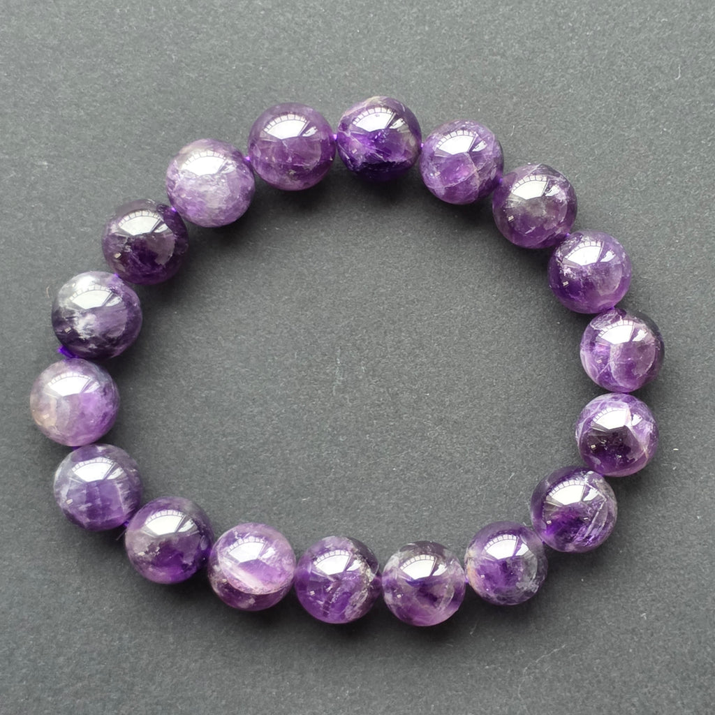 Brățara din ametist aduce la încheietură rafinamentul clasic al uneia dintre cele mai iubite pietre semiprețioase. Mărgelele mici și perfect rotunjite creează un șir delicat de nuanțe mov, într-un gradient natural care amintește de cerul serii sau de intensitatea unei flori de lavandă atinse de lumină.