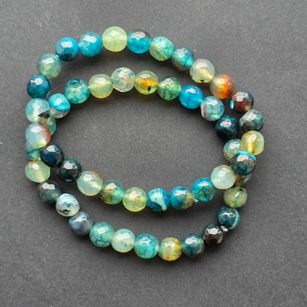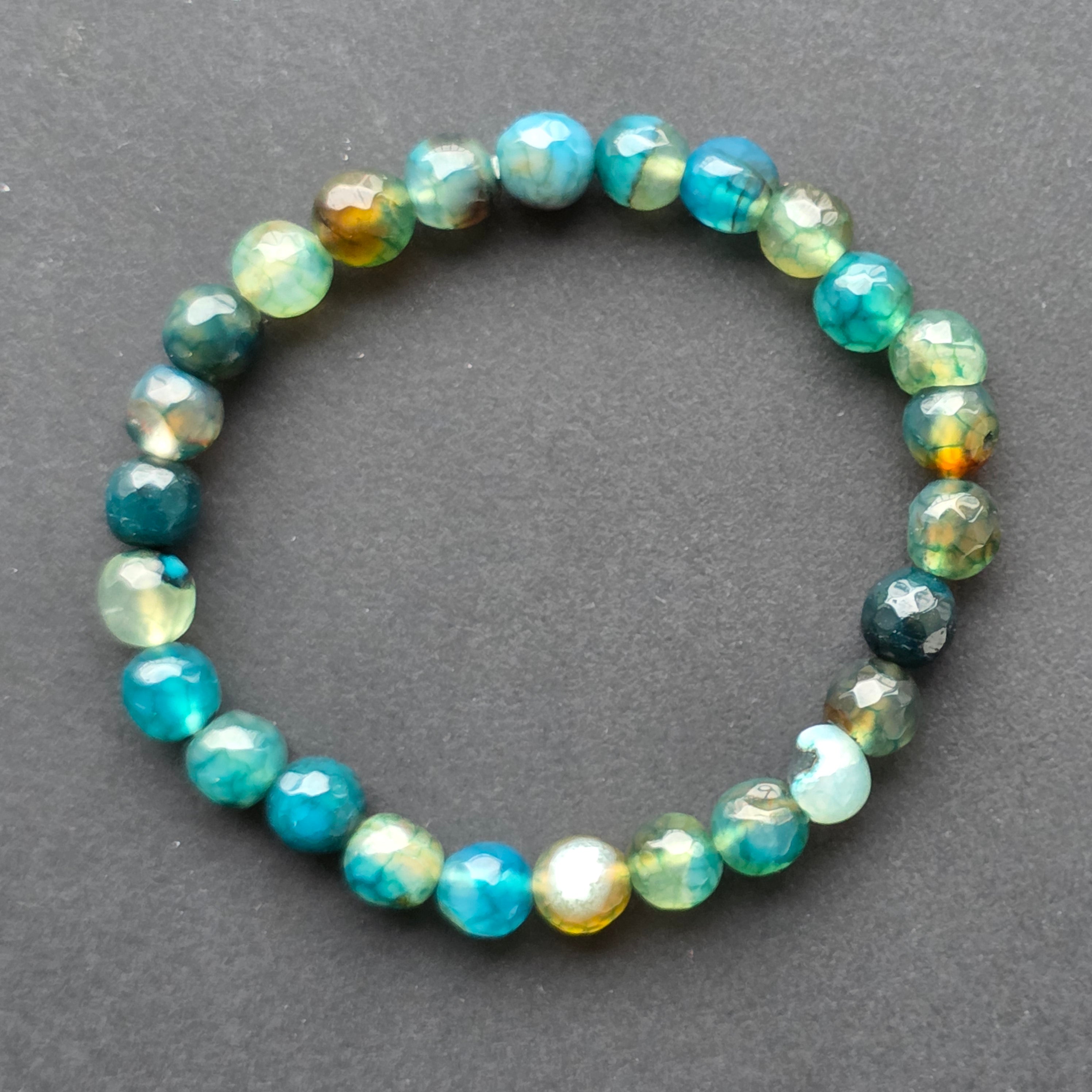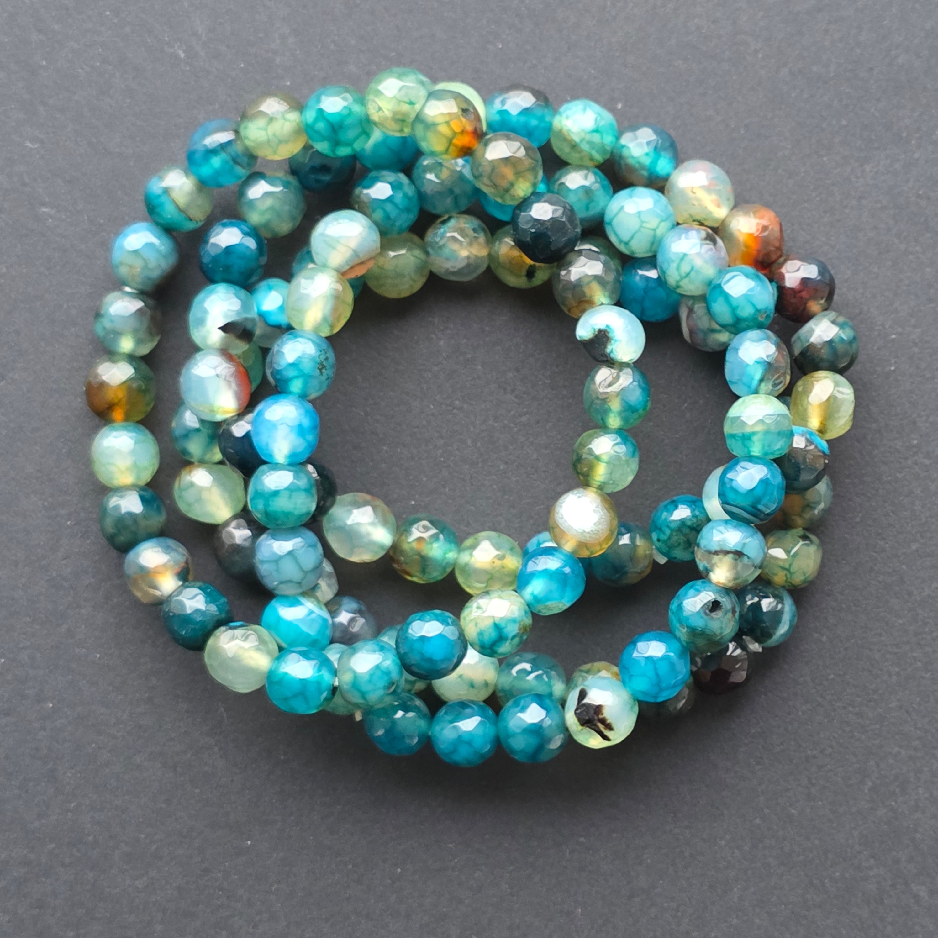 • Piatra: agat natural fațetat – mix de nuanțe albastru, turcoaz și maro
