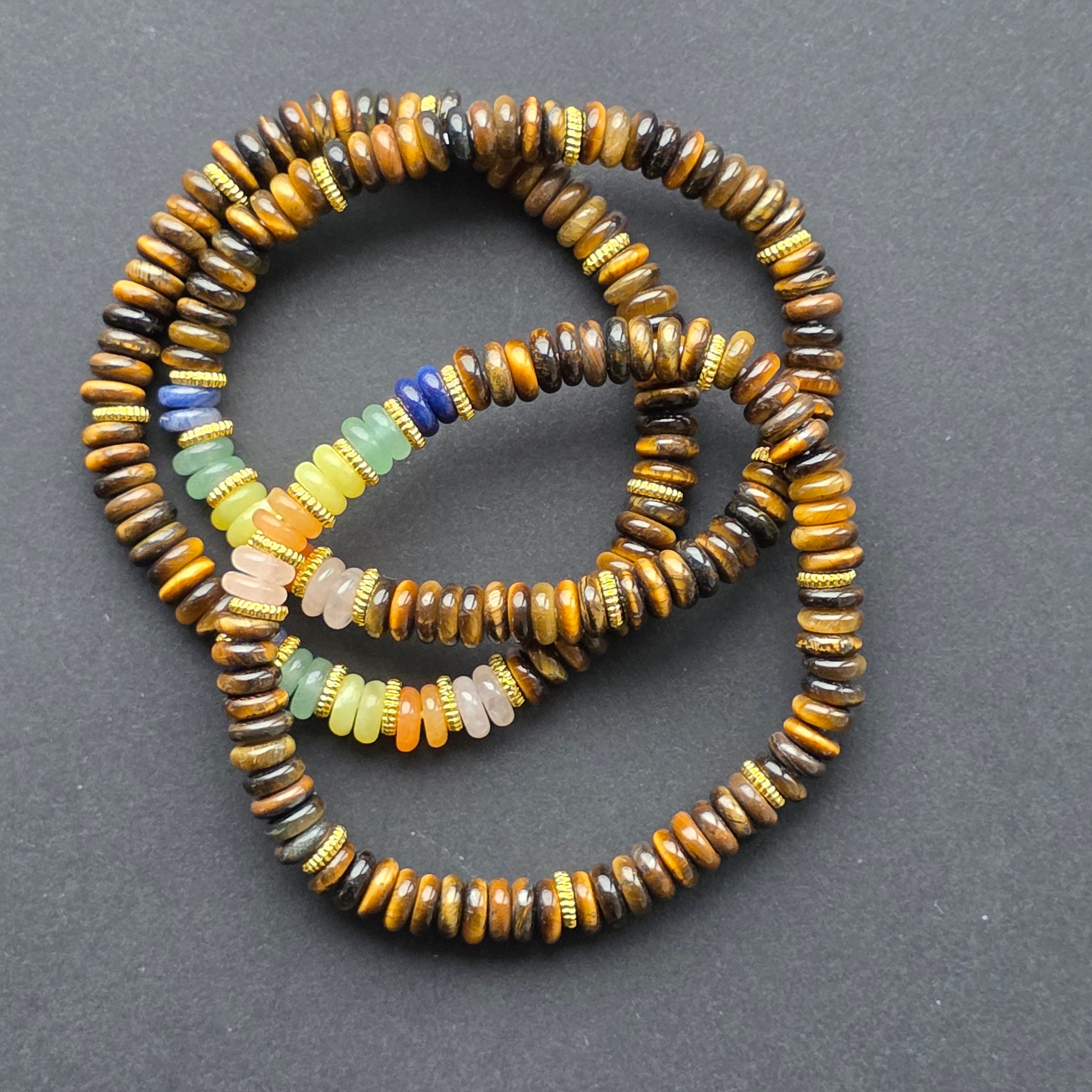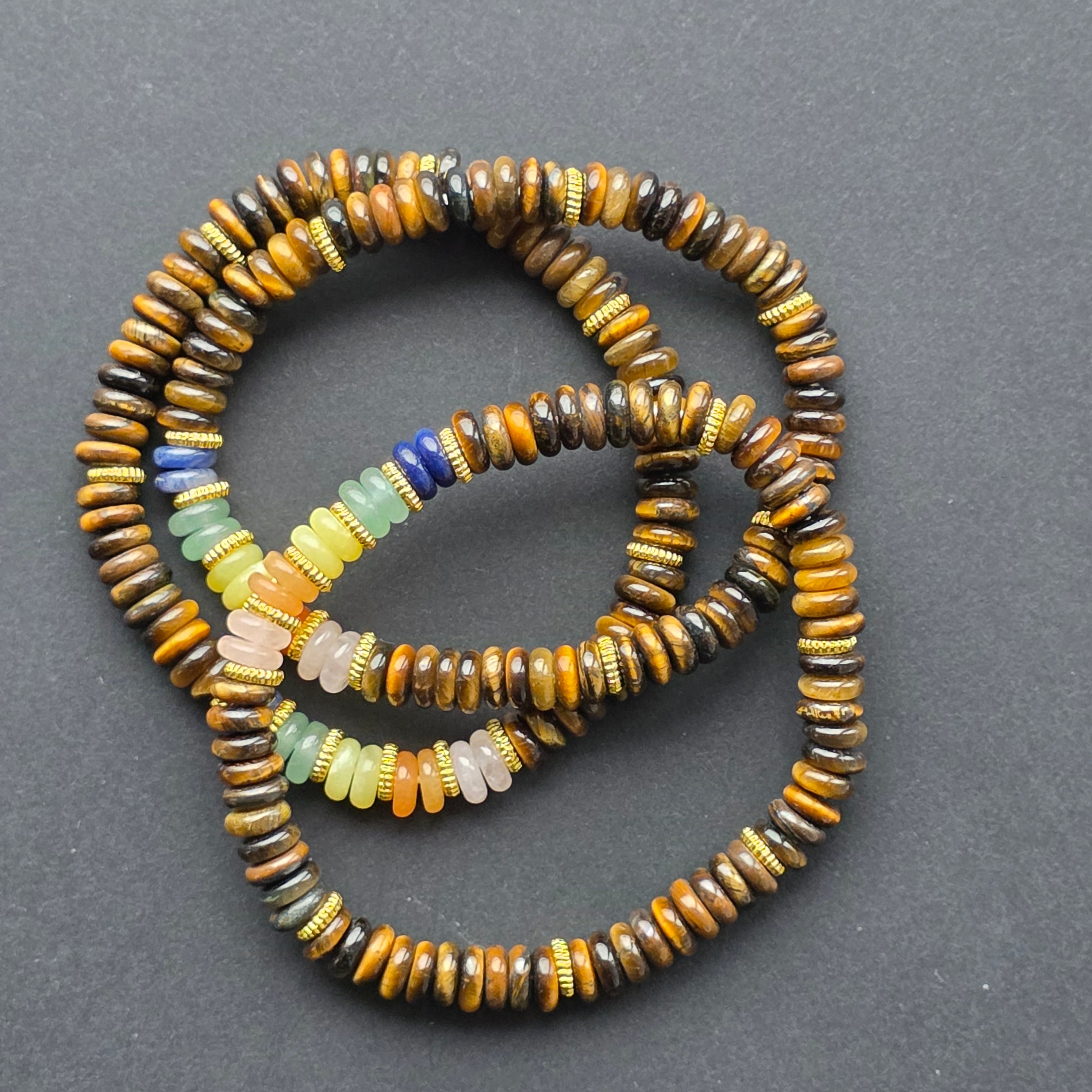 Description - Bratara discuri ochi de tigru | 7 chakre