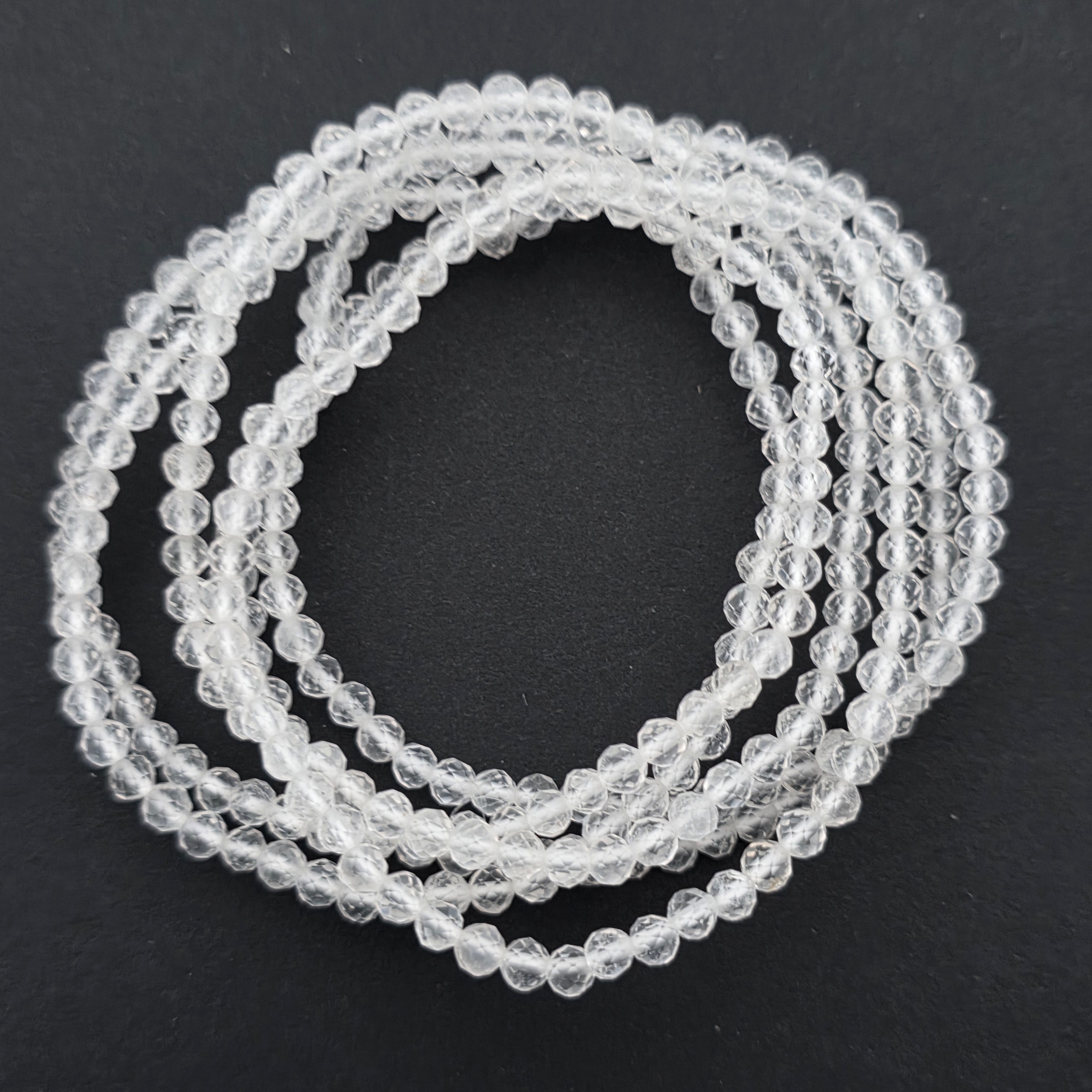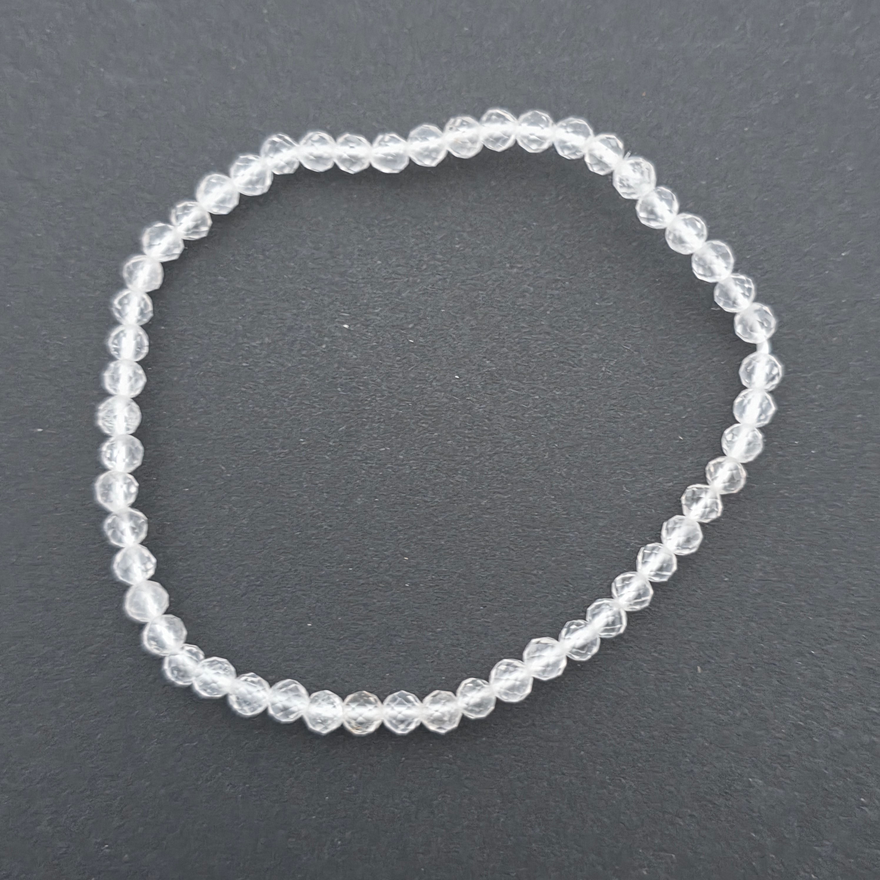 Description - Bratara fatetata cuart de stanca/cristal incolor 3-4 mm