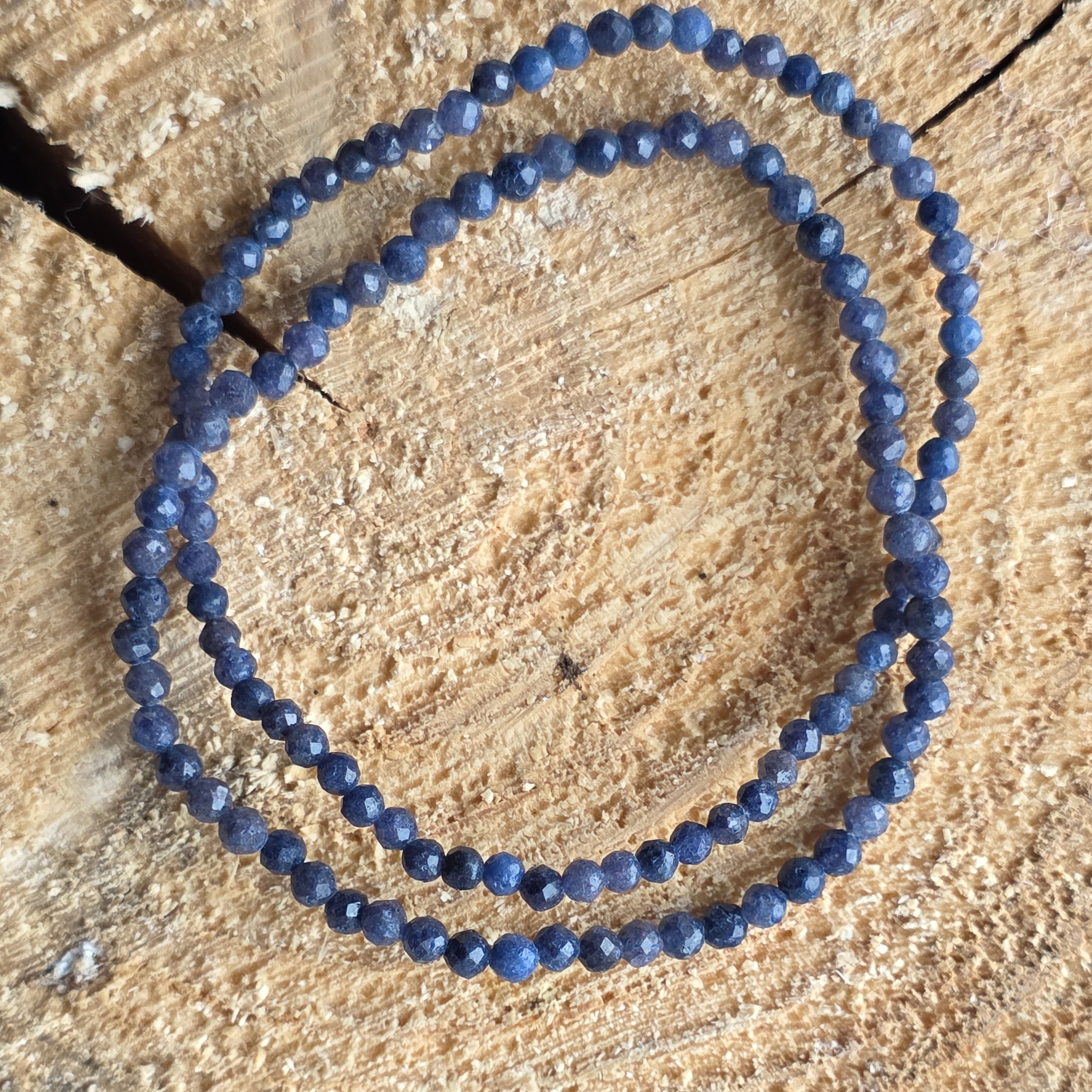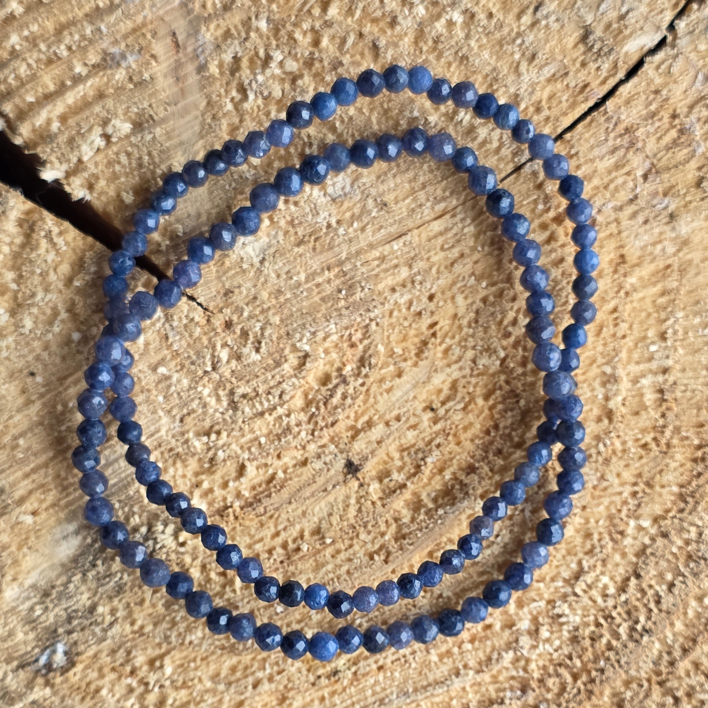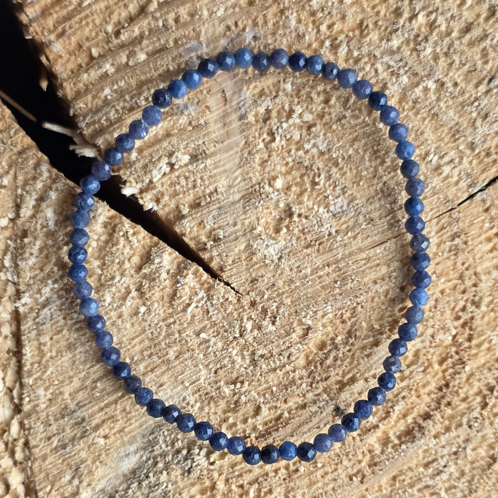O brățară fină ca o șoaptă și totuși plină de profunzime, asemenea cerului de noapte în care se reflectă stelele. Mărgelele fațetate de safir natural, cu diametrul de 3 mm, strălucesc în nuanțe de albastru intens, uneori cu reflexe adânci de indigo sau tonuri mai deschise care aduc echilibru compoziției. Este o bijuterie discretă și rafinată, creată pentru cei care poartă în suflet eleganța tăcută și forța interioară.