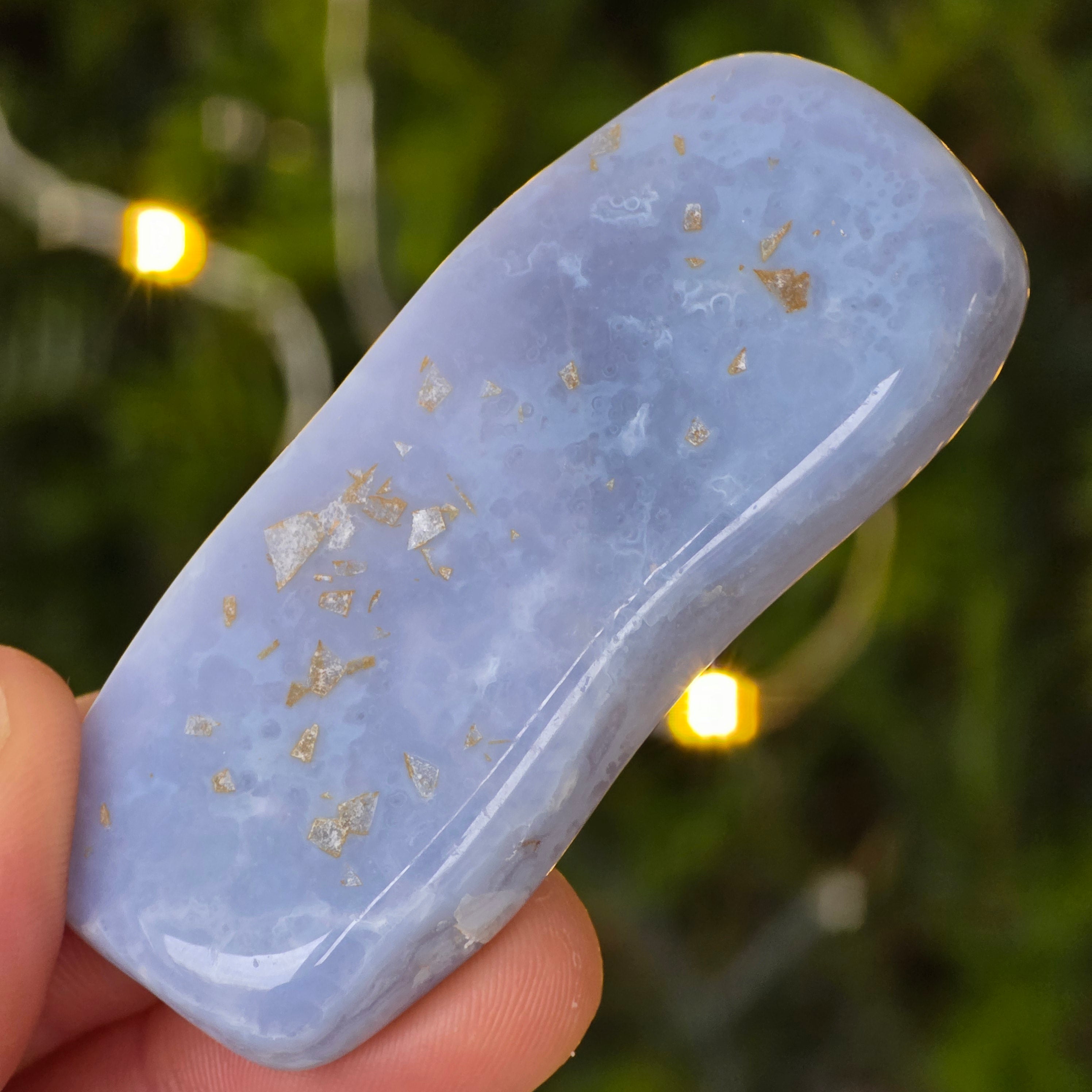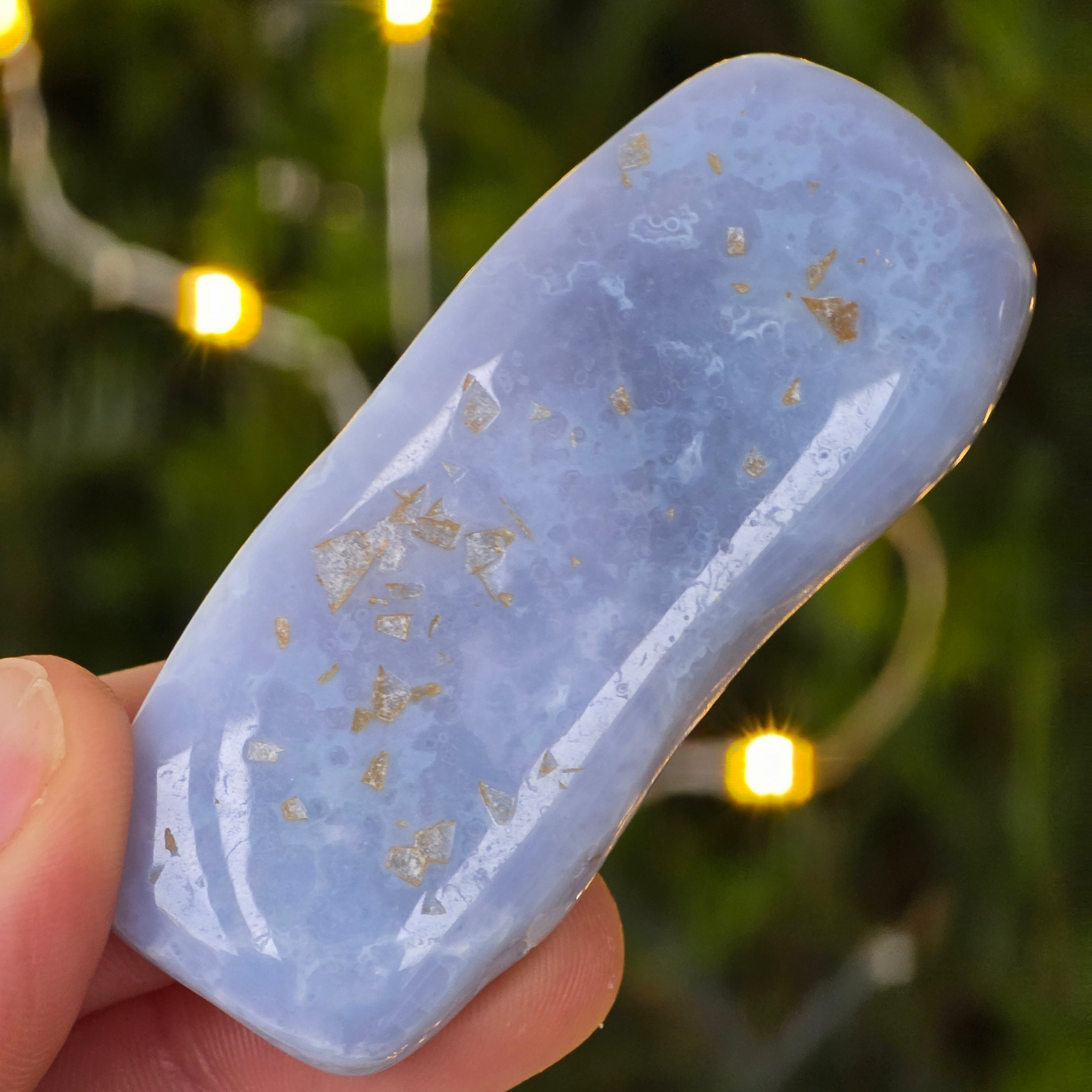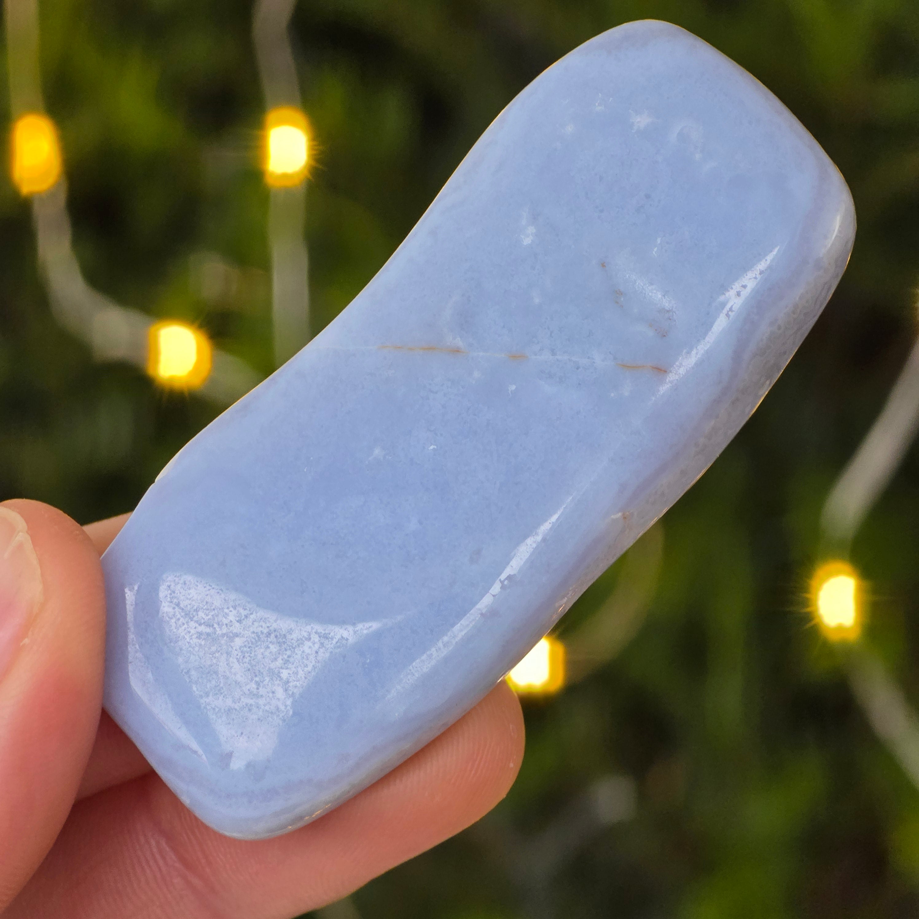 La calcédoine bleue est généralement associée à la communication, à l'expression de soi et de la vérité, et peut aider à stimuler la communication authentique.