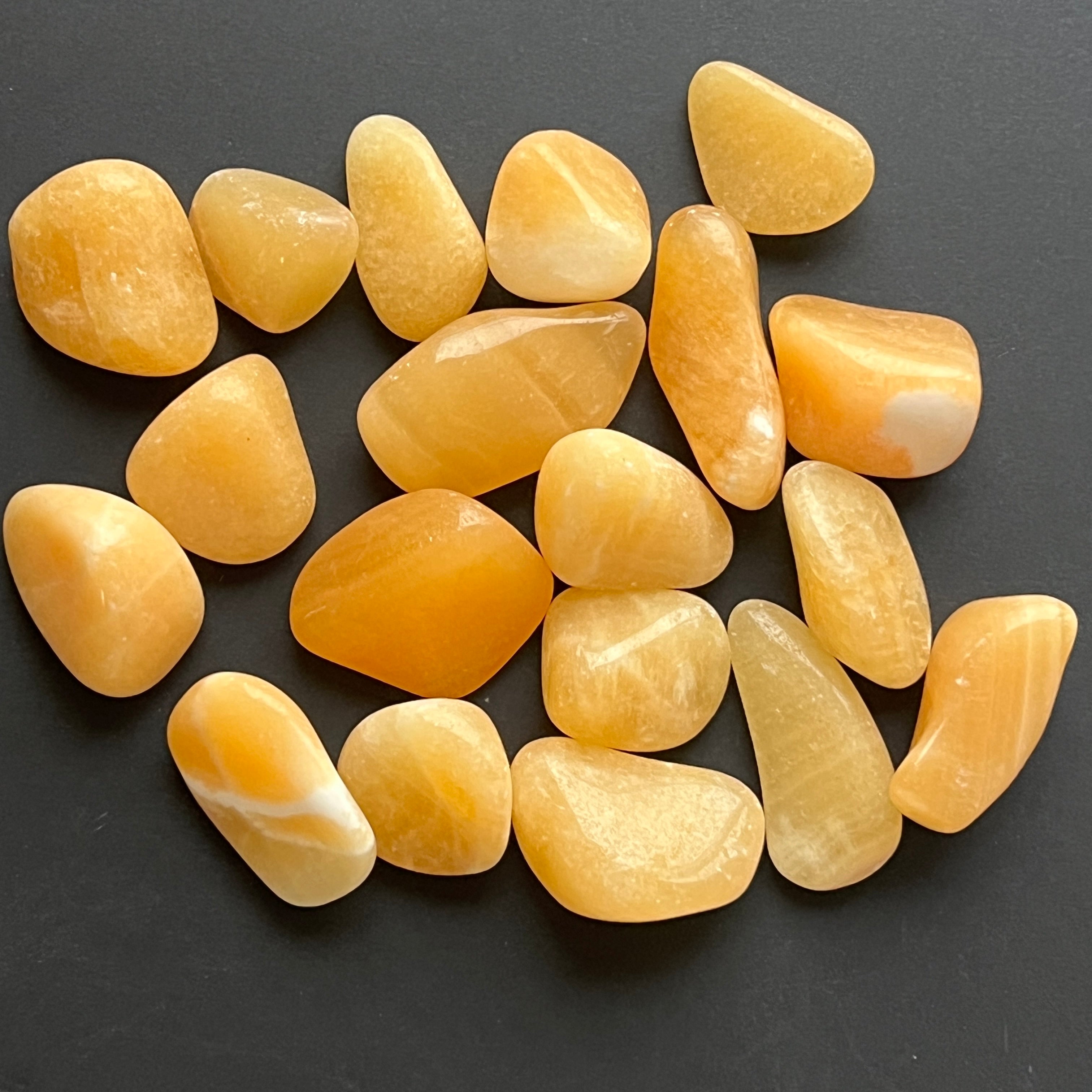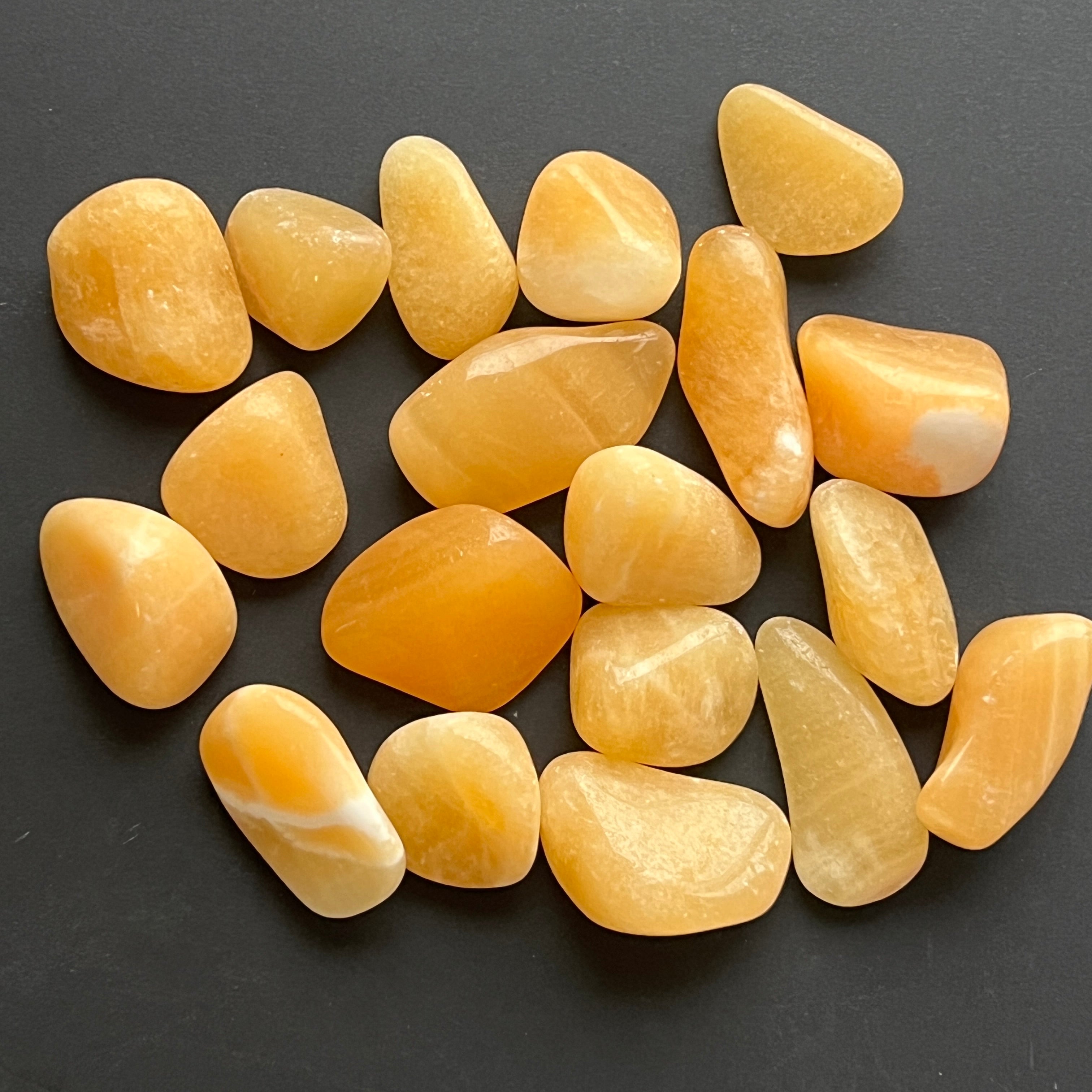 Mini pierre roulée calcite orange, tailles entre 2-3 cm. Le prix diffère selon la taille de la pierre, veuillez sélectionner la taille souhaitée. Le prix est pour une pièce.