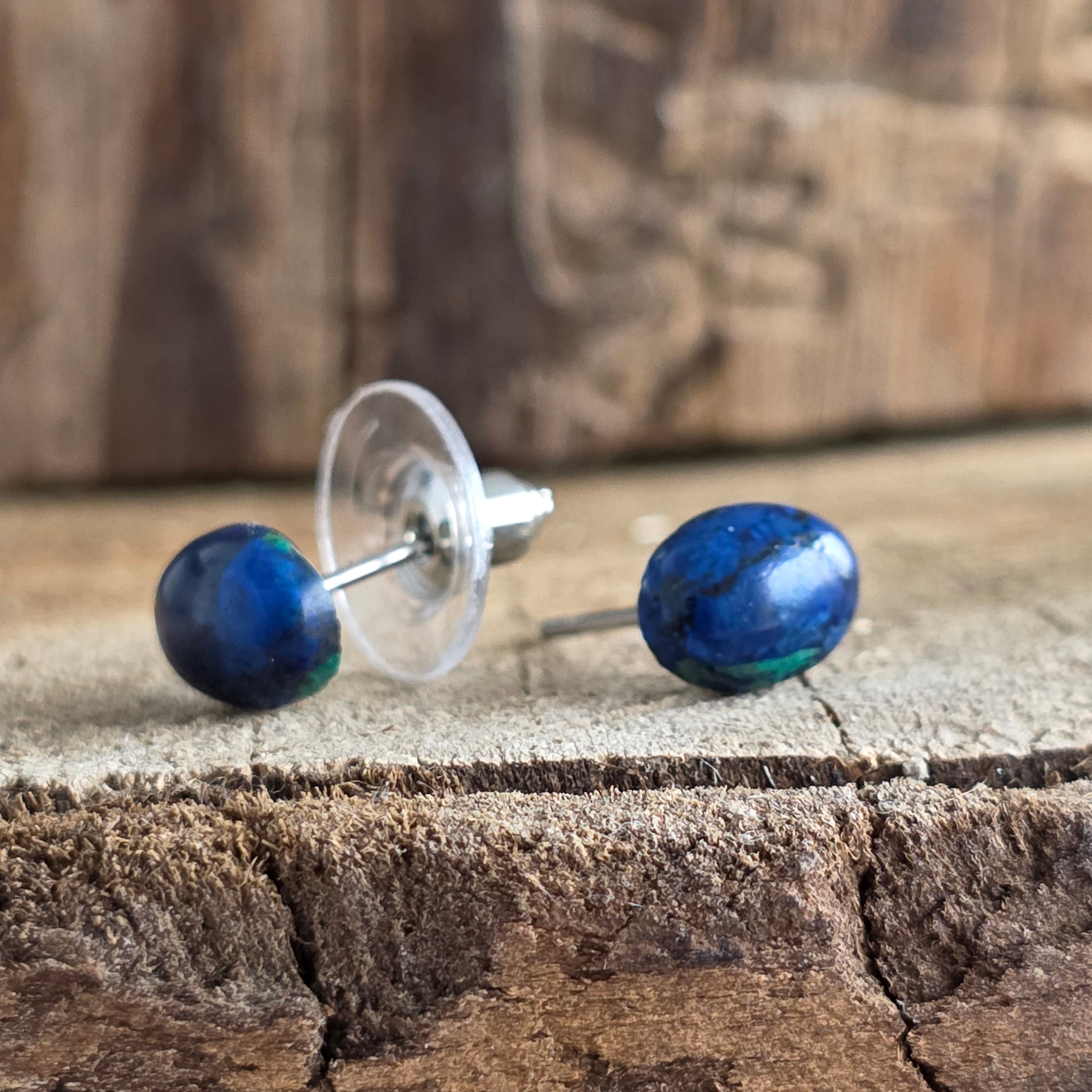 Description - Cercei stud oval azurit-malachit