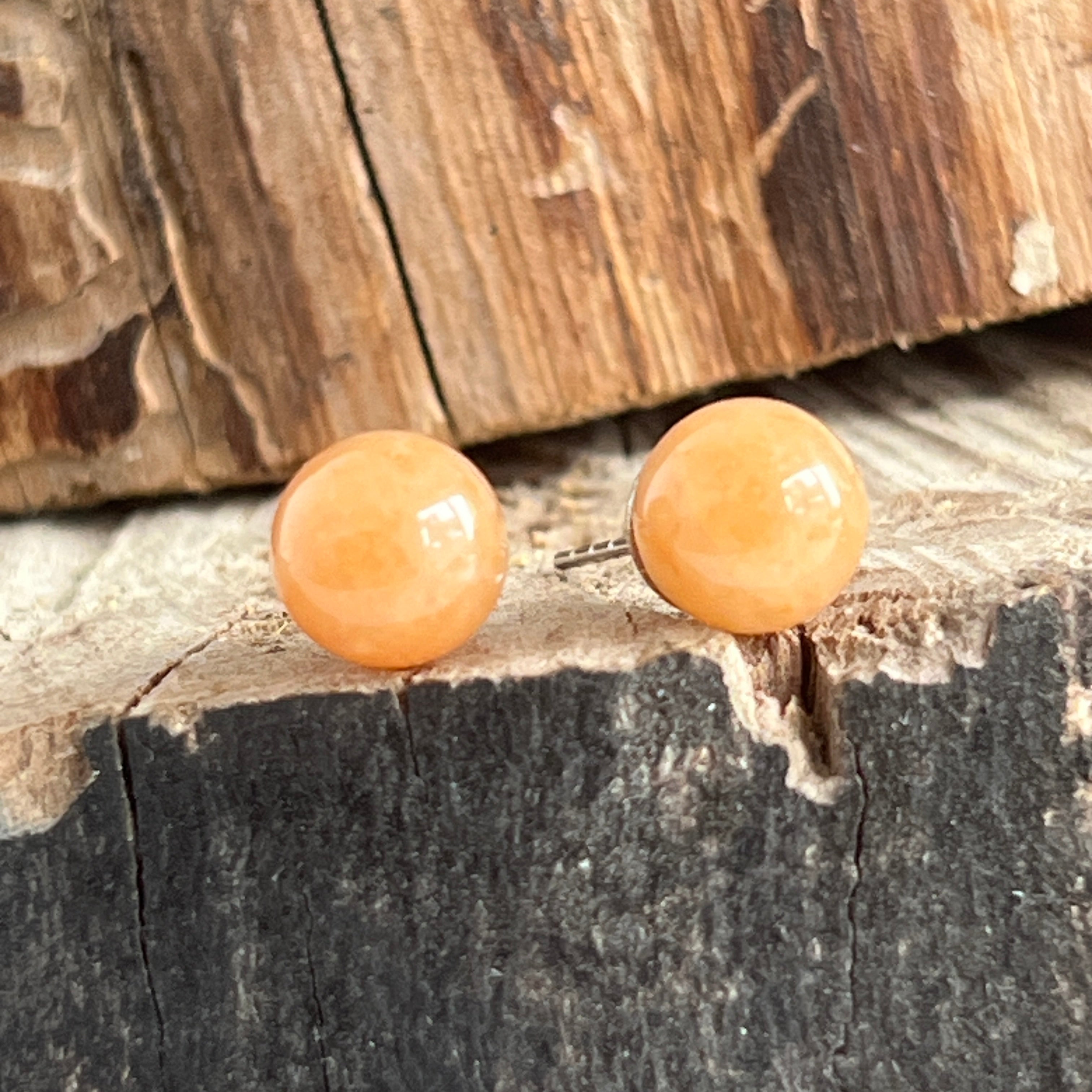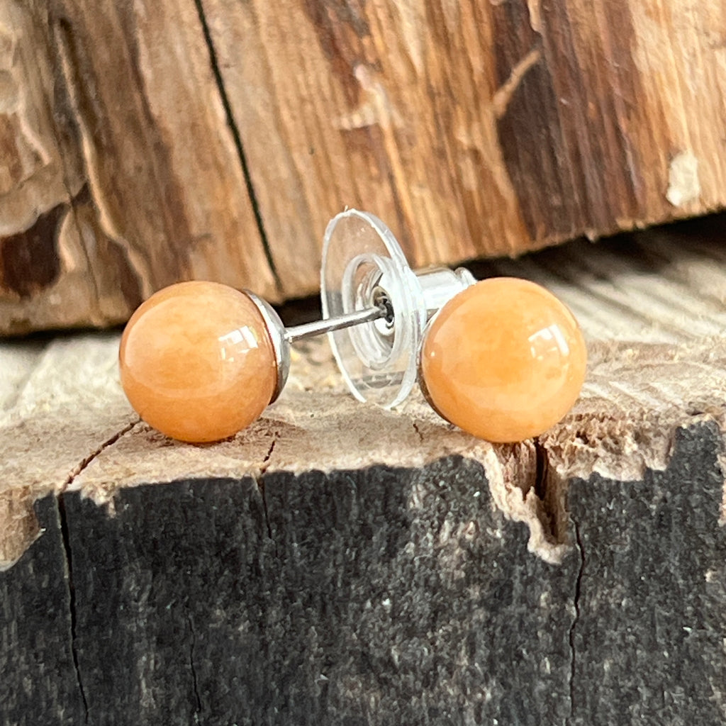 Acești cercei stud din aventurin portocaliu natural poartă lumina soarelui în fiecare sferă. Nuanța lor caldă și strălucitoare amintește de zorii unei dimineți senine — momentul acela pur în care energia și optimismul prind formă.