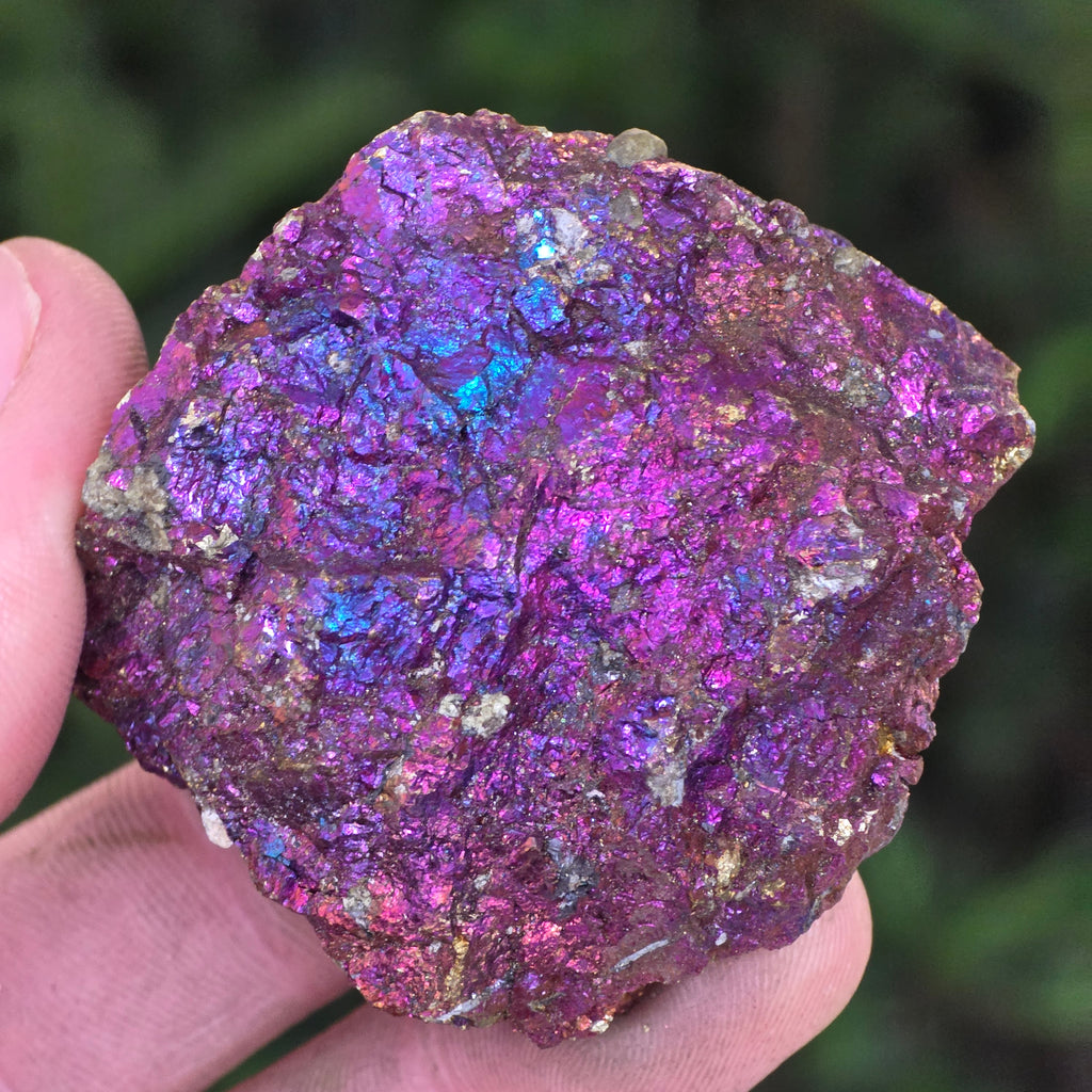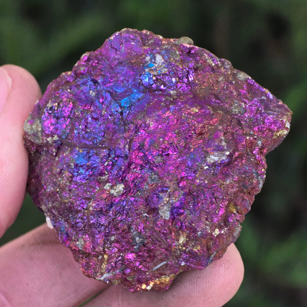 Chalcopyrite bleue, également connue sous le nom de Chalcopyrite irisée, est un type de chalcopyrite qui présente des nuances vives de bleu, de violet, de vert ou d’autres couleurs irisées. Cette iridescence est causée par une fine couche d’oxydation à la surface du minéral, un processus naturel qui se produit lorsque la chalcopyrite est exposée à l’air et à l’humidité pendant une période prolongée.