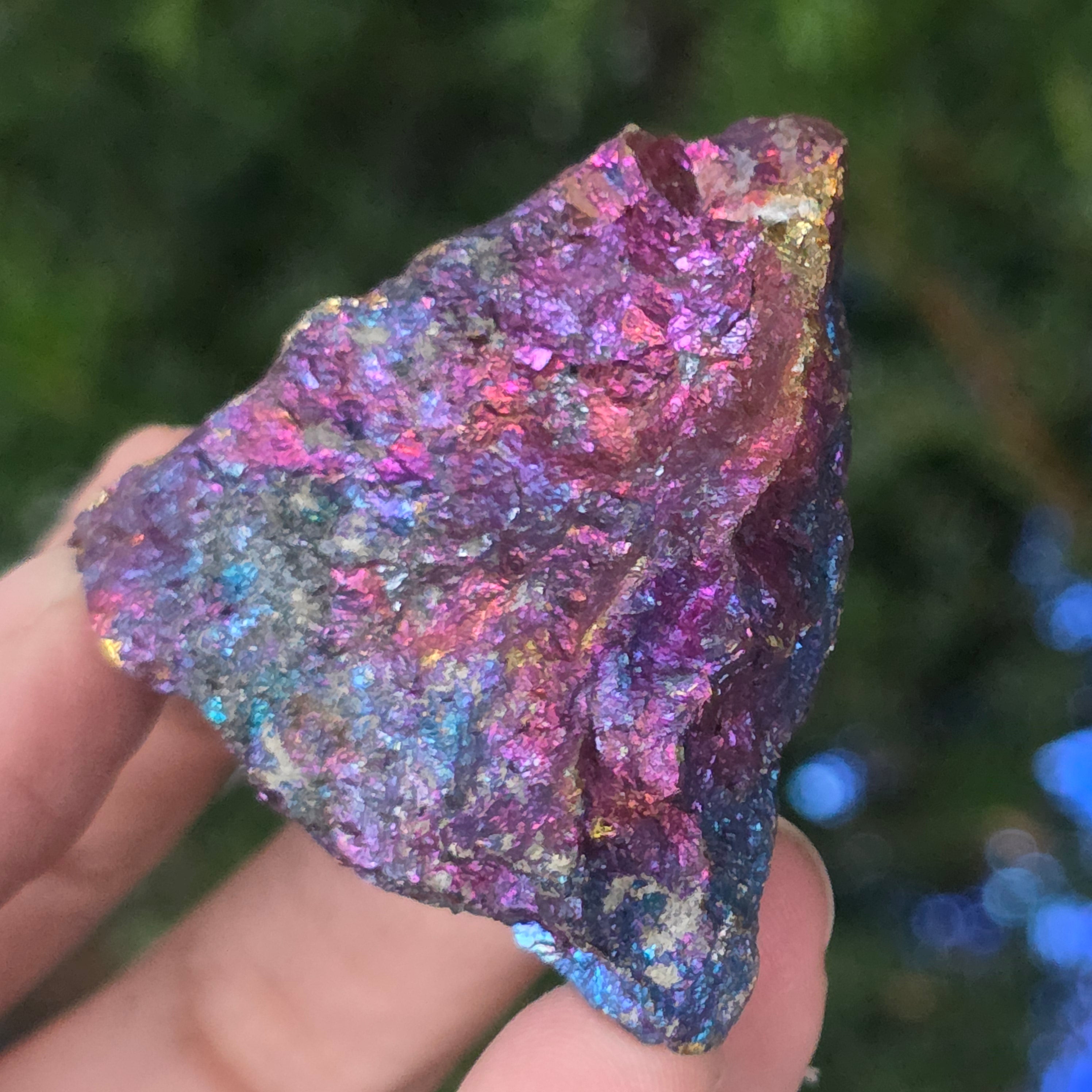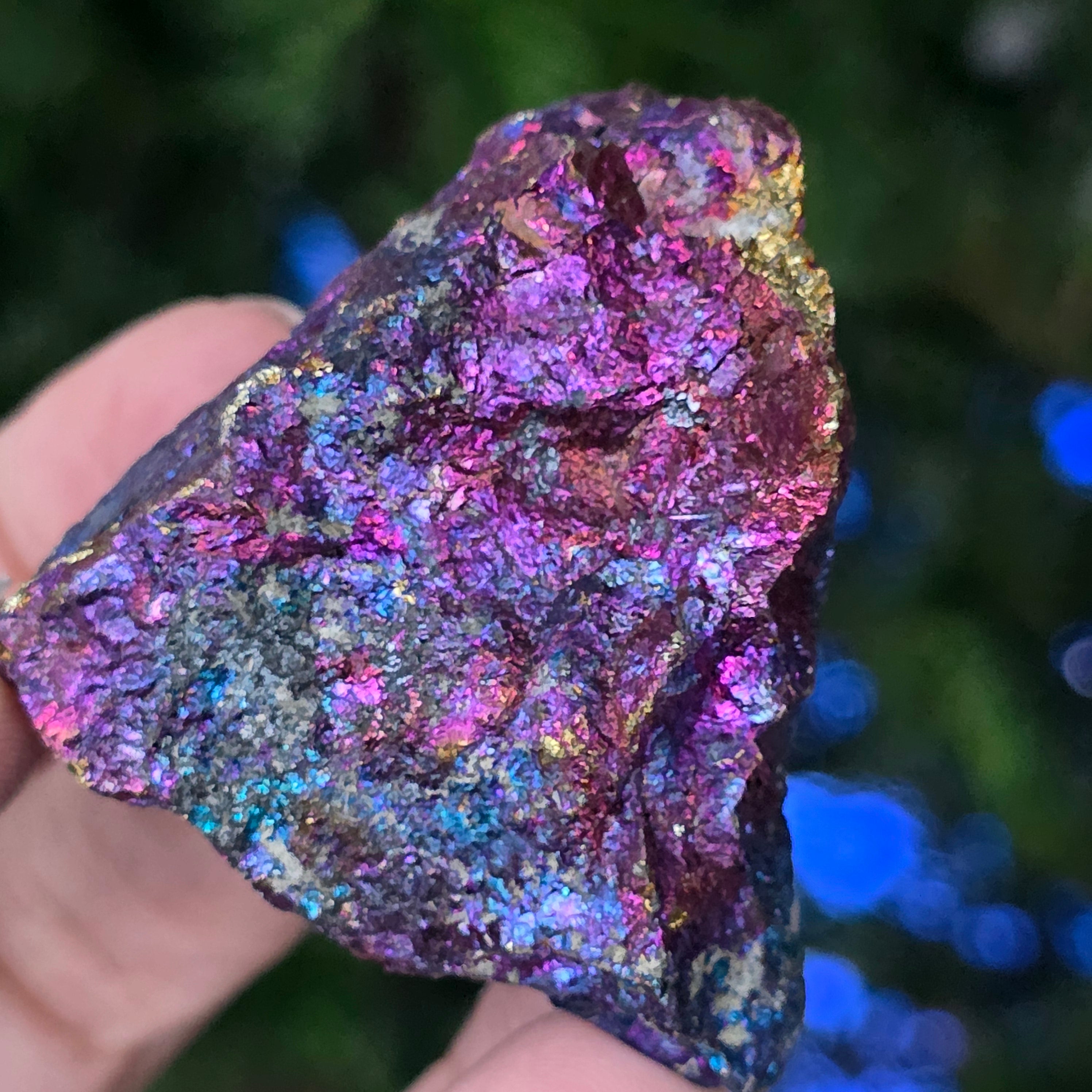 La chalcopyrite bleue et violette est associée à la croissance spirituelle, à l'intuition et à la connexion avec des énergies supérieures. On pense qu'elle aide à calmer l'esprit et à stimuler la créativité. Ses nuances irisées sont symboliquement liées à l'équilibre et à l'harmonie.
