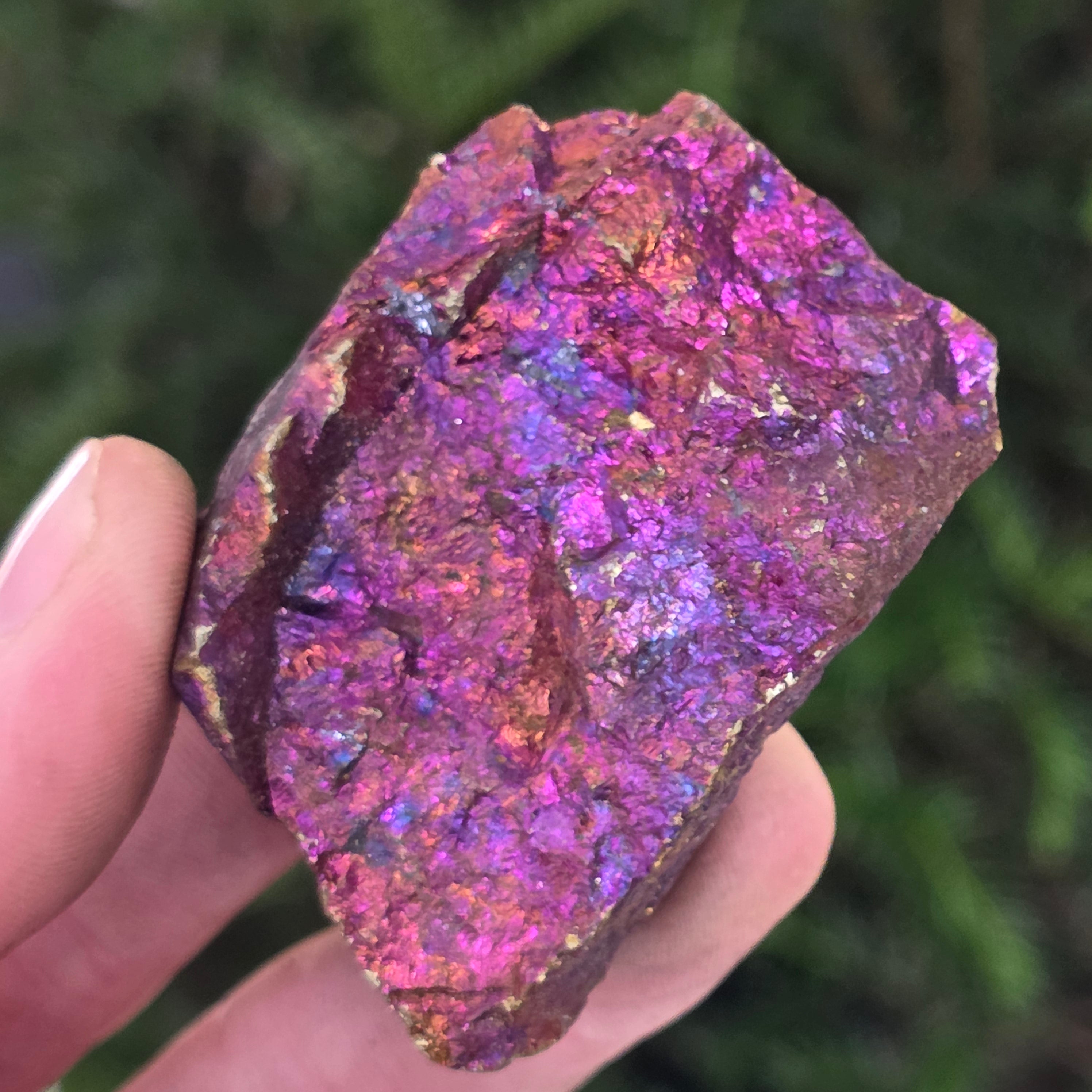 Les chalcopyrites bleues et violettes sont associées à la croissance spirituelle, à l’intuition et à la connexion avec des énergies supérieures. On pense qu’il aide à calmer l’esprit et à stimuler la créativité. Ses nuances irisées sont symboliquement liées à l’équilibre et à l’harmonie.