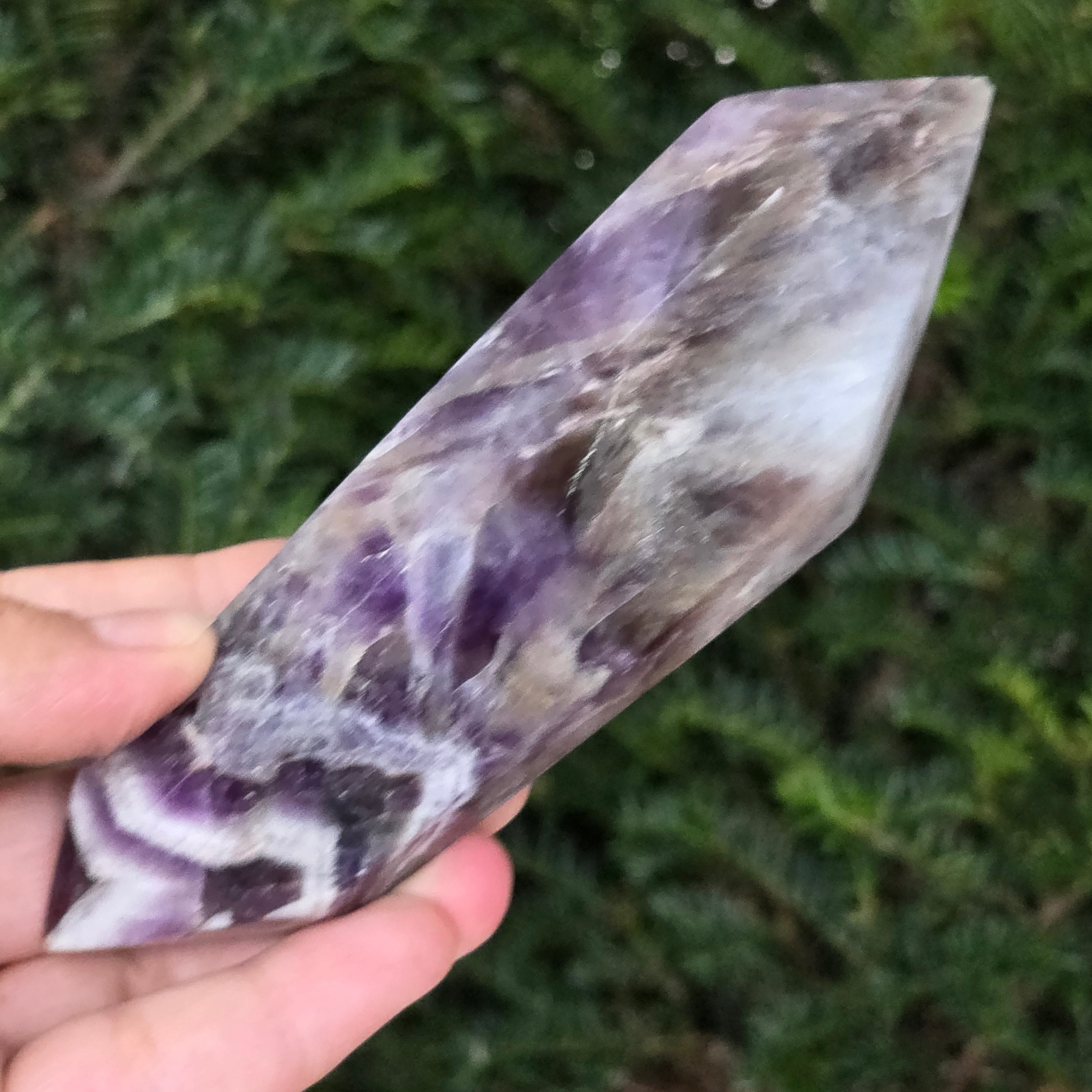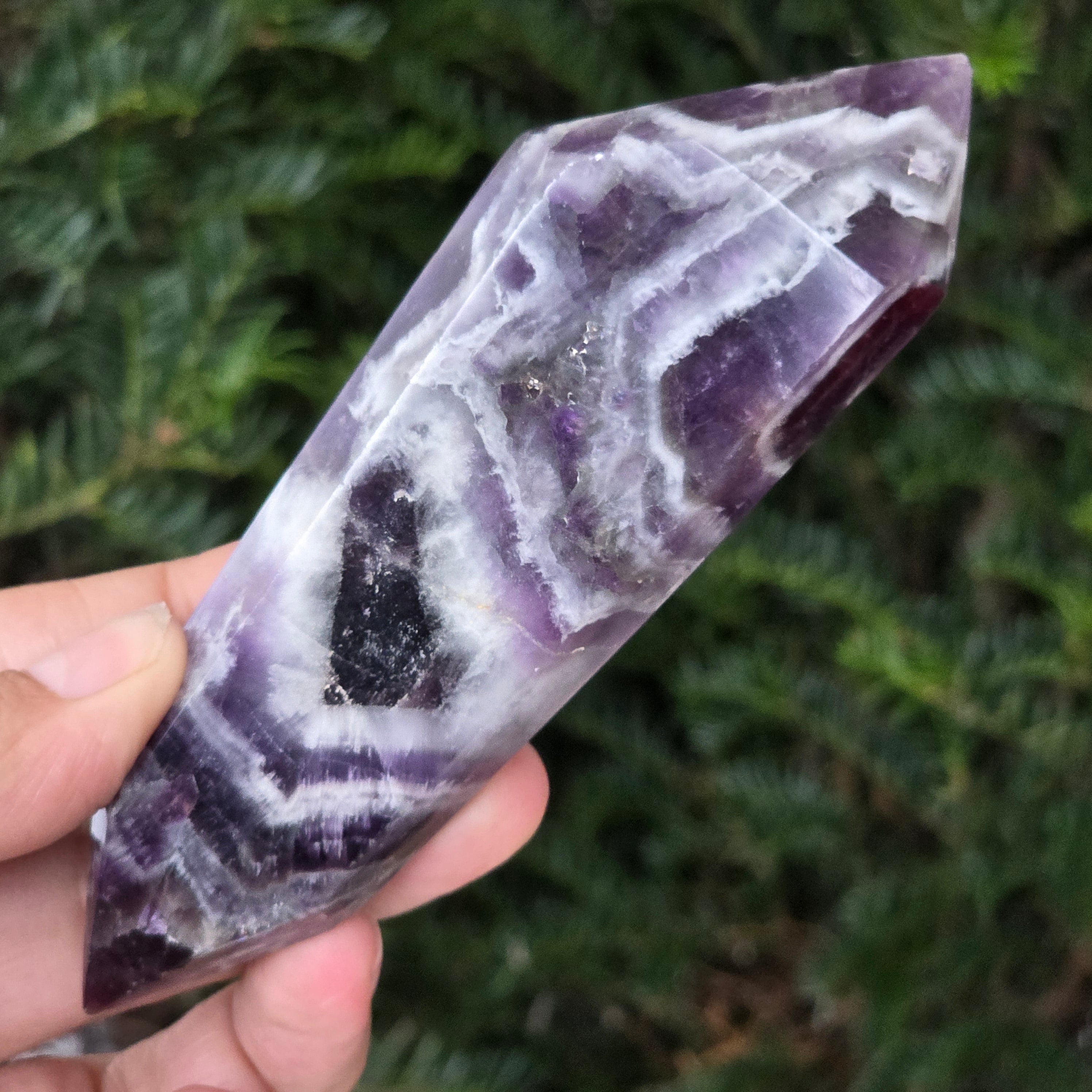 Choisissez-en un cristal améthyste chevron double pointe et qu'il devienne un allié d'équilibre, de purification et de connexion avec la sagesse intérieure.