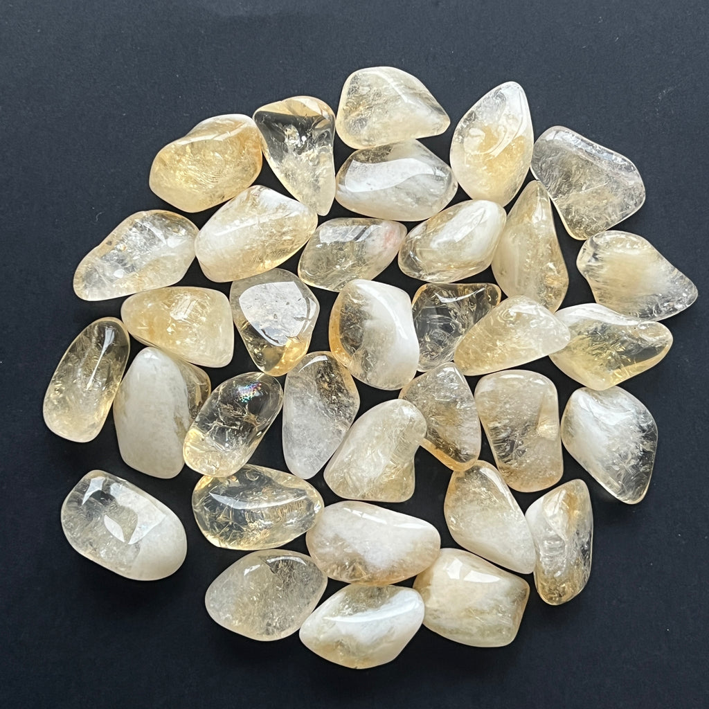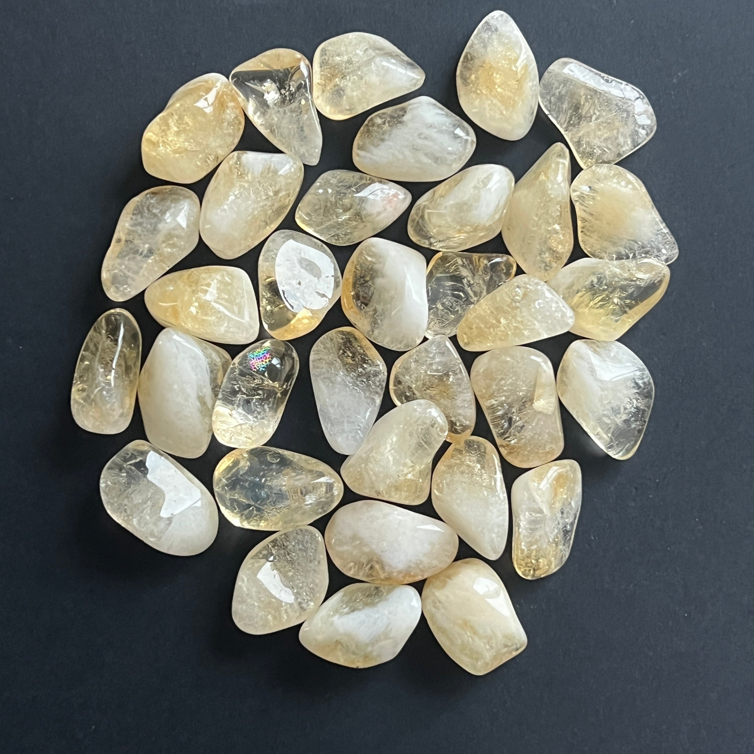 Mini pierre roulée citrine, tailles entre 1 et 4 cm. Le prix diffère selon la taille de la pierre, veuillez sélectionner la taille souhaitée. Le prix se réfère à une pièce.