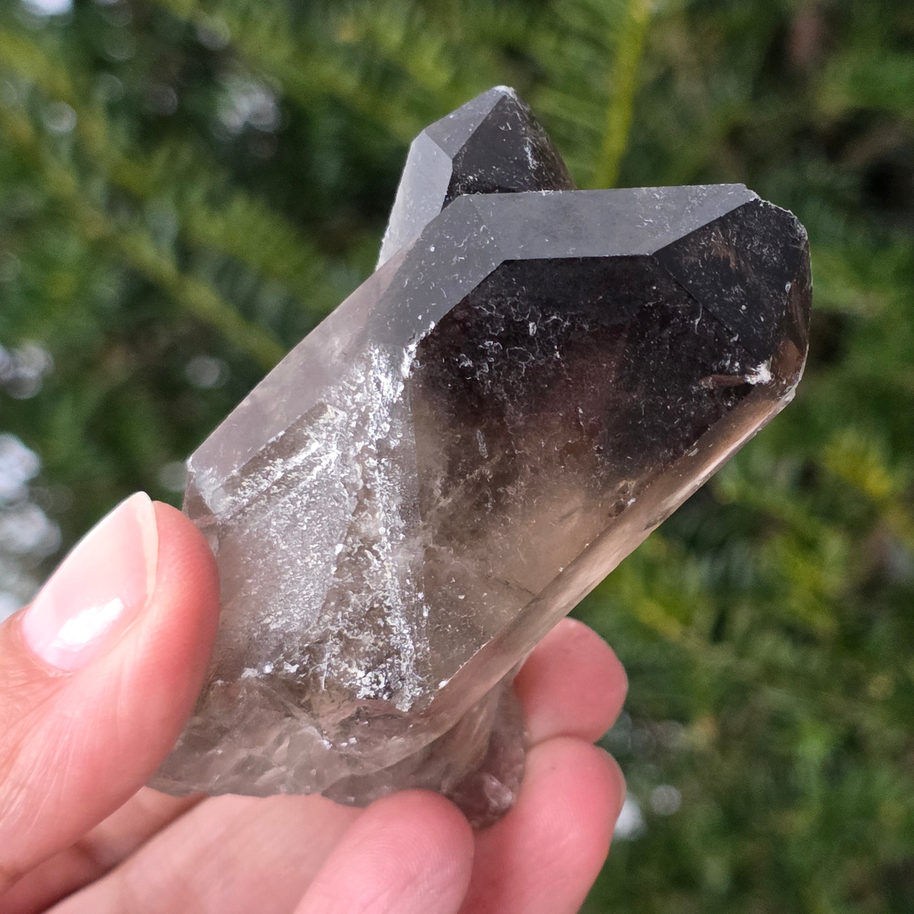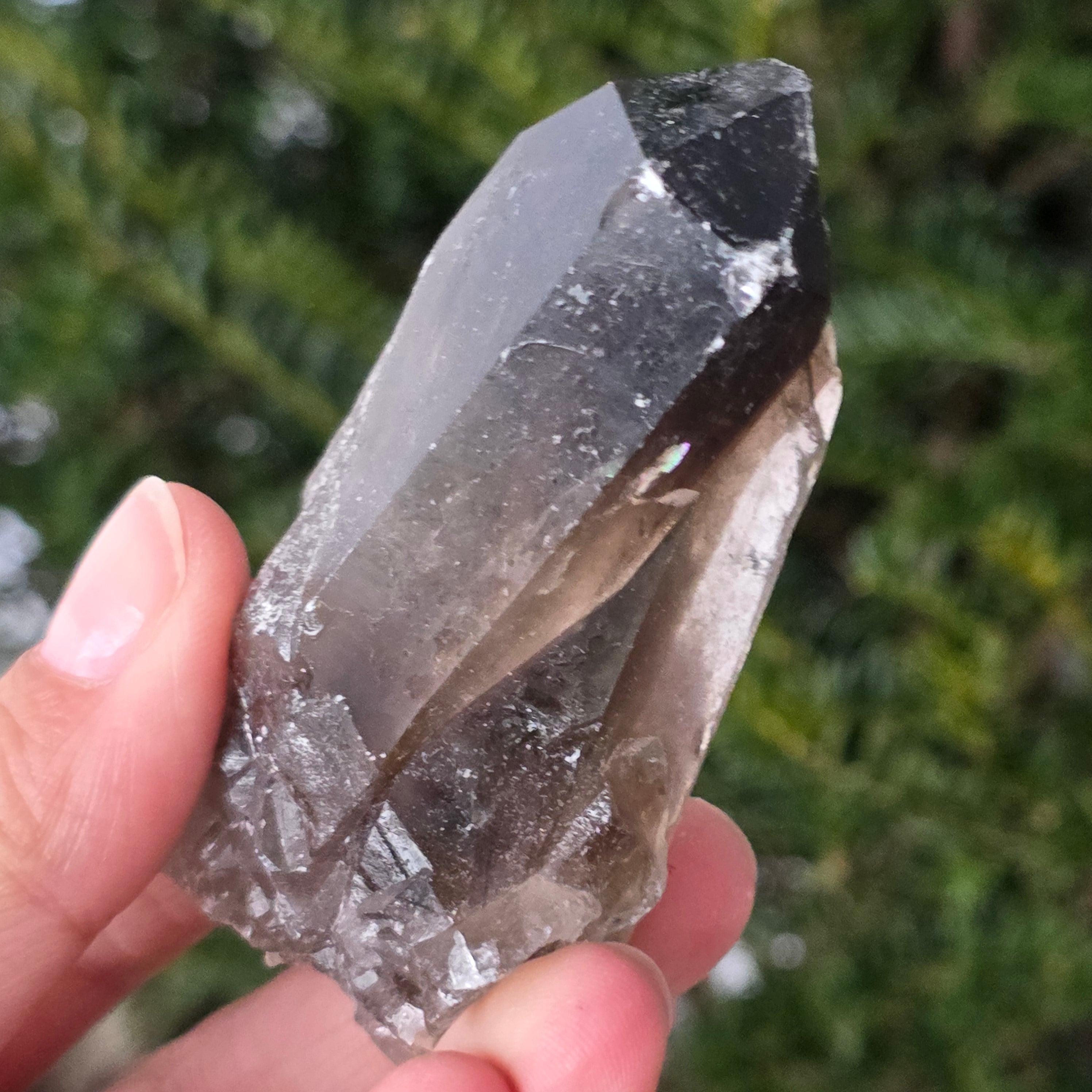 La couleur du Quartz Fumé est le résultat de l'irradiation naturelle ou de la présence d'impuretés d'aluminium lors de sa formation. Ce processus peut produire une large gamme de nuances, du pâle à l'intense.