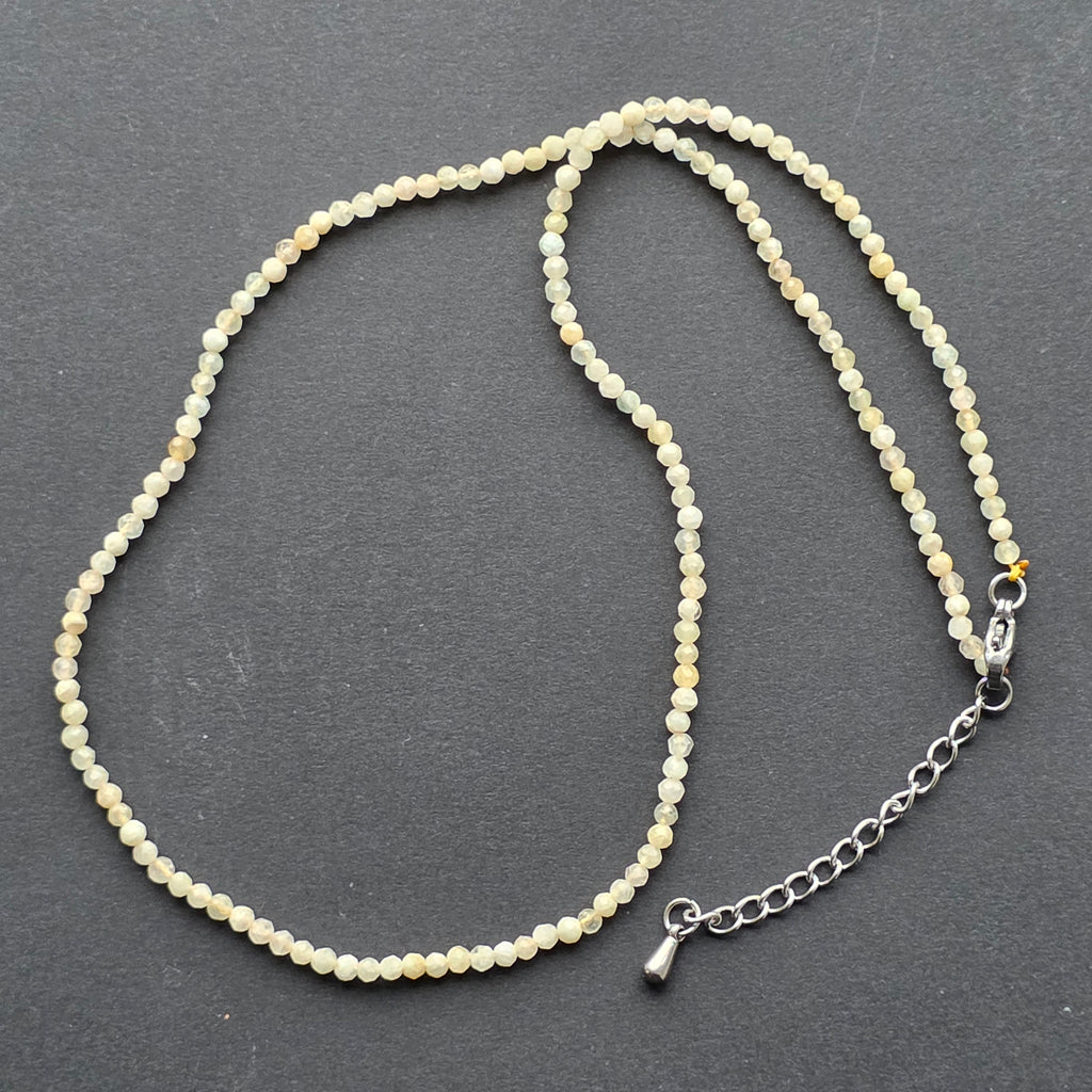 Un colier delicat și solar, realizat din beril natural cunoscut sub numele de heliodor, apreciat pentru strălucirea sa caldă și lumina blândă pe care o reflectă. Nuanțele pastelate de galben, translucid și subtil irizate, oferă colierului un aspect pur, luminos, aproape eteric. Fiecare sferă fațetată creează un joc discret de reflexii, transformând piesa într-un accesoriu elegant, perfect pentru cei care iubesc bijuteriile fine și naturale.