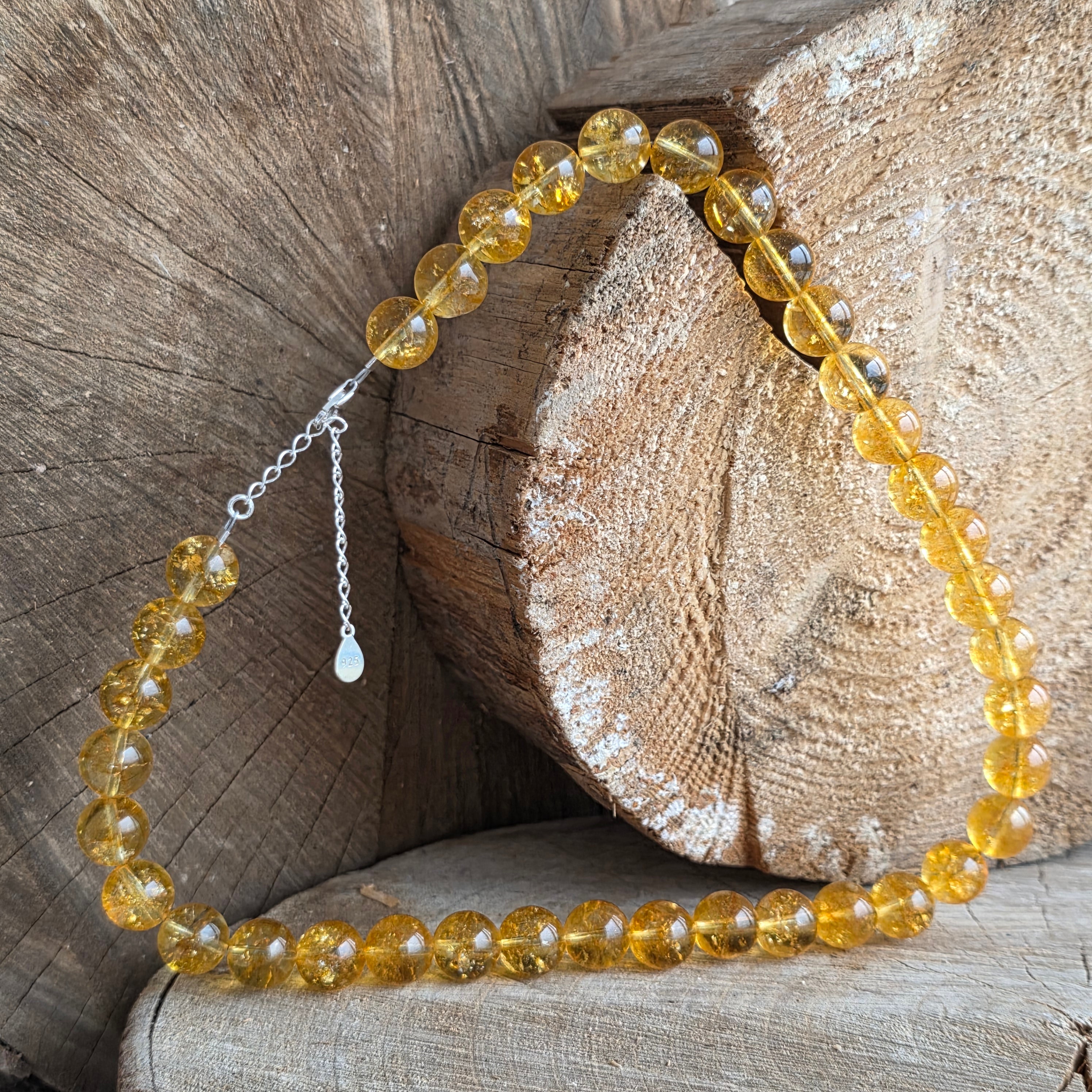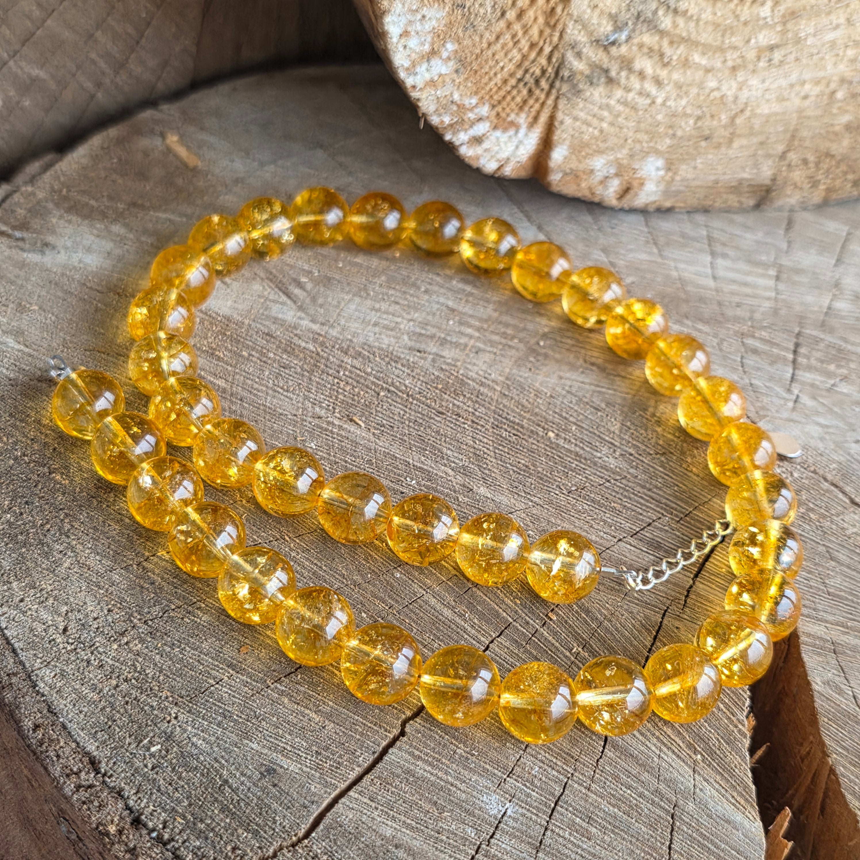 Un colier care captează lumina — pur și simplu. Realizat din citrin natural acest colier radiază căldură, bucurie și claritate. Nu doar o bijuterie, ci o amintire constantă a optimismului și a forței interioare.