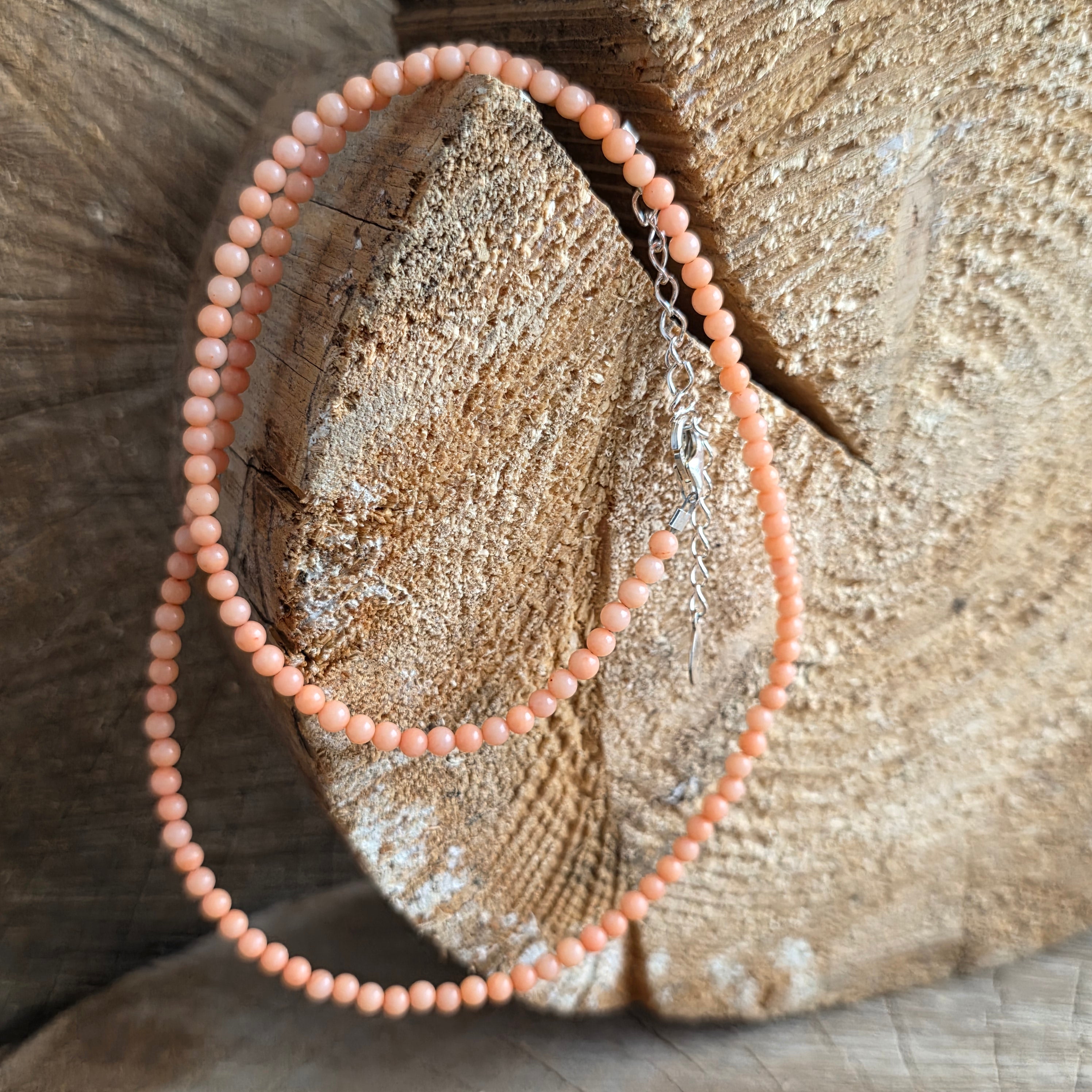 Un collier comme un tir des profondeurs - fin, gingembre et avec une vibration chaude, presque nostalgique. Le corail rose, poli dans Sphères diaphanes de 3 mm, danse le long du fil comme un souvenir oublié de la mer, avec toutes ses histoires sur la vie, la renaissance et l'amour.