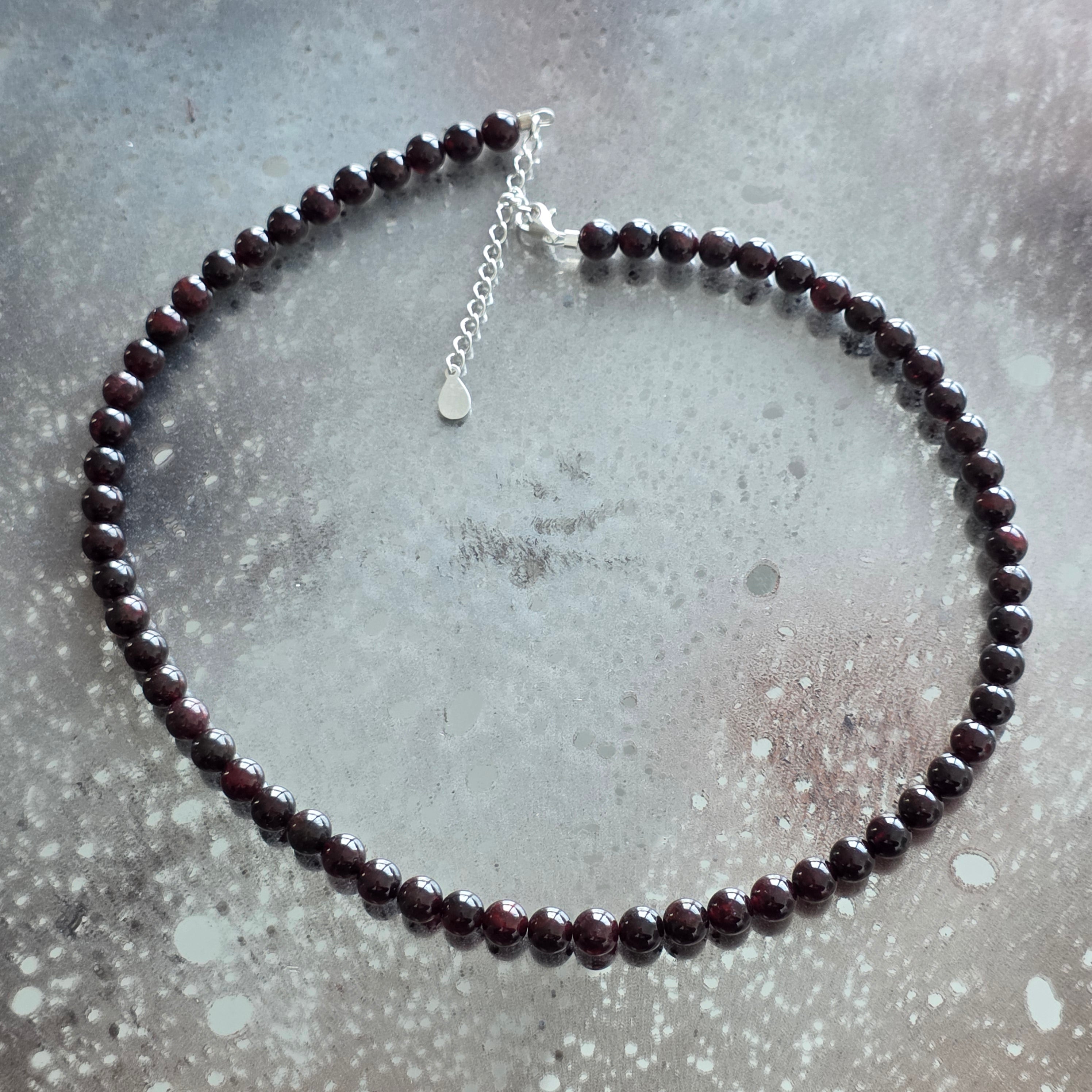 Portez le Collier Grenat Essence #123 comme un souvenir de la force qui habite en vous – un bijou classique, intense et plein de signification ✨.