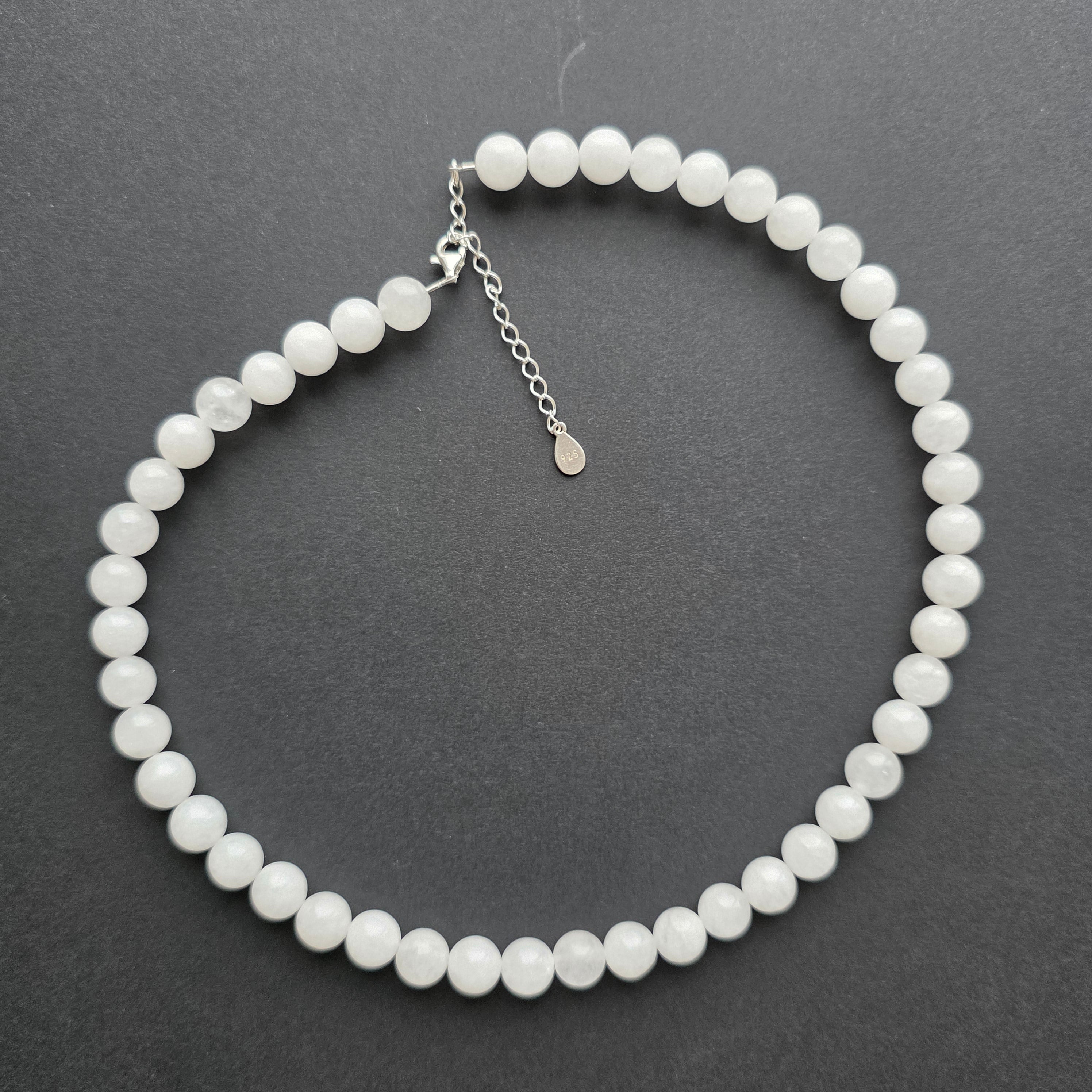 Un colier care întruchipează puritatea, simplitatea și eleganța esențială a luminii. Jadul alb, cu reflexele sale mătăsoase și transluciditatea fină, evocă liniștea unui început nou, claritatea gândului și curățenia sufletului. Fiecare sferă de 8 mm poartă o vibrație blândă și armonioasă, ca o promisiune de pace interioară.
