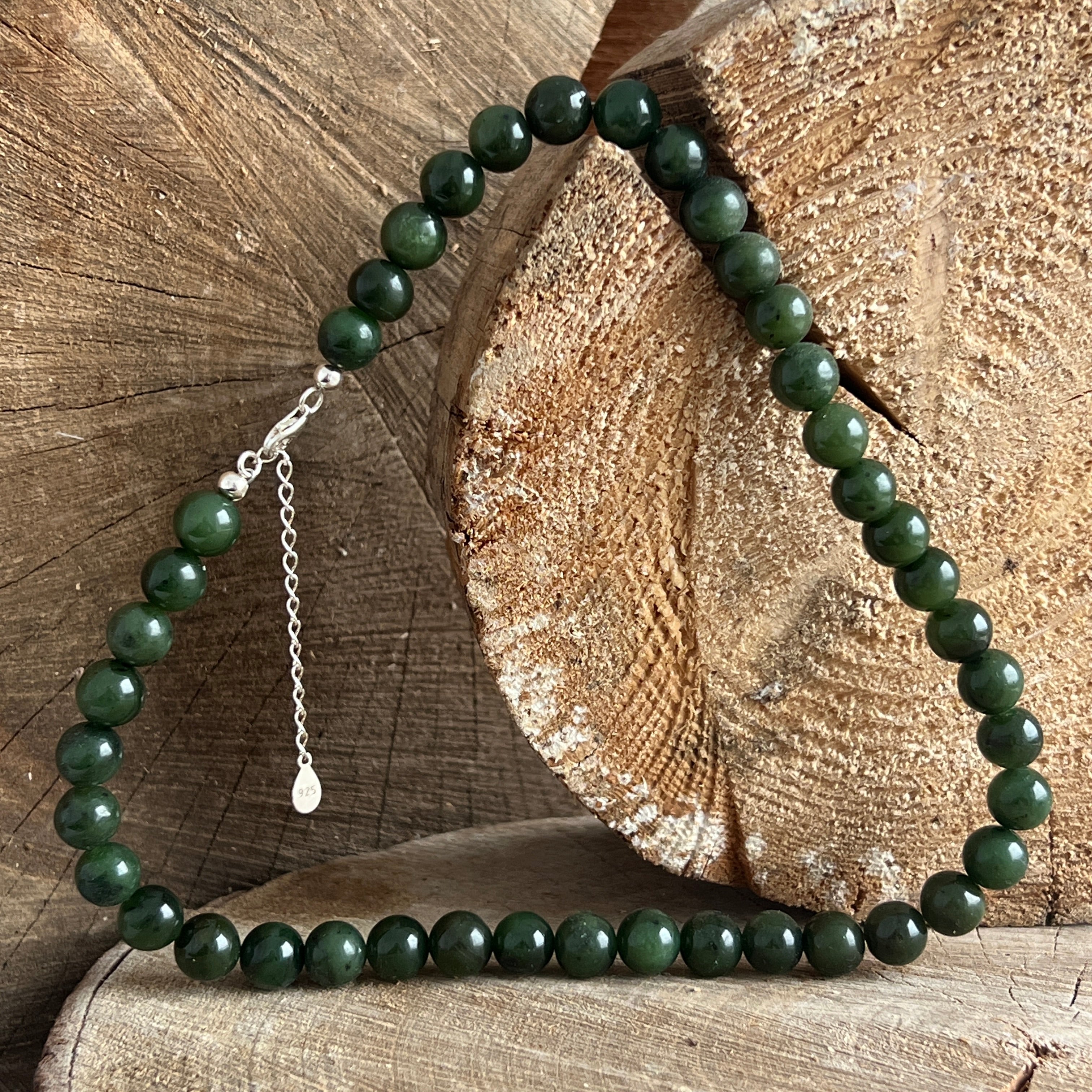 Un collier de présence, de puissance et de noblesse silencieux - créé à partir de perles de jade rondes de 10 mm, chacune portant dans sa profondeur le souffle tranquille de la nature et de la tradition.