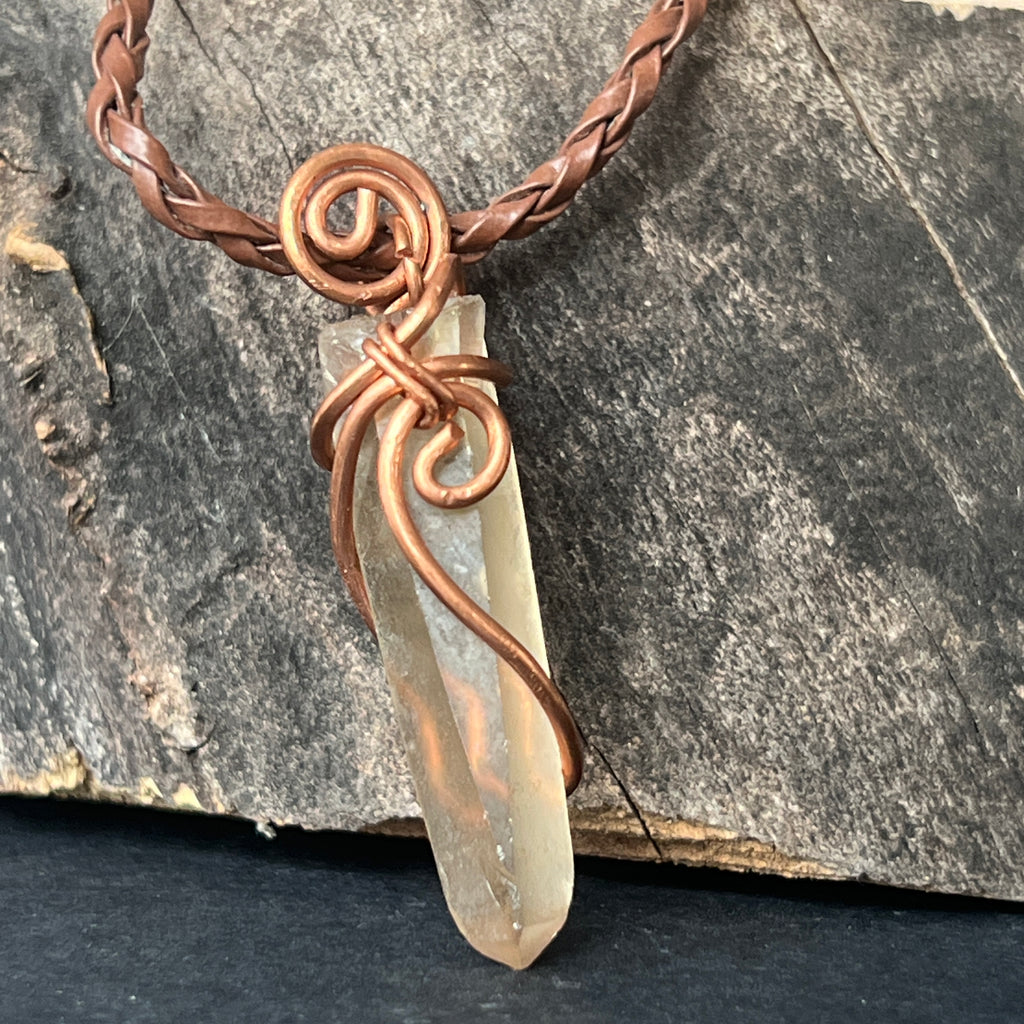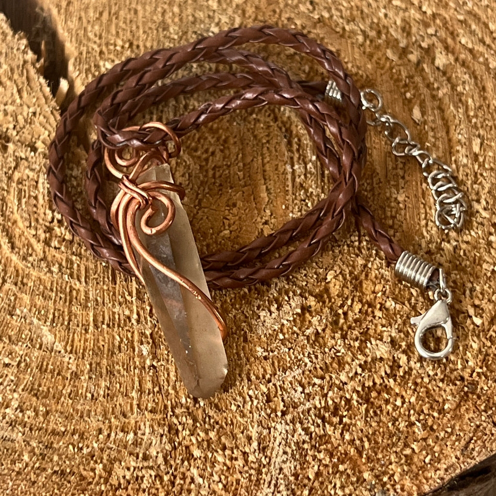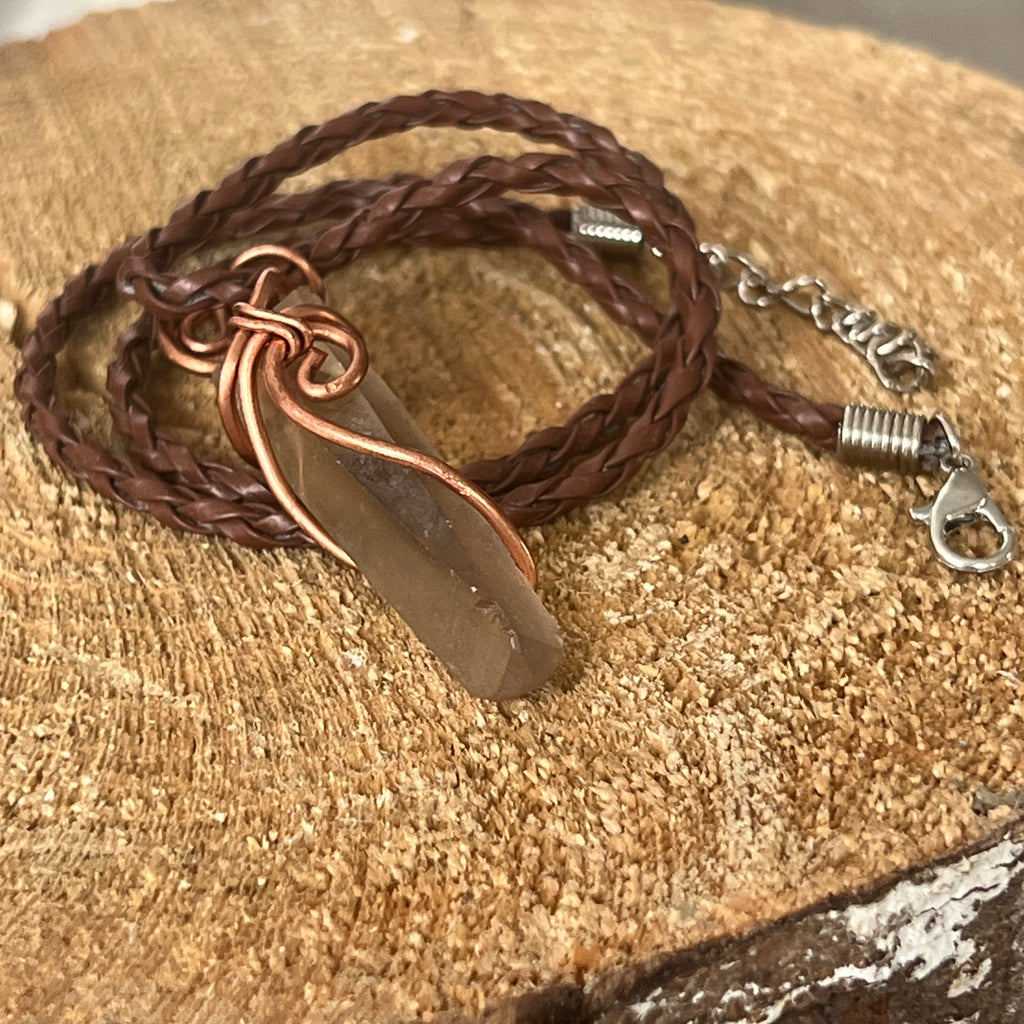 Description - Colier pandantiv cuart fumuriu in cupru/artistic wire m2