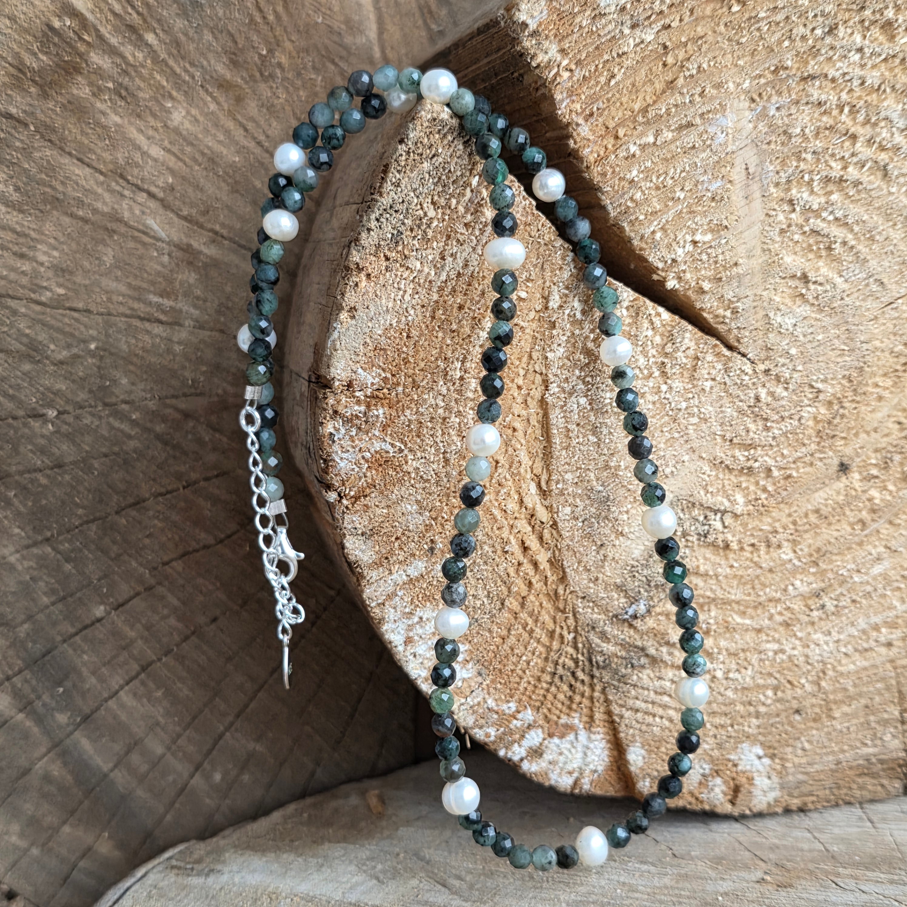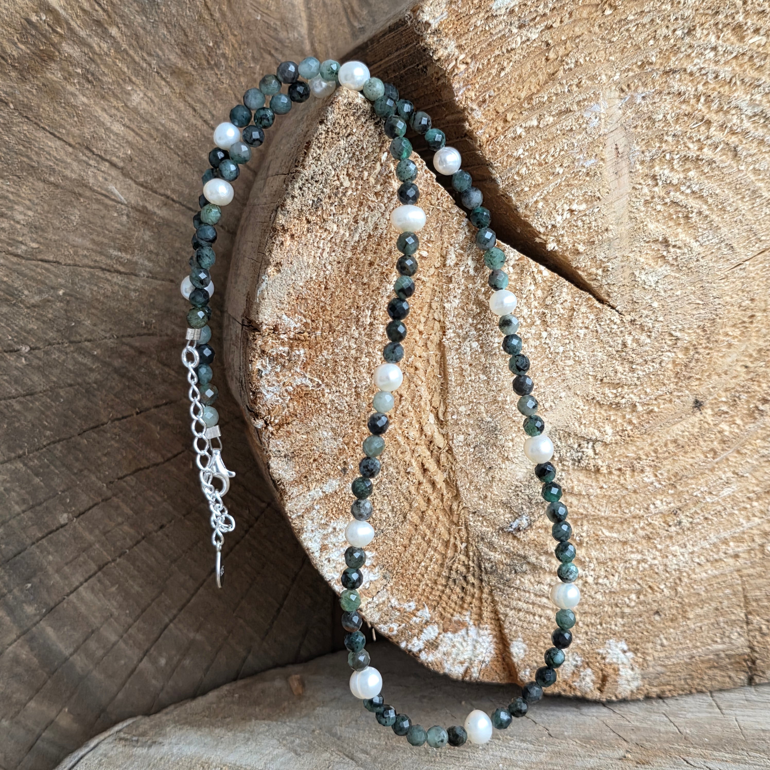 Colier smarald si perle Eden#193