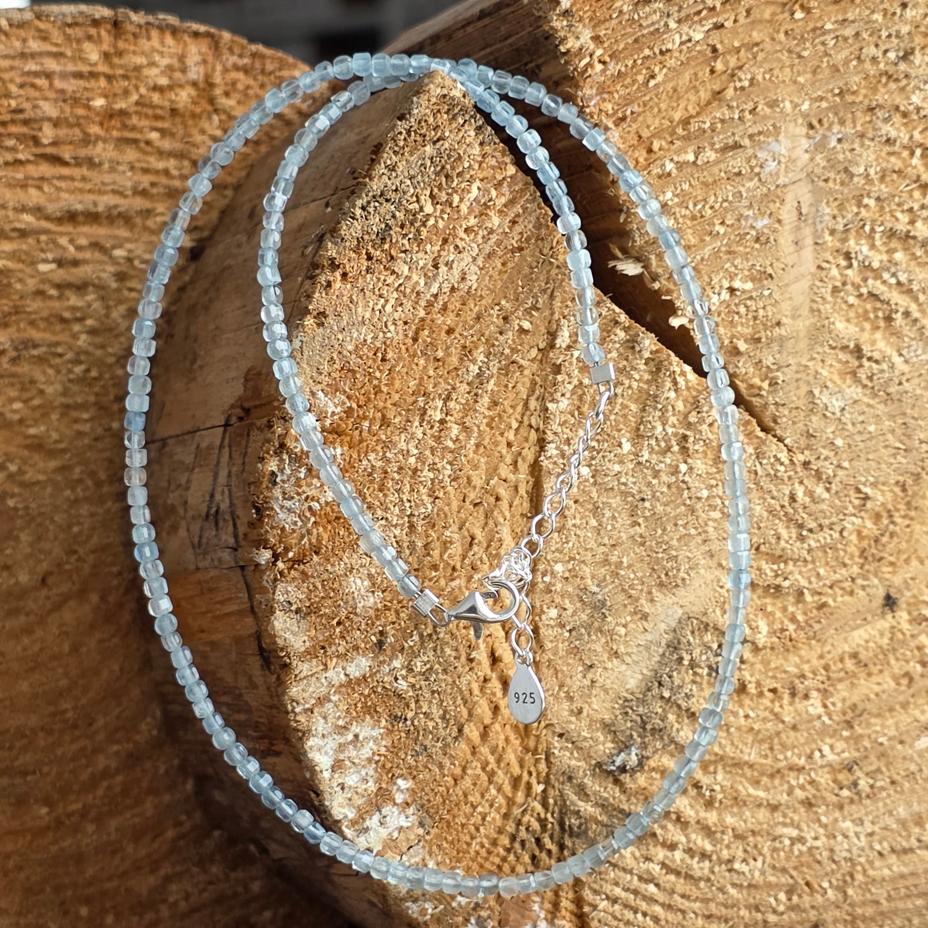 Matériaux : aigue-marine naturelle en cubes de 3 mm, argent 925