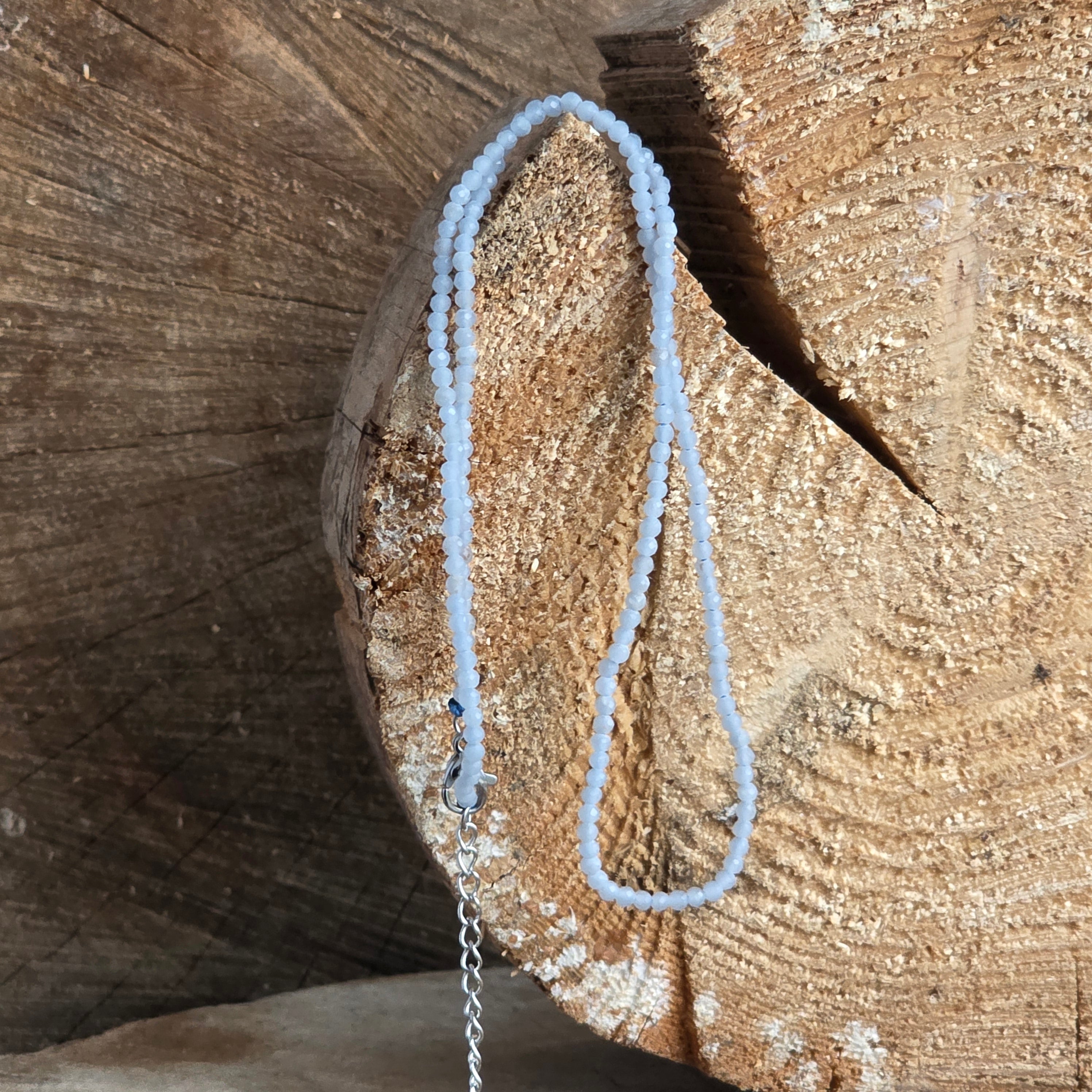 Collier angélite sphères 2-3 mm, taille : 38 + 5 cm (chaîne d’extension)