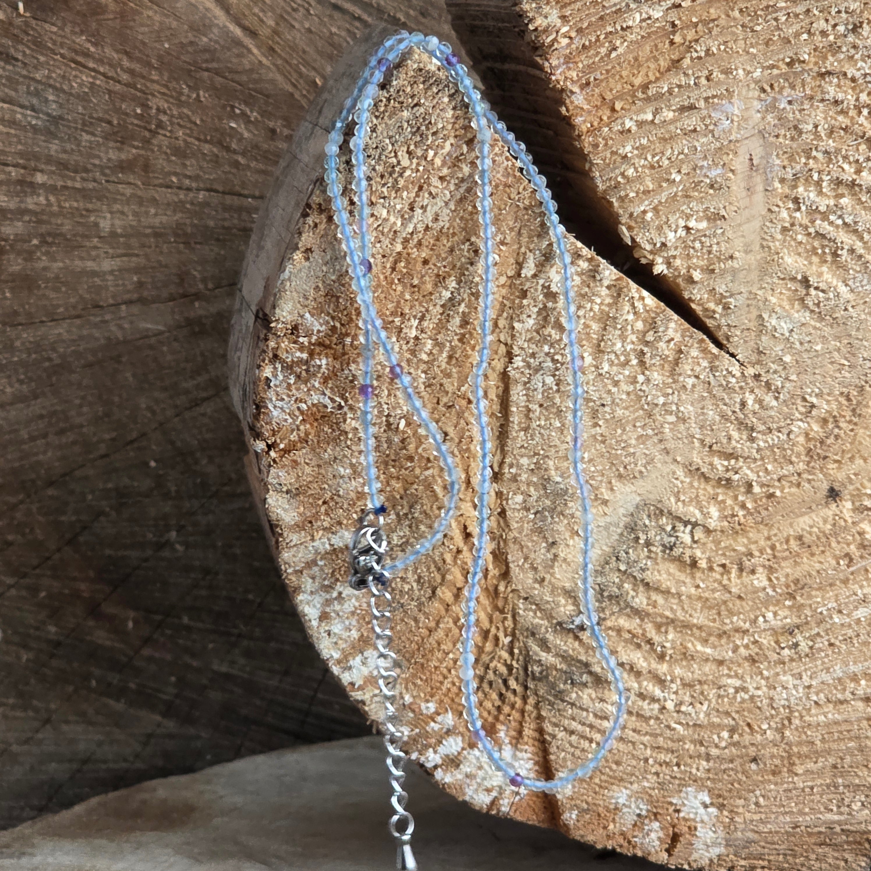 Collier en fluorite sphères 2-3 mm, taille : 38 + 5 cm (chaîne d’extension)