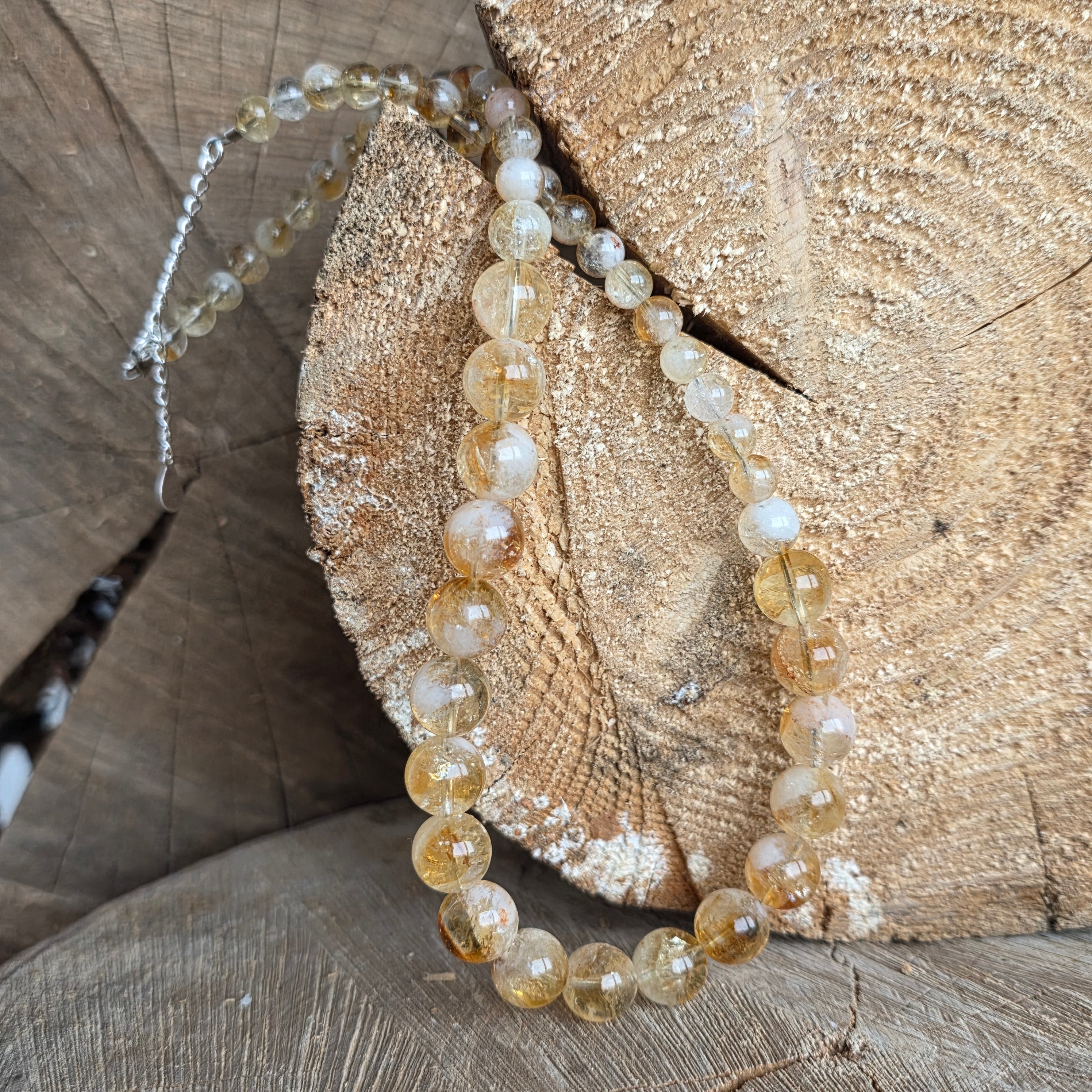 Un collier qui capte la lumière, tout simplement. Fabriqué à partir de citrine naturelle, ce collier rayonne de chaleur, de joie et de clarté. Pas seulement un bijou, mais un rappel constant d'optimisme et de force intérieure.