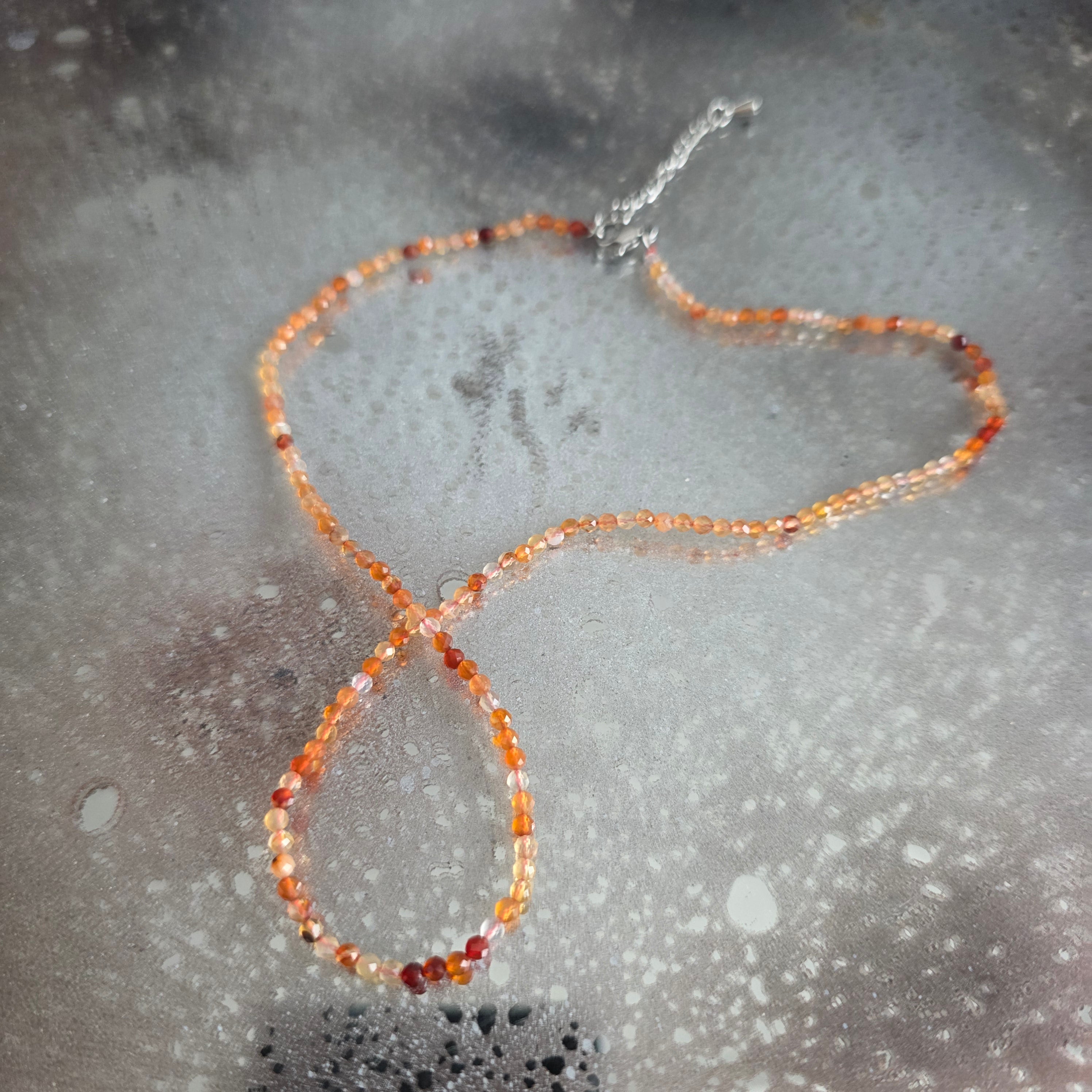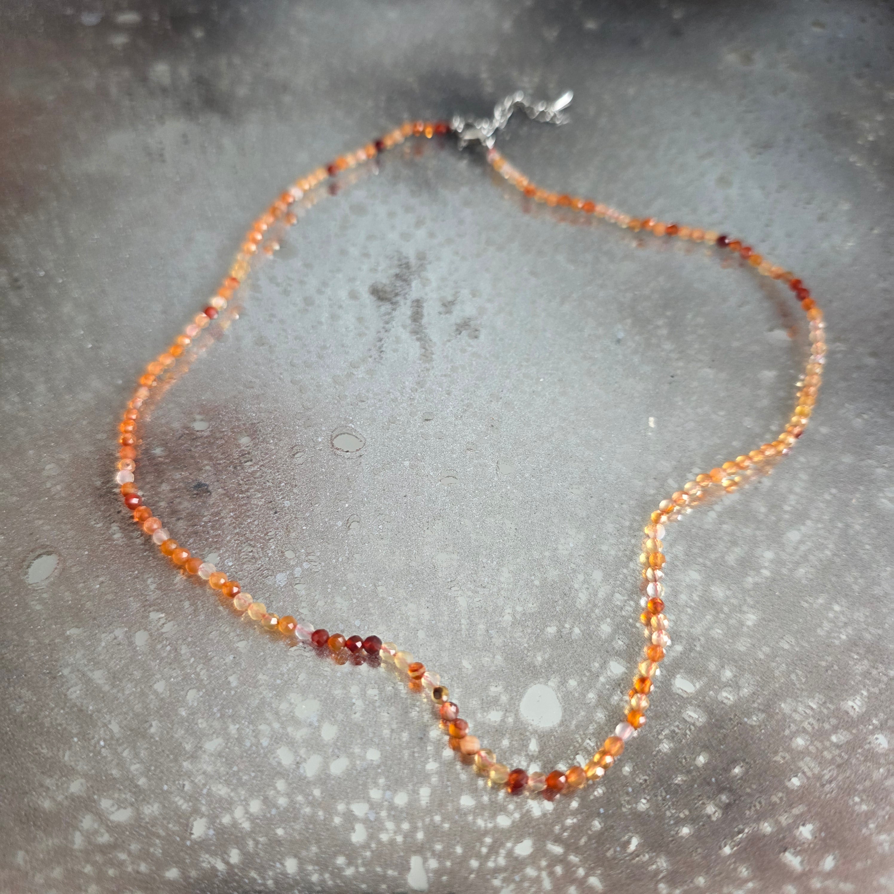 Collier en cornaline perles 2 mm, taille : 38 + 5 cm (chaîne d'extension)