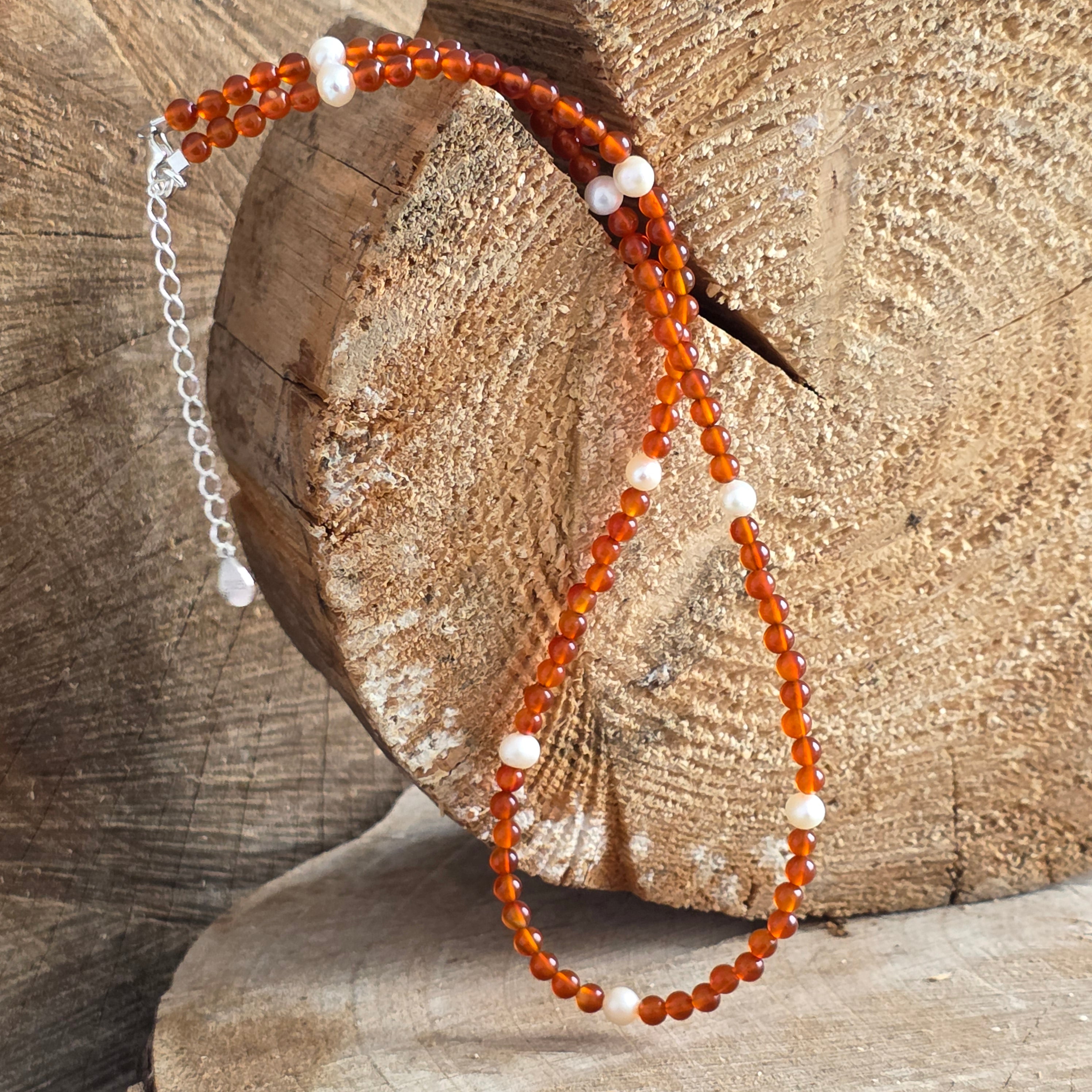 Collier de cornaline et de perles naturelles Ember Grace #128 c'est un hommage à la femme qui brûle magnifiquement, avec noblesse, équilibre et beauté qui jaillit de l'intérieur. 🔥✨