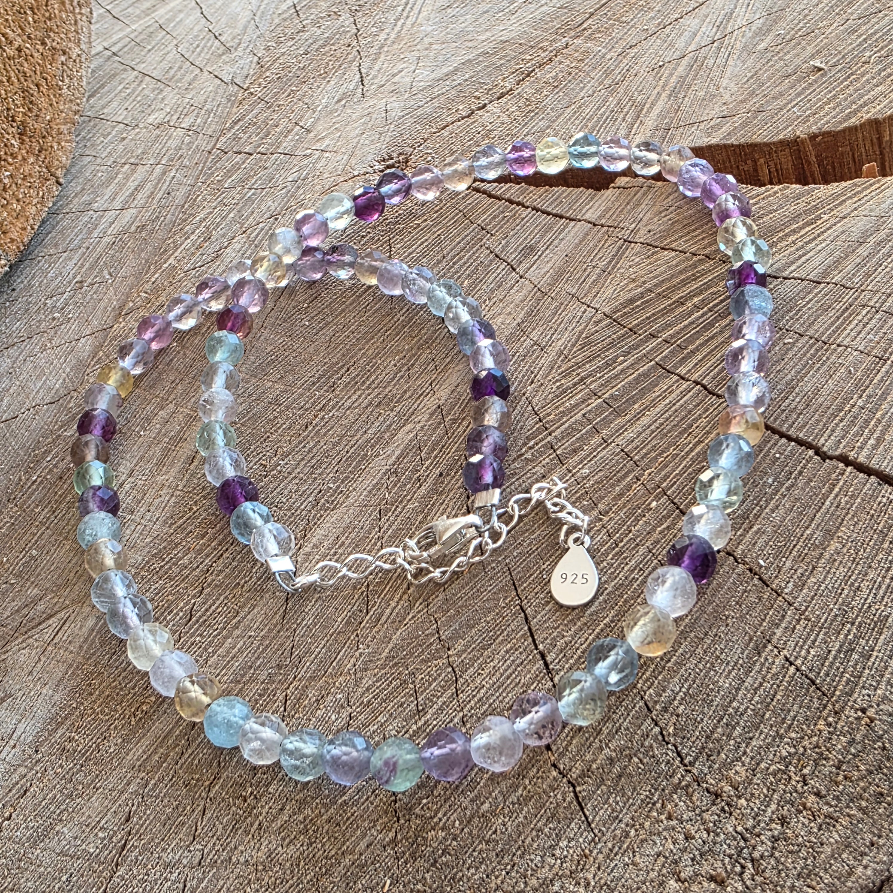 Un collier comme une fenêtre ouverte à la lumière - vivant, clair, ludique et profond à la fois. Les perles en fluorite de fluorite de 6 mm brillent dans des nuances qui dansent entre violet, vert, bleu et rose, comme un pont entre l'émotion et la raison, entre rêve et lucidité.