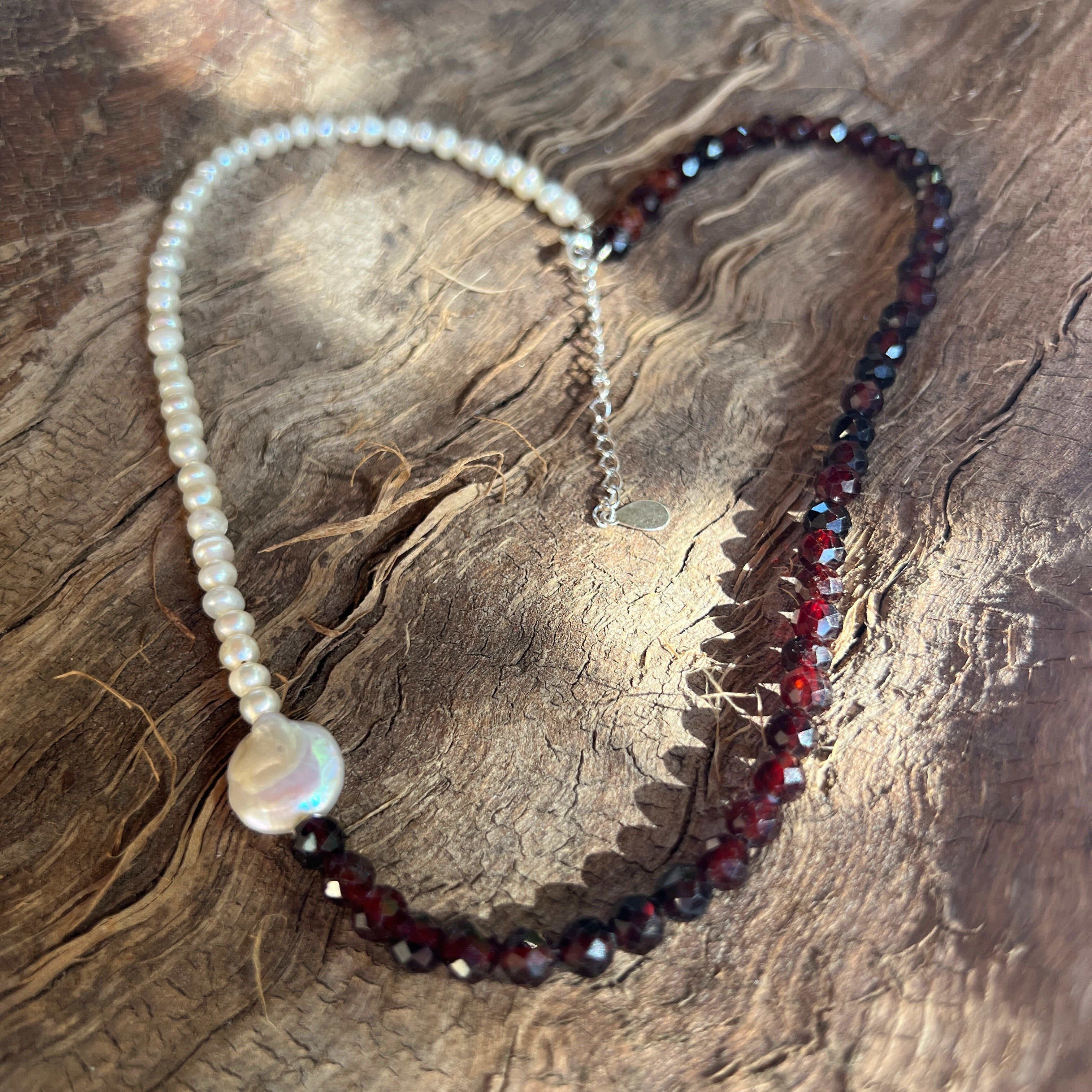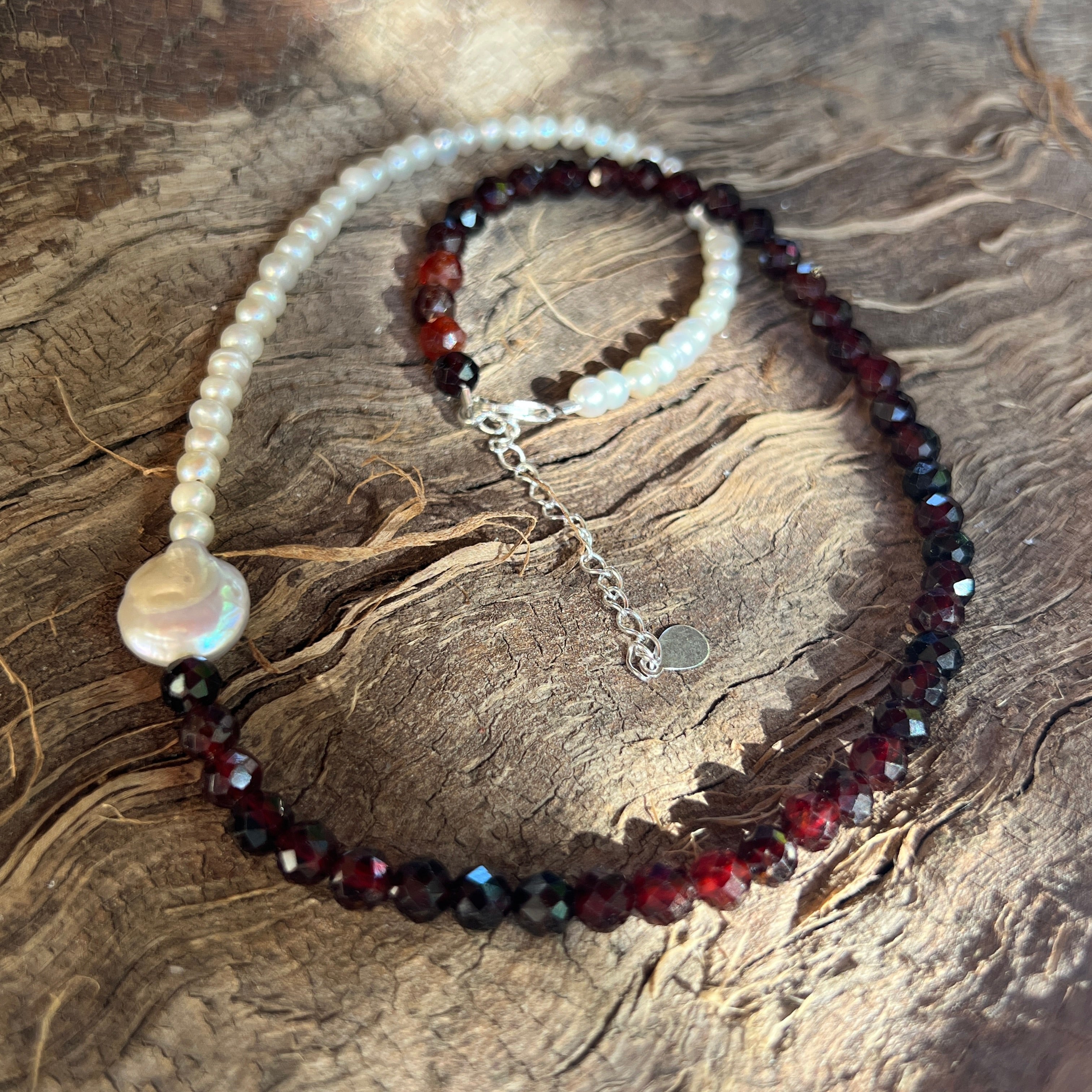 Matériels: 6 mm Garnet naturel, perles naturelles, 925 argent