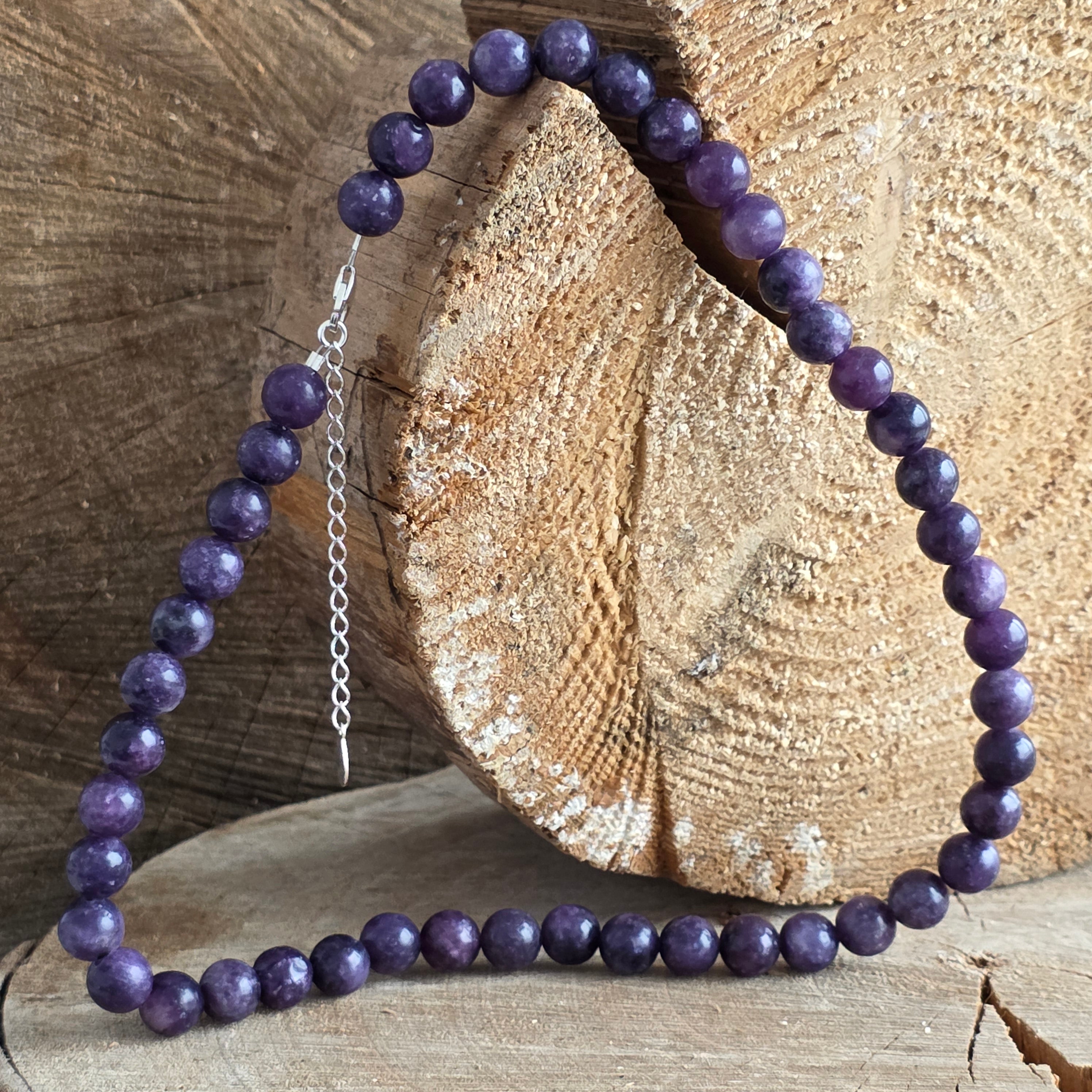 Un collier respiratoire Calme et délicatesse, comme un tir au crépuscule ou une prière parlée en secret. Les perles de lépidolite naturelle 8 mm, avec leurs réflexes gris lavande et gris, créent un flux calme et protecteur.
