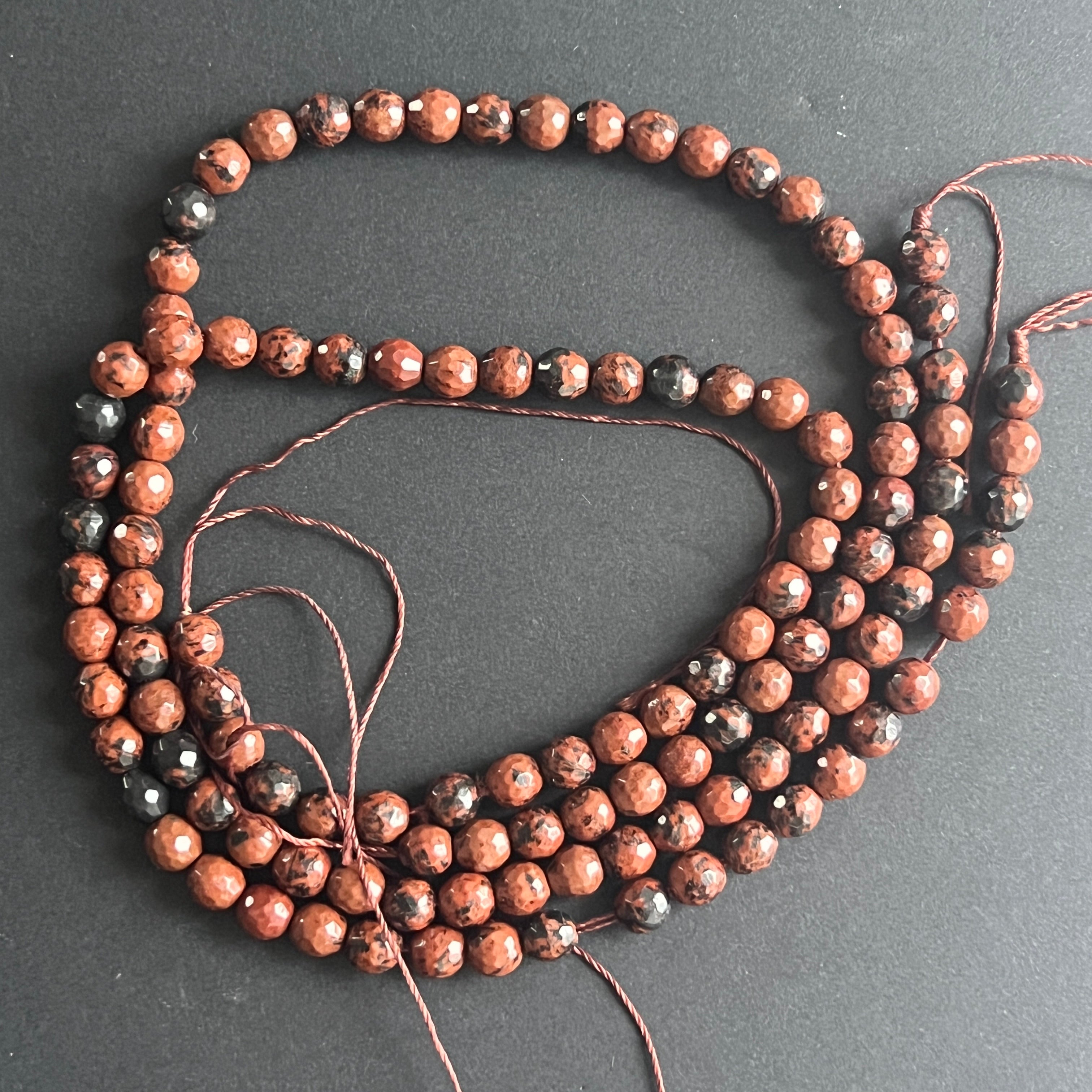 Collier en obsidienne mahogany, composé de perles sphériques naturelles, parfait pour colliers, bracelets ou autres bijoux faits main.
