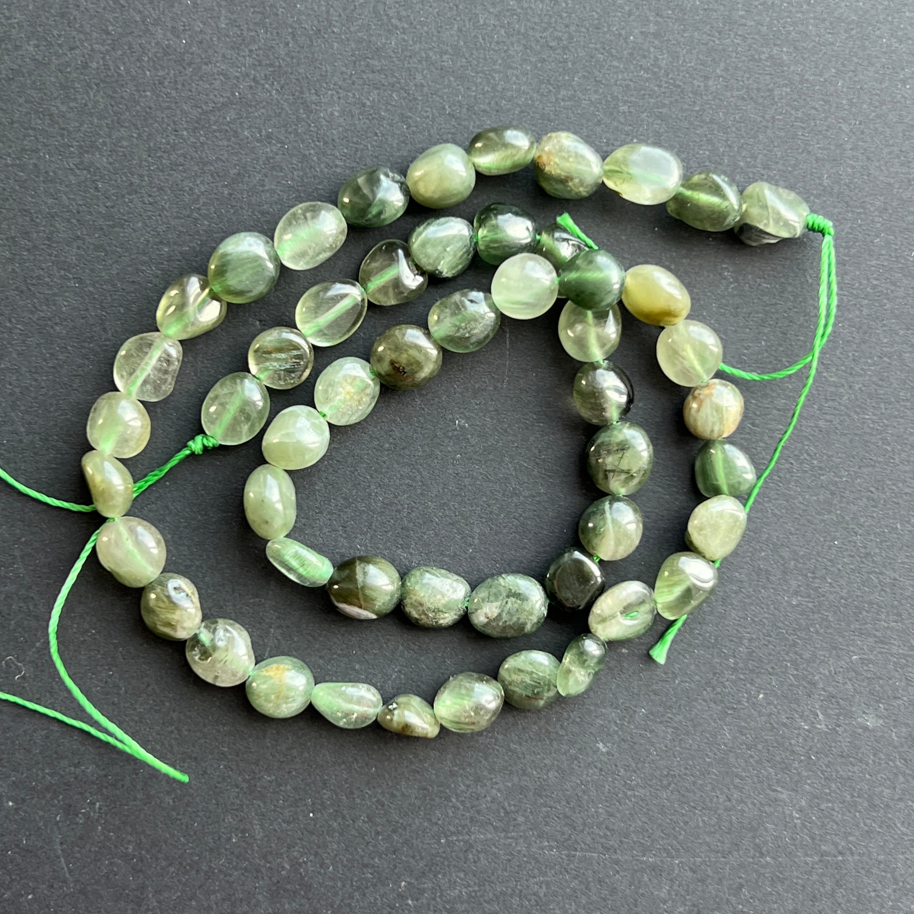 Fil de QUARTZ RUTILE VERT, composé de pierres brutes naturelles, parfait pour colliers, bracelets ou autres bijoux faits main.