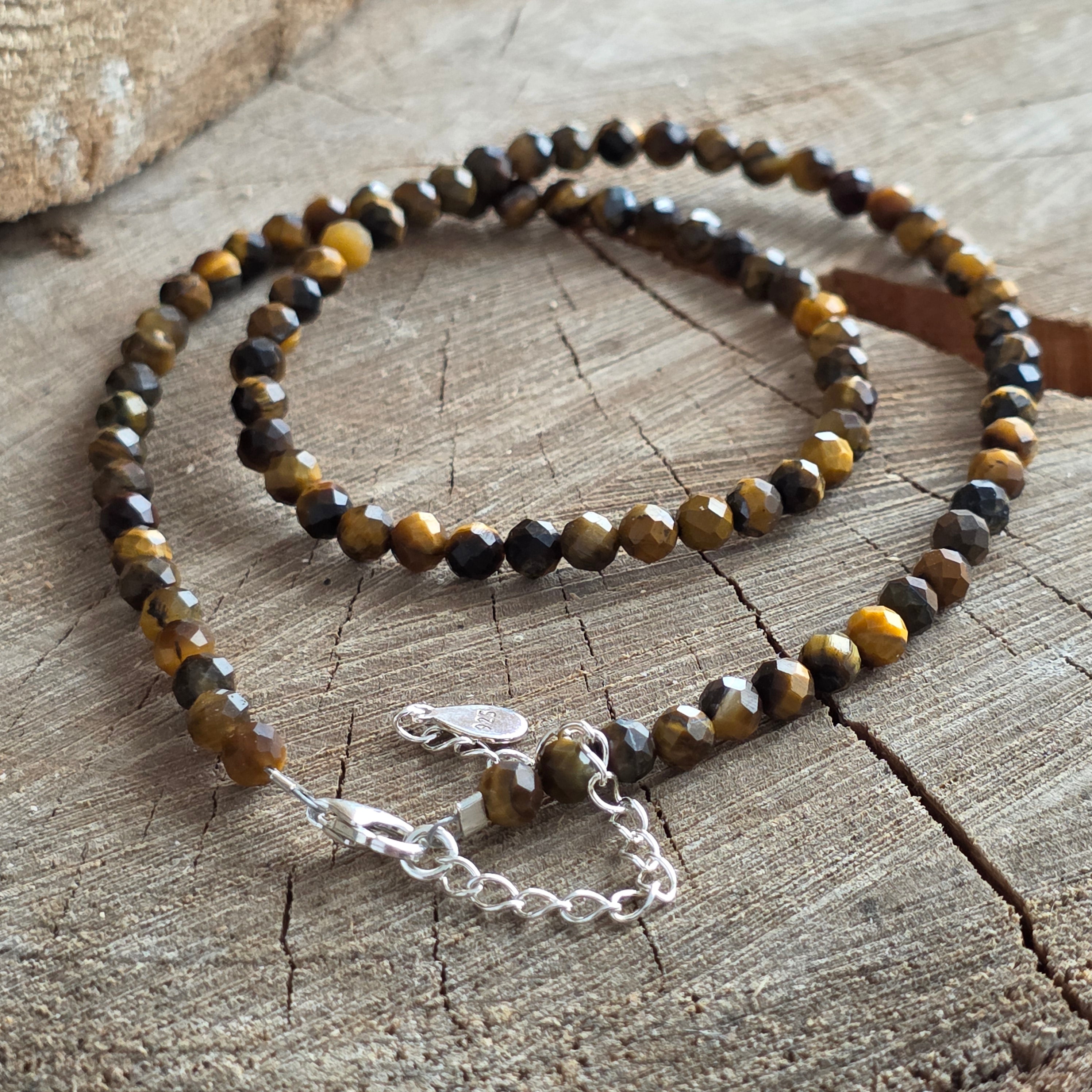 Matériels: Natural Face Tiger Eyes (4 mm), 925 Silver