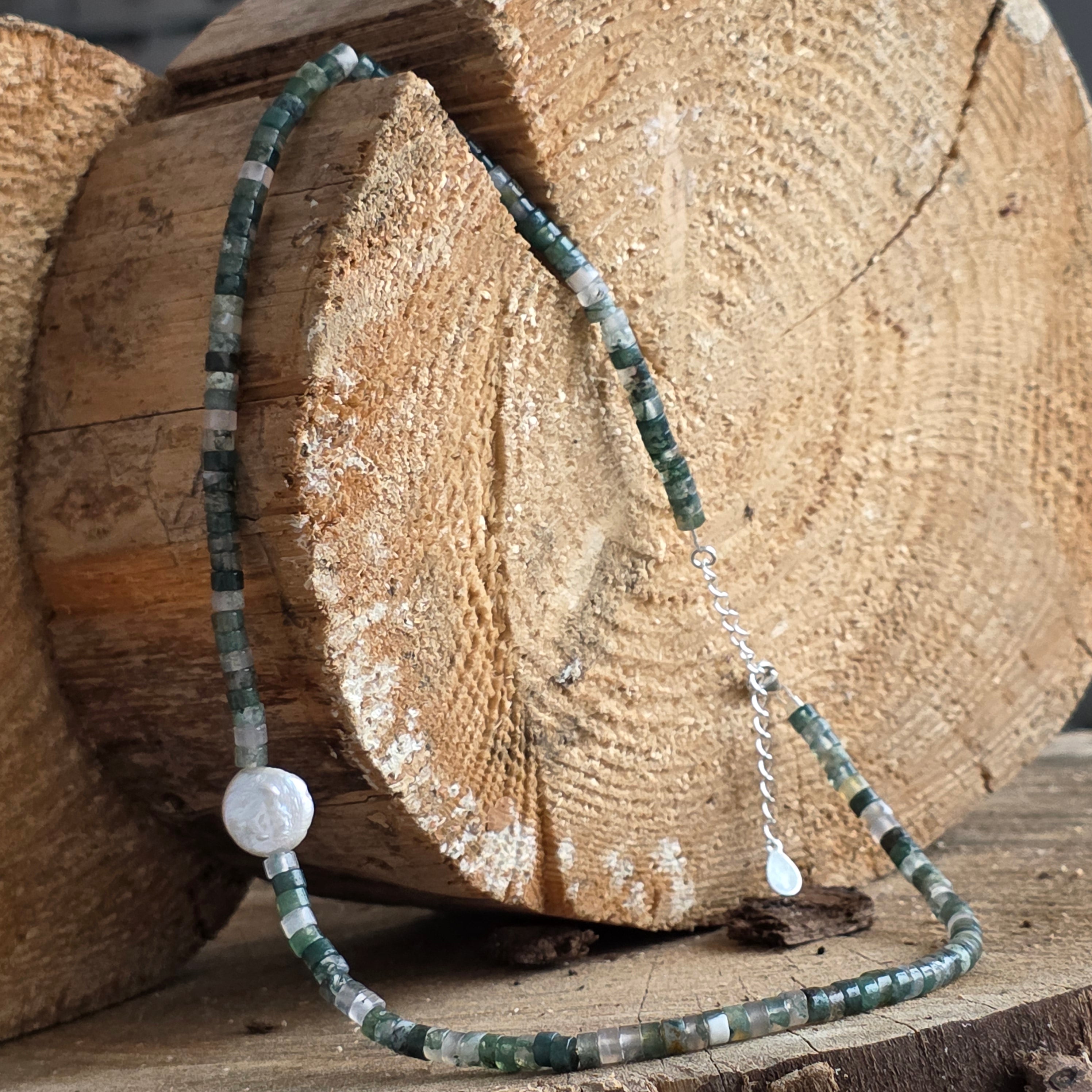 Collier en agate mousse Wood #152
