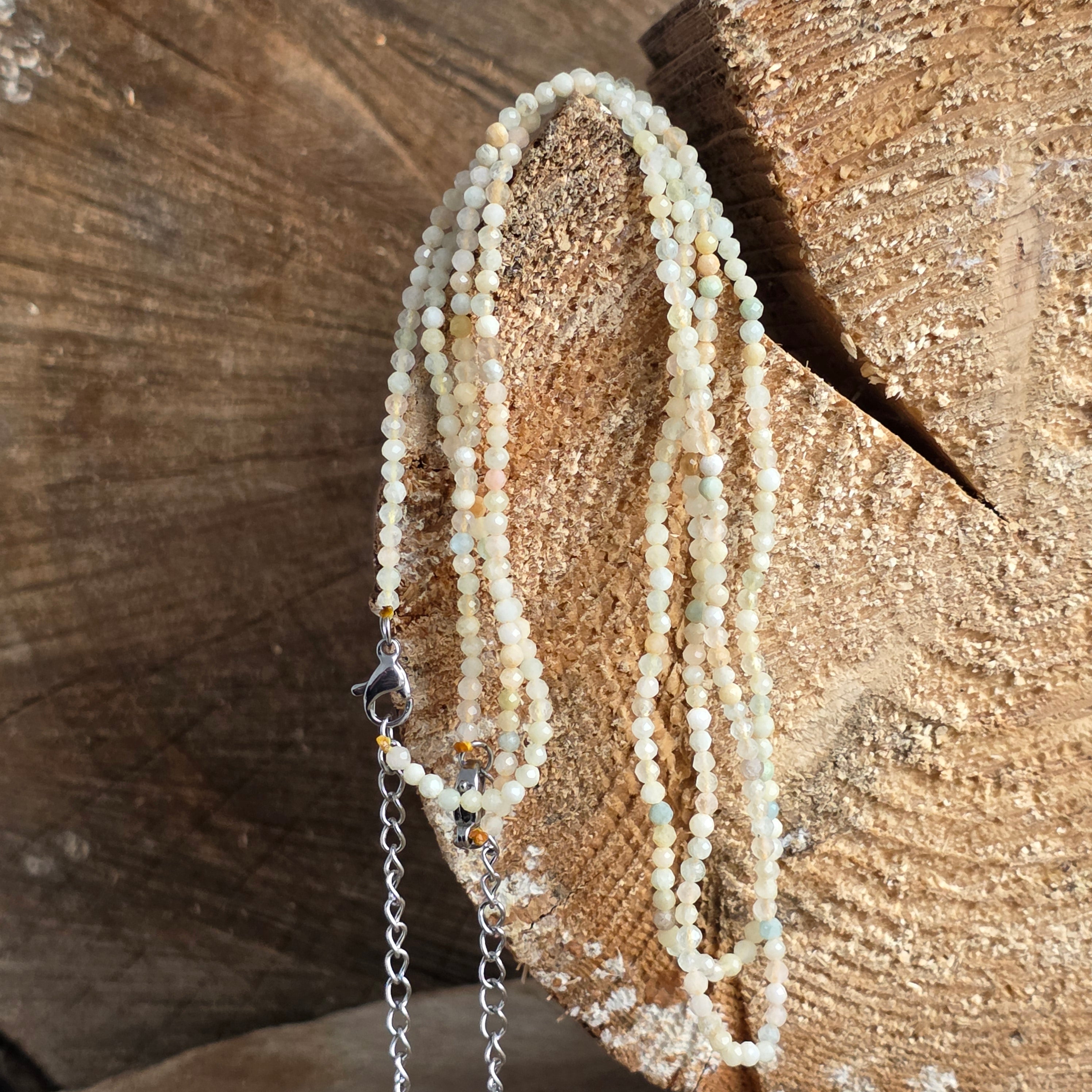 Un collier délicat et solaire, réalisé en béryl naturel connu sous le nom d’héliodore, apprécié pour son éclat chaud et la douce lumière qu’il reflète. Les nuances pastel de jaune, translucides et subtilement irisées, donnent au collier un aspect pur, lumineux, presque éthéré. Chaque perle facettée crée un jeu discret de reflets, transformant la pièce en un accessoire élégant, parfait pour ceux qui aiment les bijoux fins et naturels.