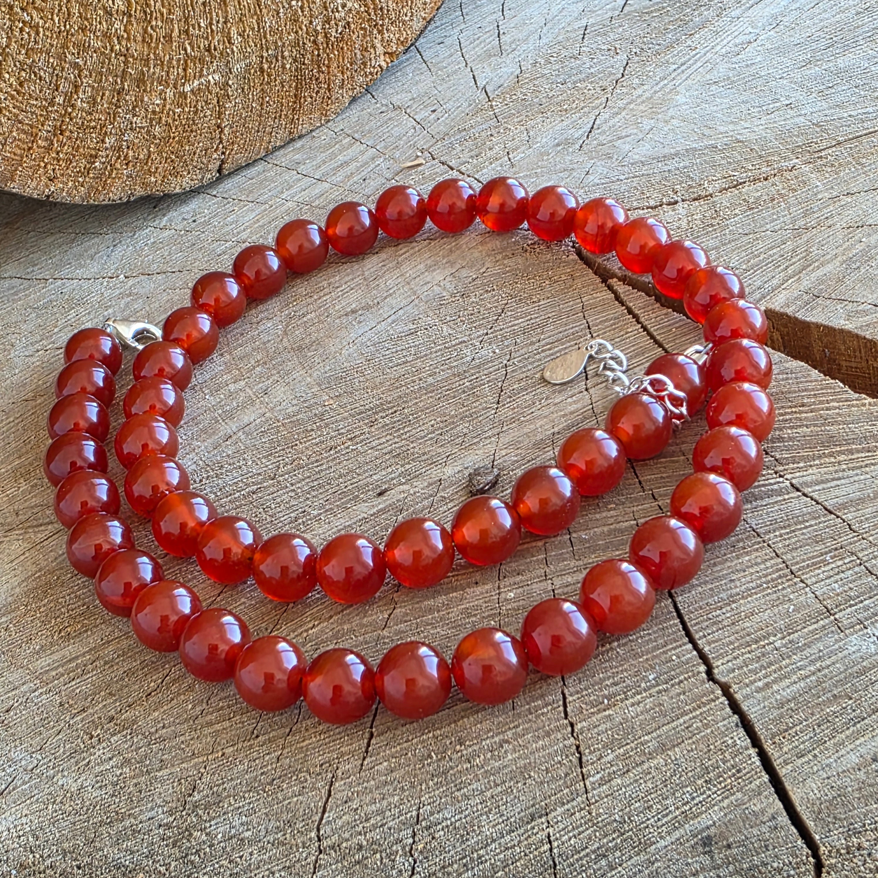 Matériaux : cornaline naturelle, perles de 6 mm, argent 925