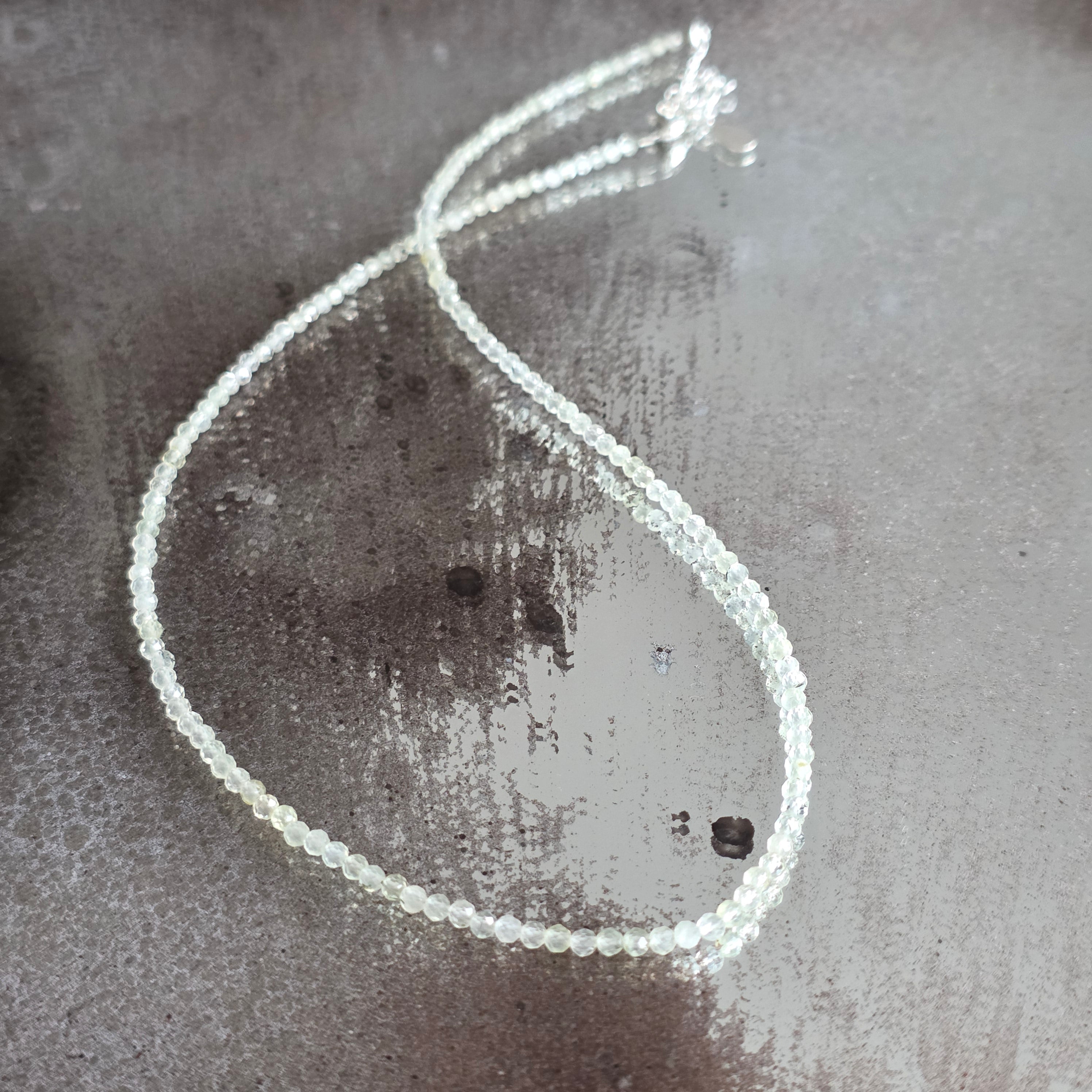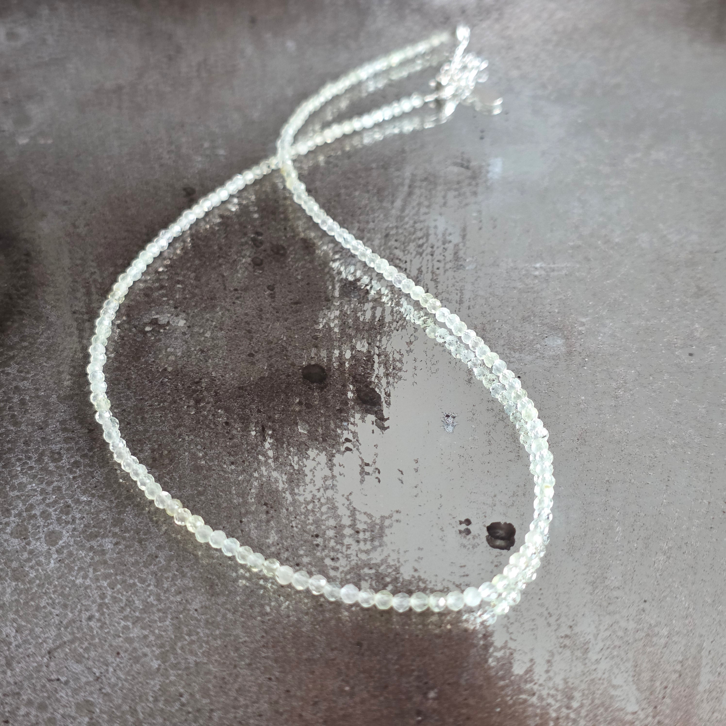 Un collier comme une fenêtre ouverte sur la lumière – vif, clair, espiègle et profond à la fois. Les perles facettées de fluorite verte de 3 mm brillent dans des nuances de vert, comme un pont entre émotion et raison, entre rêve et lucidité.