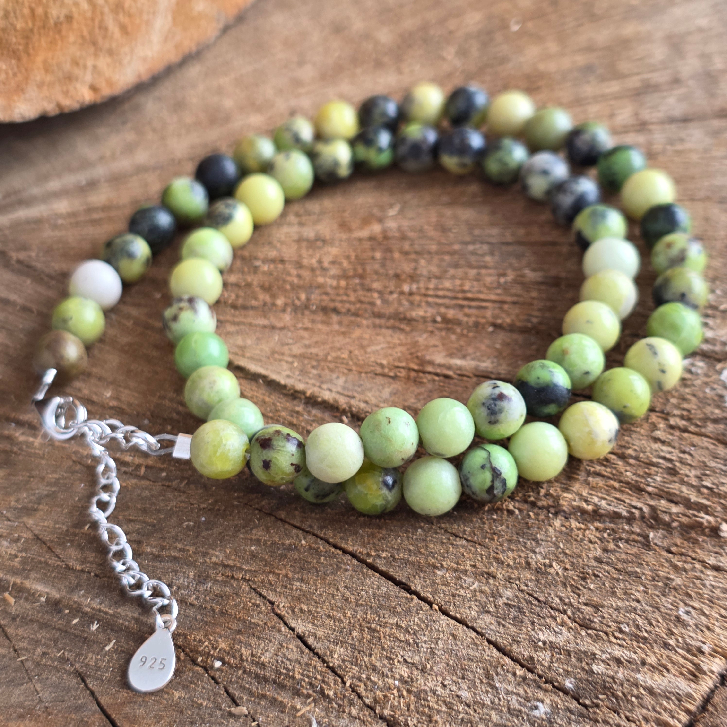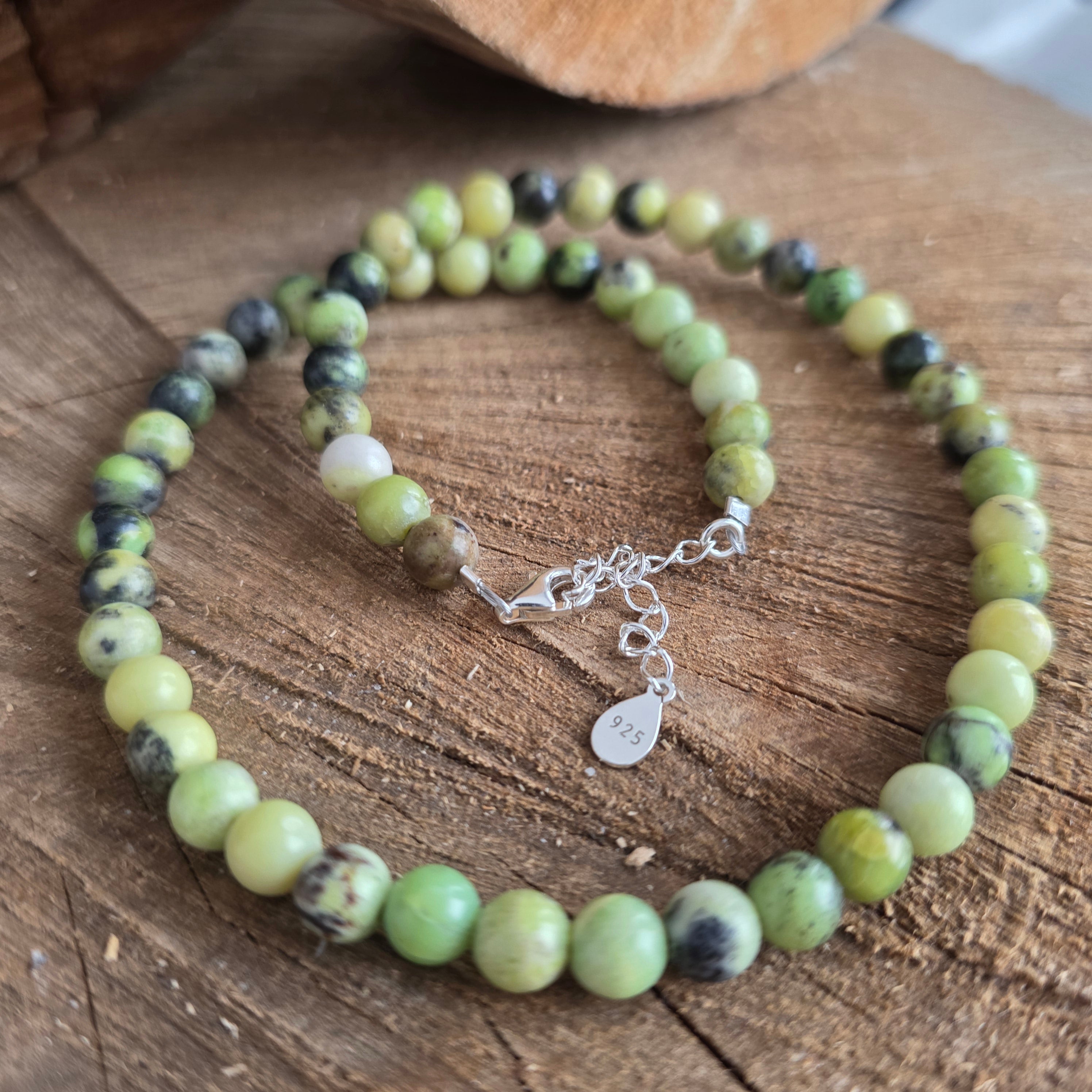 Un collier avec présence, force et noblesse silencieuse – créé à partir de perles rondes en jade vert néphrite de 10 mm, chacune portant en son cœur le souffle tranquille de la nature et de la tradition.