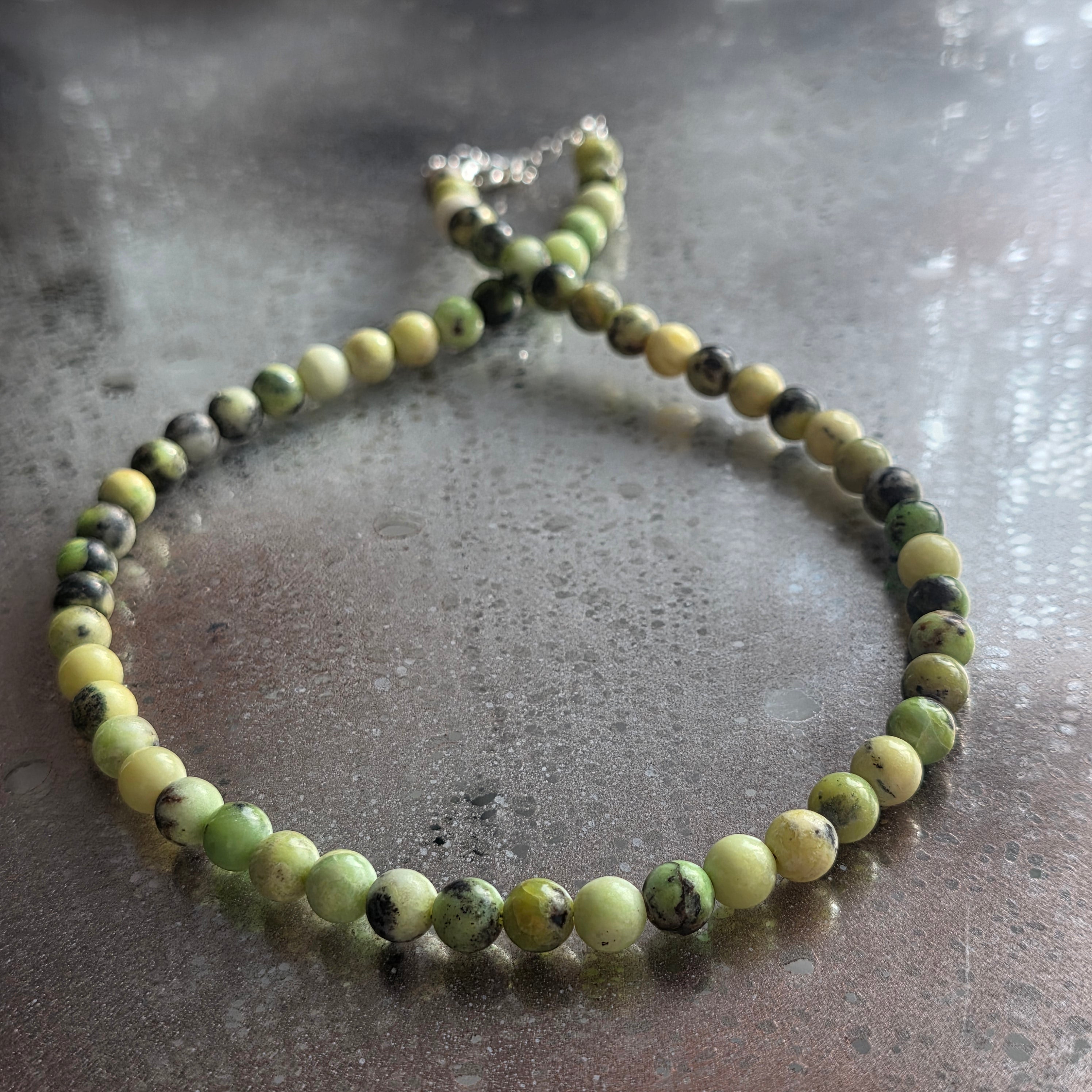 Un collier qui exprime l'équilibre, la stabilité et l'élégance intemporelle. Les sphères de jade vert néphrite australien de 6 mm ont une teinte profonde et naturelle, avec des reflets fins qui mettent en valeur la texture dense et veloutée de la pierre. Son vert équilibré inspire une force tranquille et un raffinement discret.