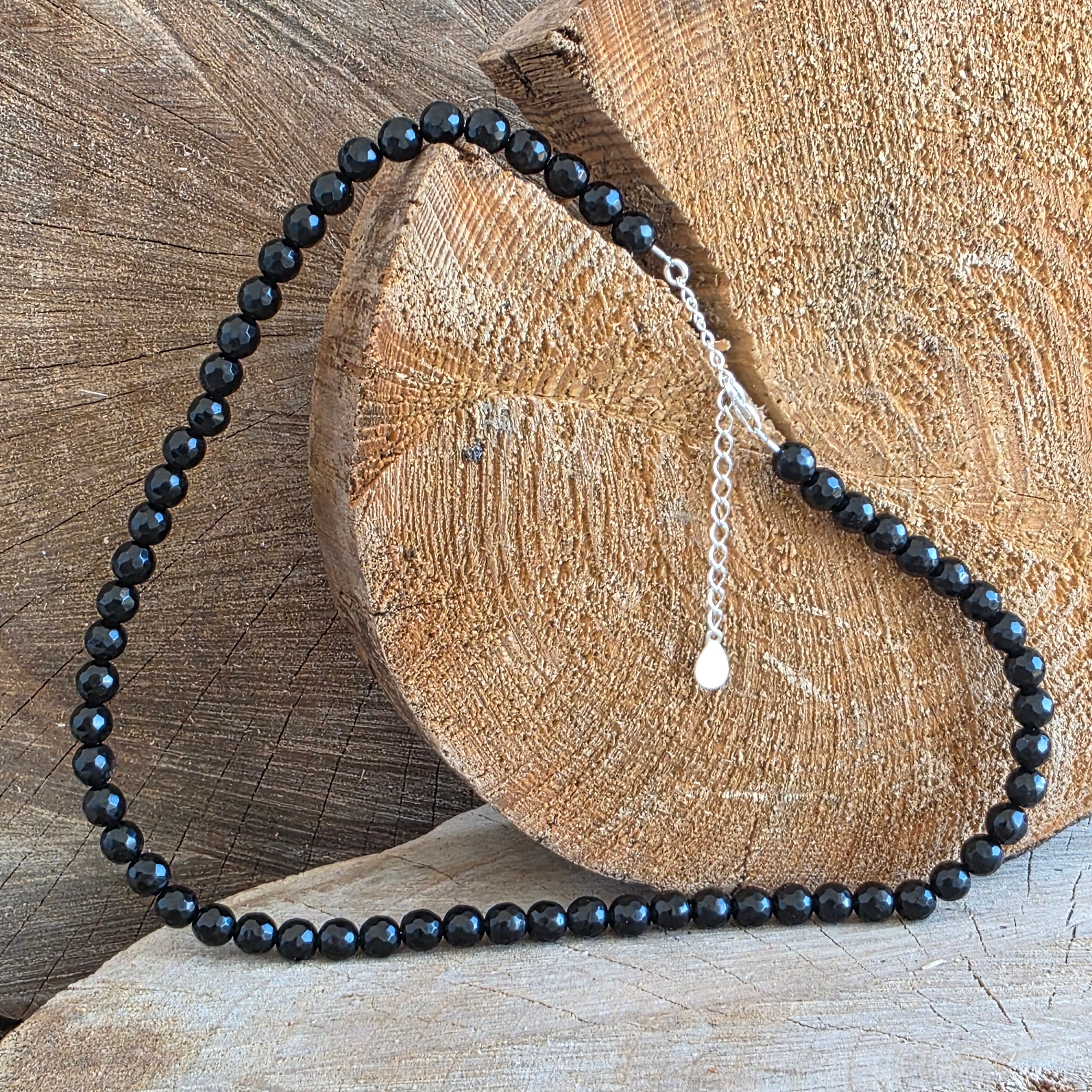 Description - Collier en obsidienne noire Silence #227