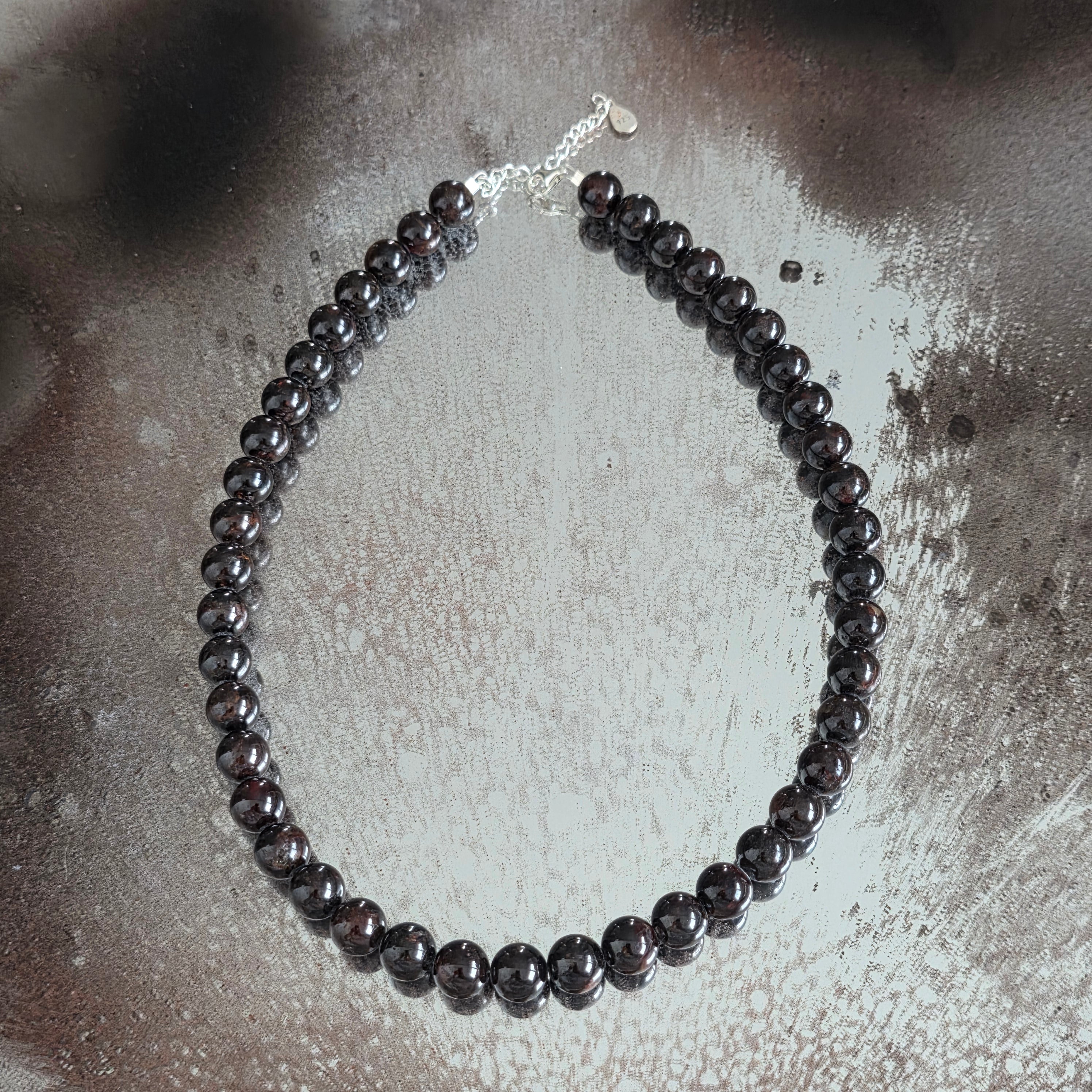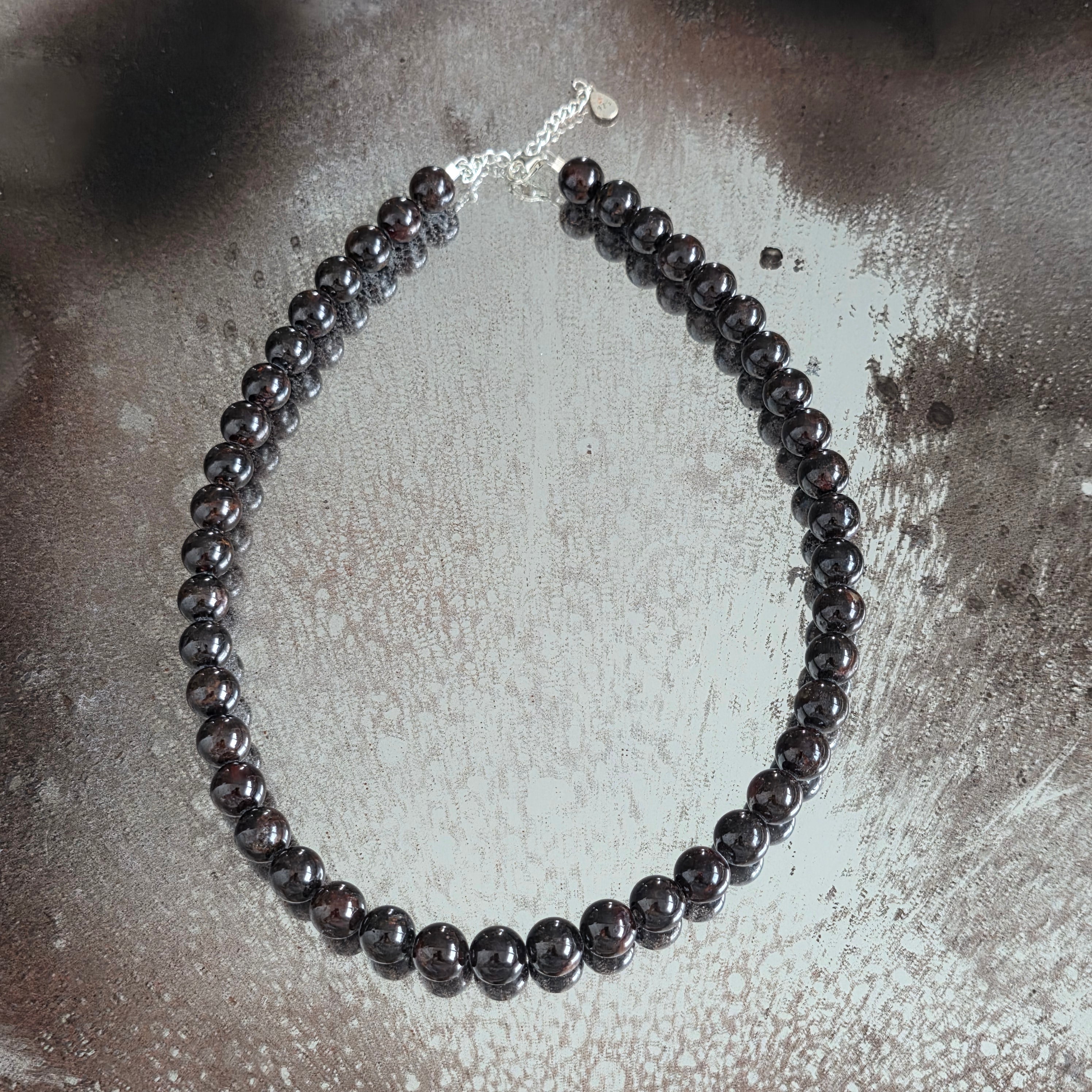 Un collier qui pulse de vie et d'élégance, semblable au cœur de la terre. Le grenat naturel de 9 mm, avec son éclat profond et ses couleurs rouge foncé, reflète l’intensité des émotions et la puissance de l’amour mature. C’est une pierre de passion calme, de courage intérieur et de stabilité de l’âme qui a appris à briller sans brûler.