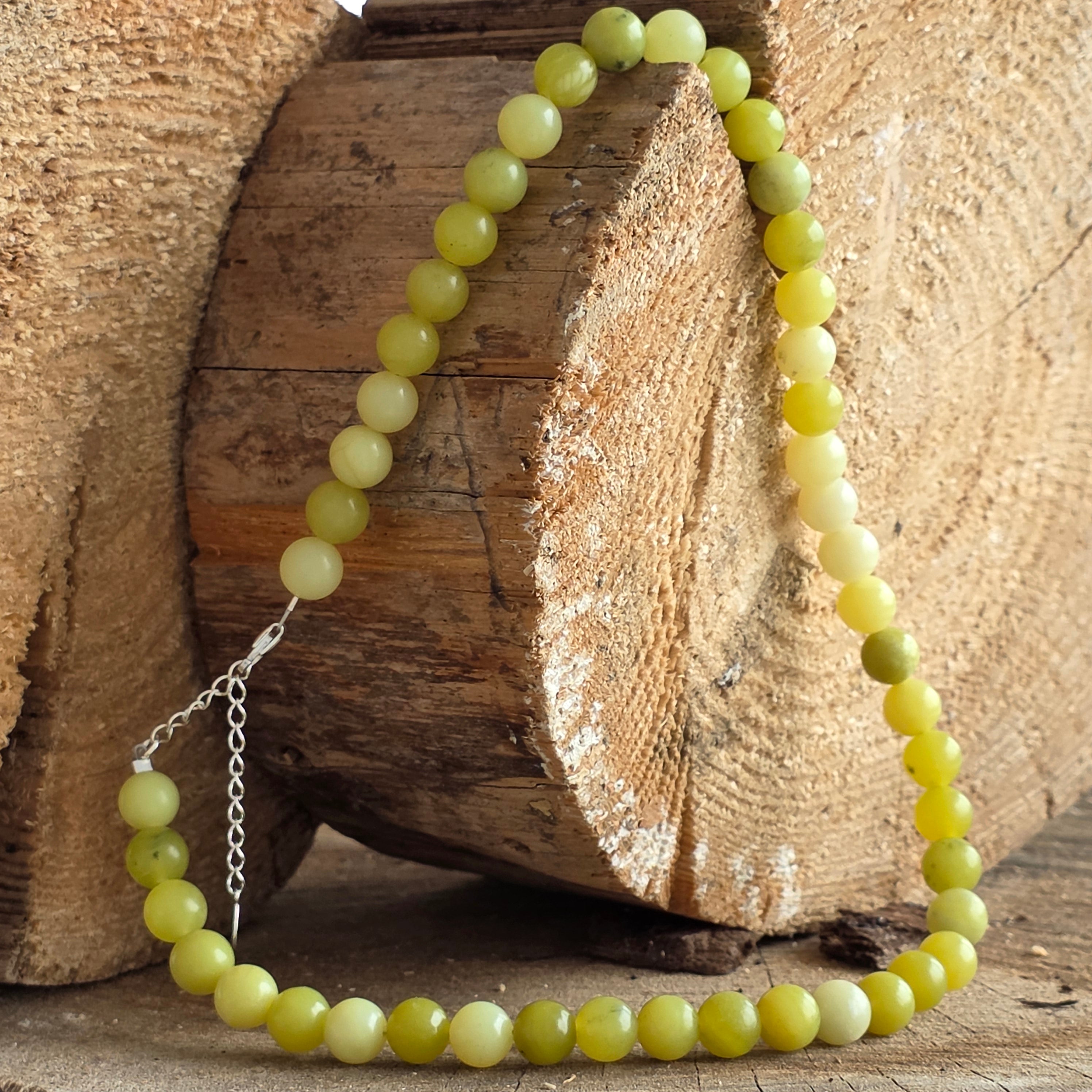 Matériaux : jade jaune naturel 8 mm, argent 925